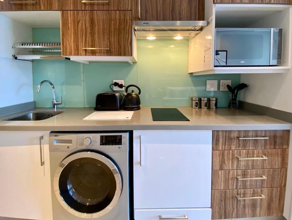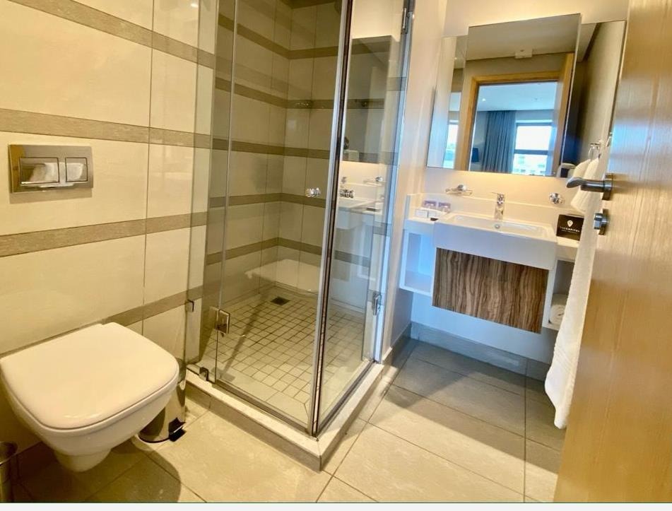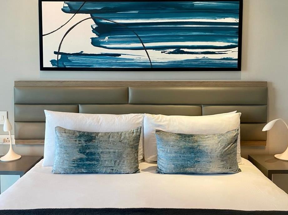 The intimate yet opulent living space seamlessly transitions into a private sanctuary, comprising one elegantly appointed bedroom and a single, pristine bathroom. This thoughtful layout ensures privacy and comfort, reflecting a commitment to refined living within a compact footprint, maximising both functionality and aesthetic appeal.