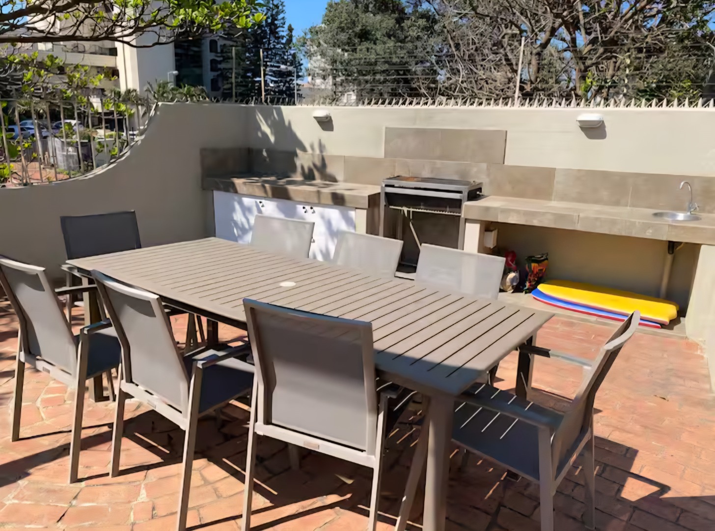 Enjoy the coastal lifestyle with a private balcony offering sea views, perfect for relaxation. The complex provides access to a clean, well-maintained outdoor swimming pool, ideal for unwinding. Residents also benefit from a communal braai area, perfect for social gatherings. The property includes one dedicated garage, ensuring secure parking. As part of a secure complex with an access gate, this property offers peace of mind.