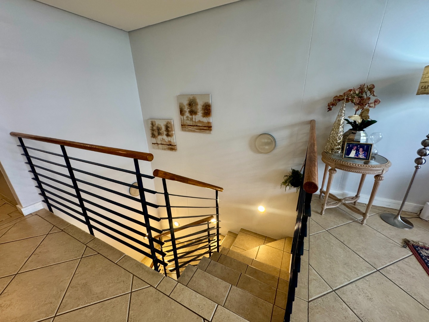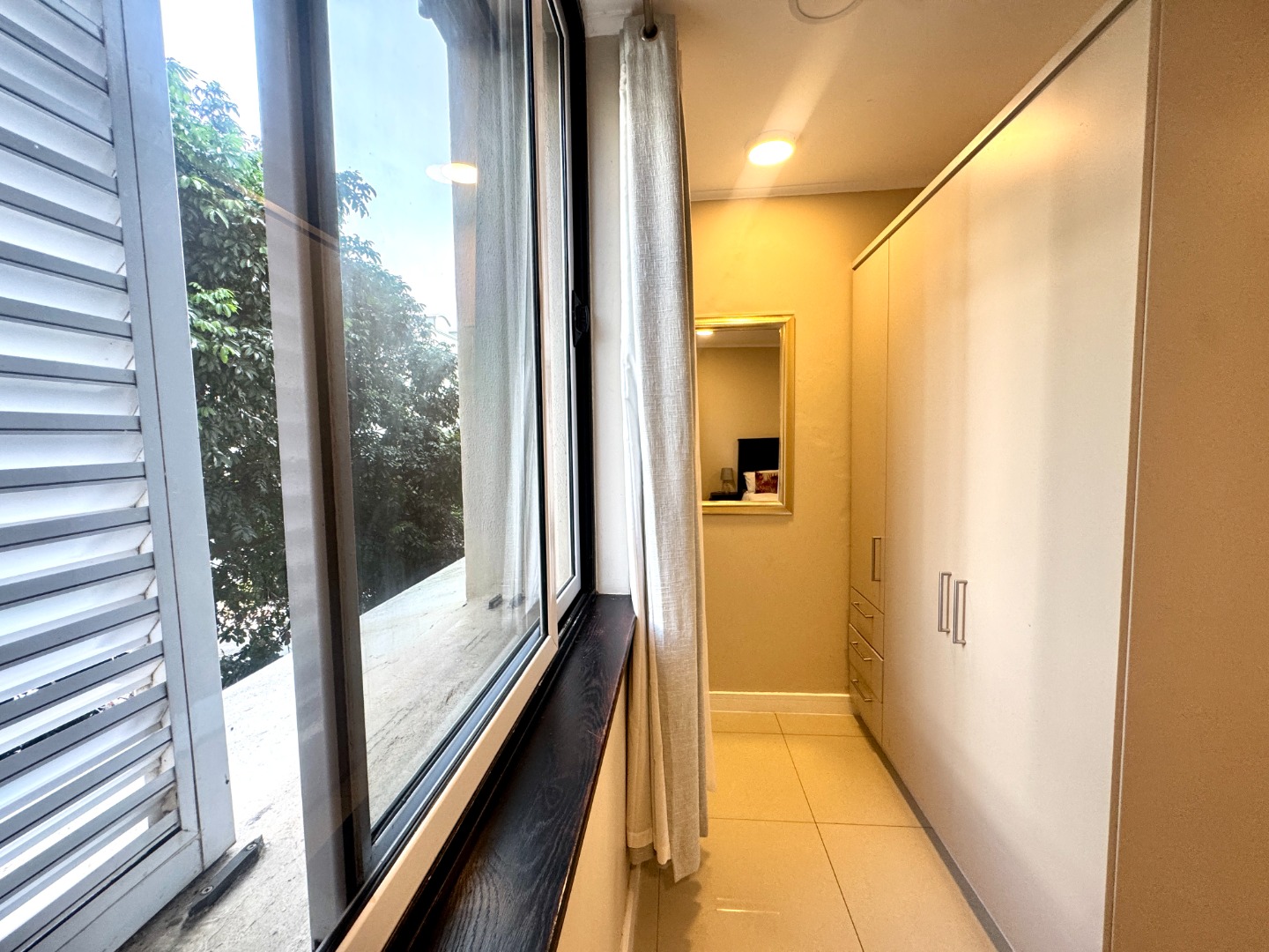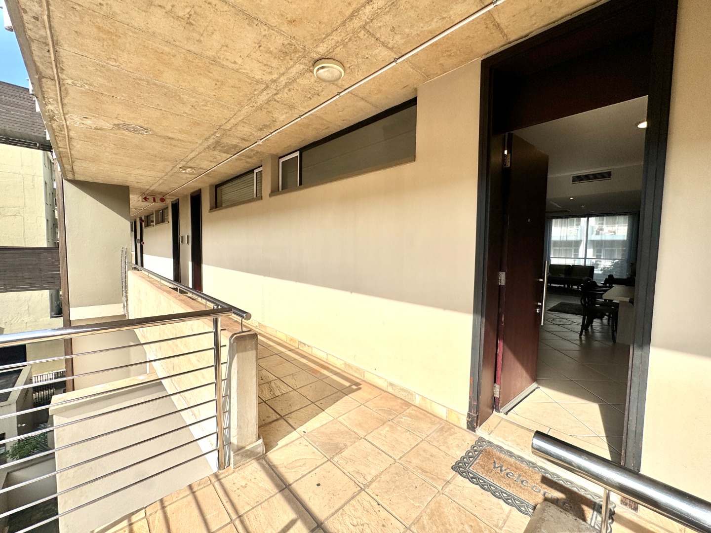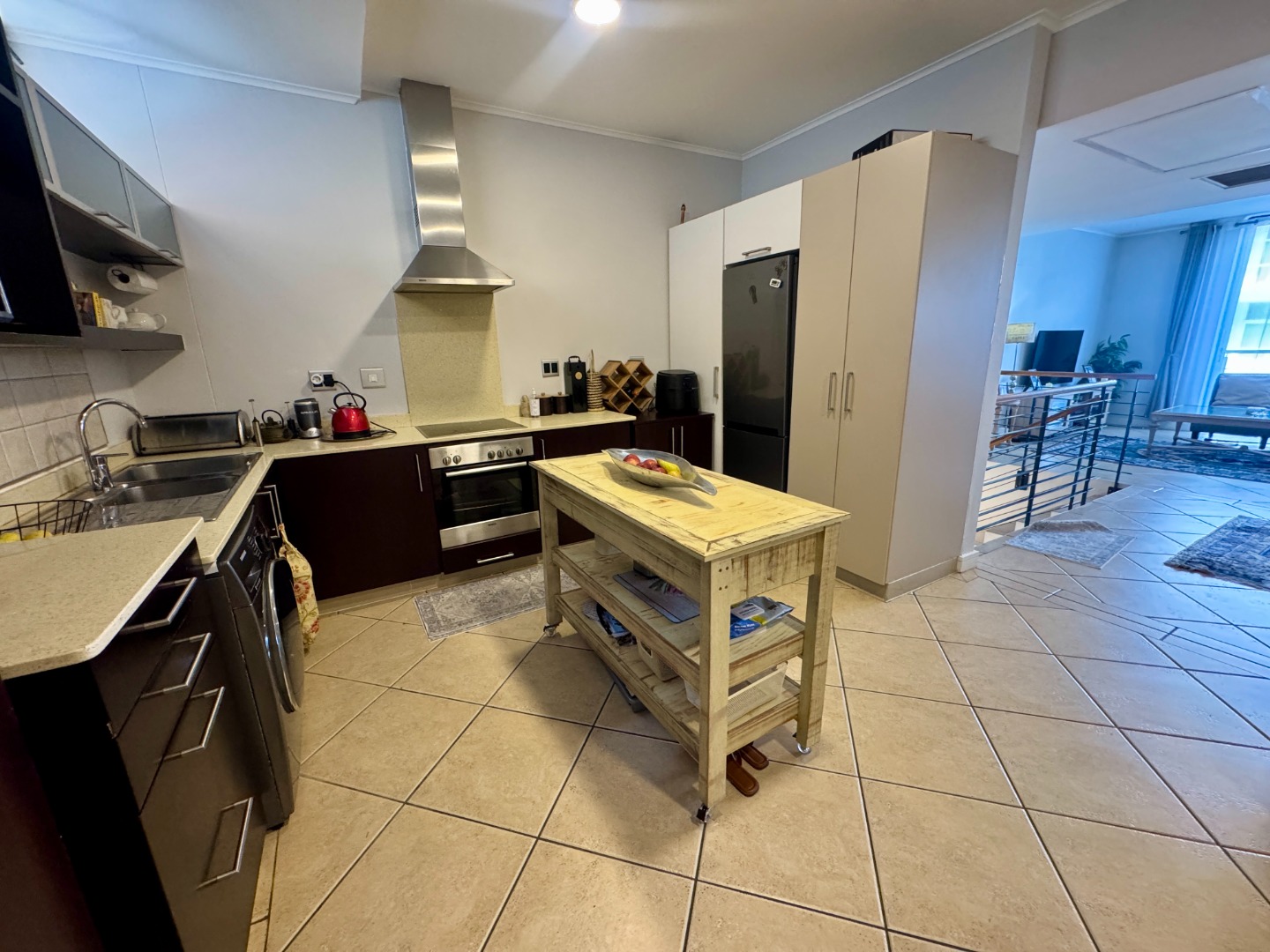 The spacious kitchen, dining and lounge areas spill onto a narrow balcony overlooking lush trees. The light-filled main en-suite bedroom has a dressing room area and flows onto a lovely balcony. The bathroom has a bath and shower. The second bedroom has a bathroom with shower and there is a study area next to the staircase.
