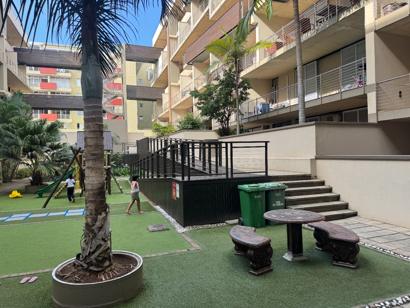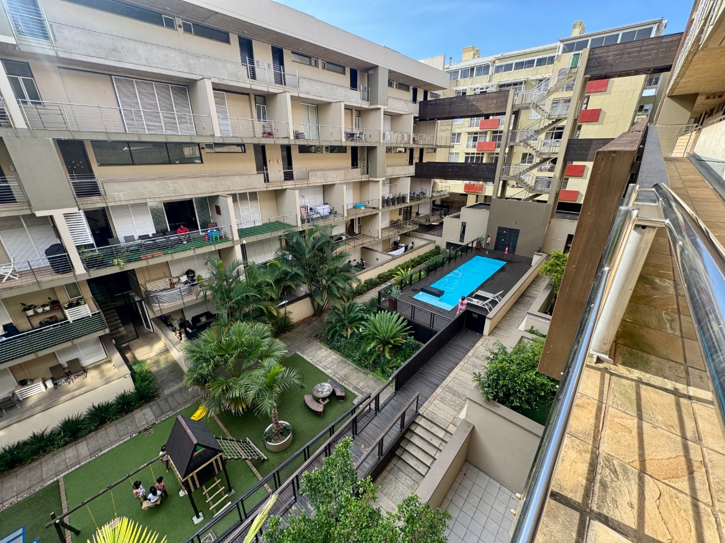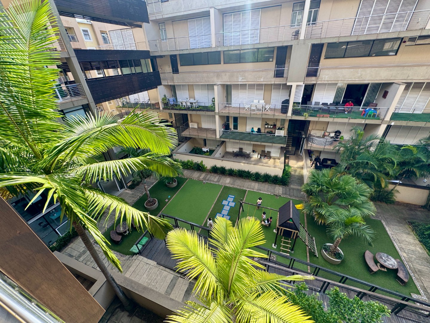 Which is a low-rise apartment block with a central entertainment area comprising a swimming pool and an amazing children’s play area on the ground floor.
