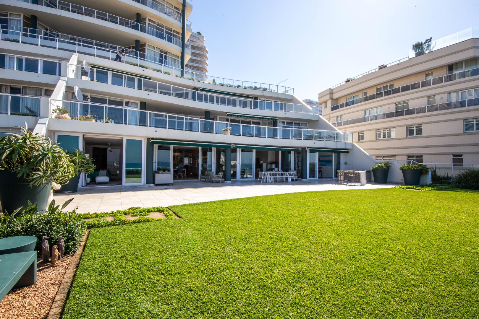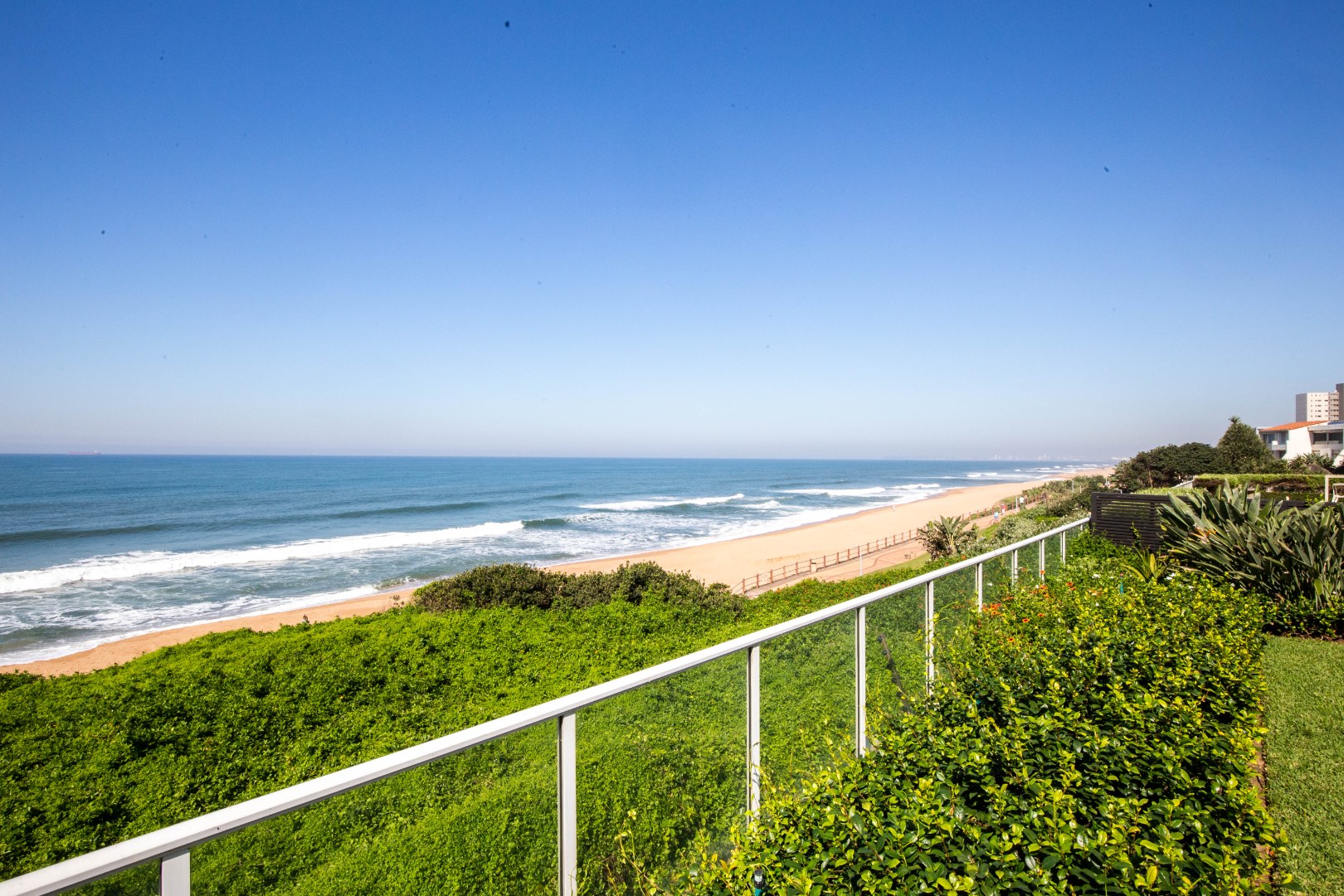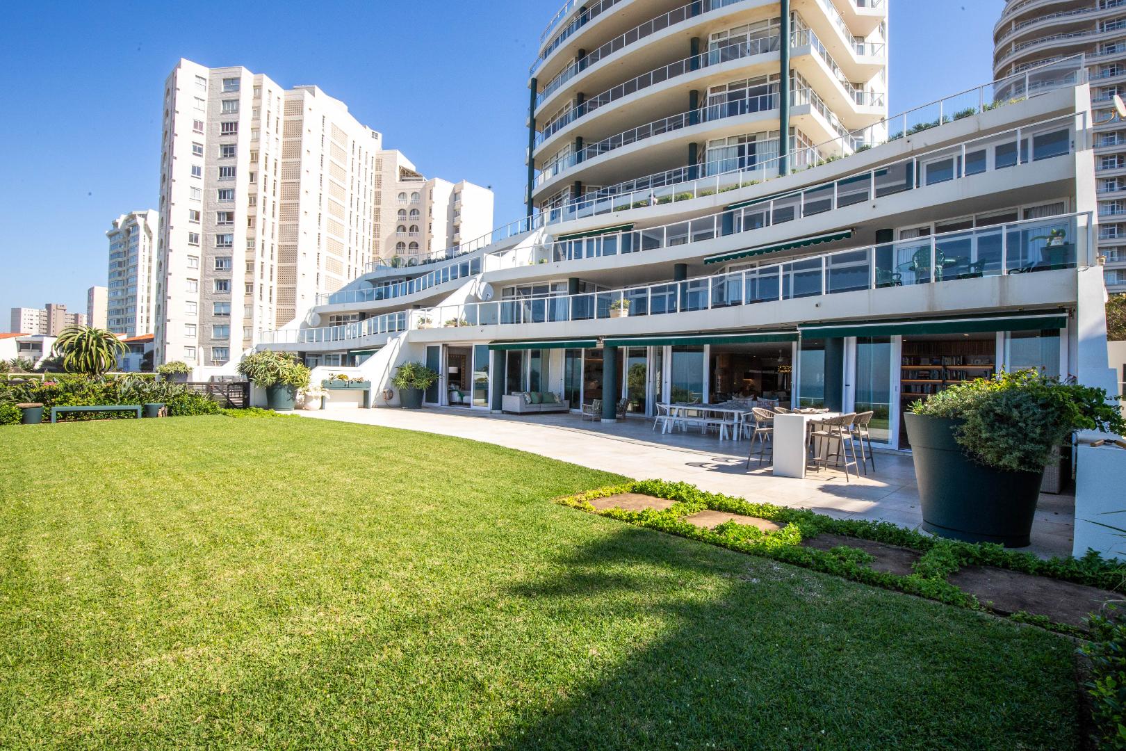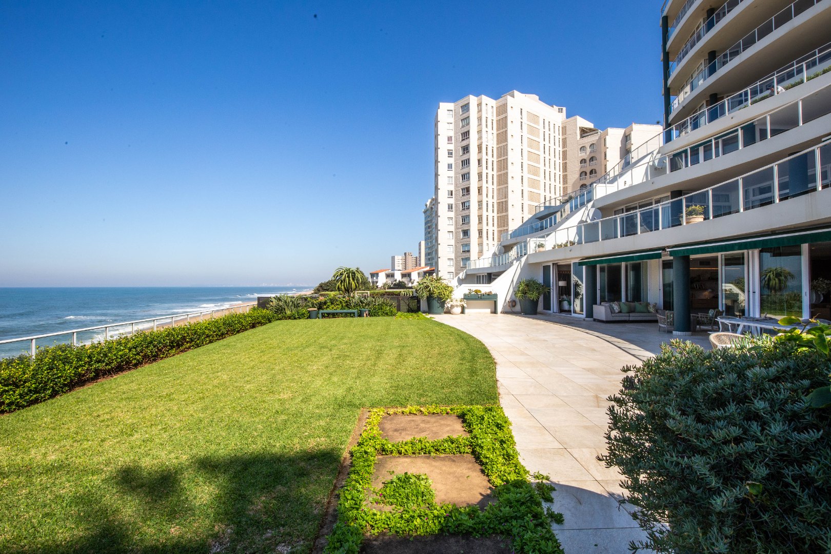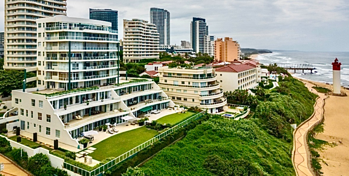 Frontline beach front renovated designer apartment totalling 974m2 – breaker and beach views from the expansive level garden – only a few steps onto Umhlanga’s famous promenade and to Umhlanga’s beaches and the village.