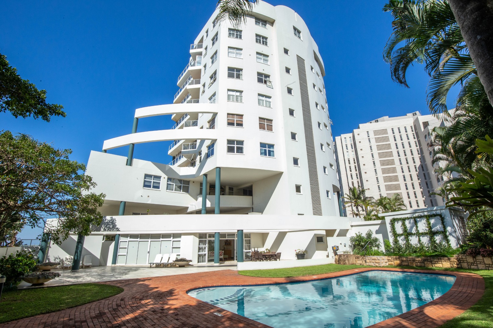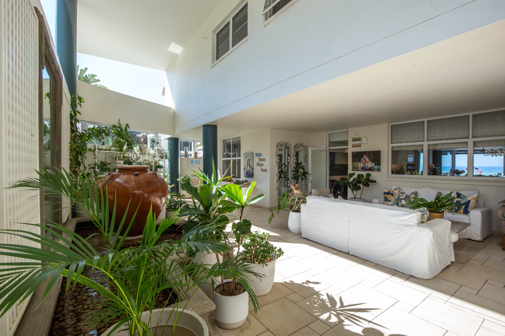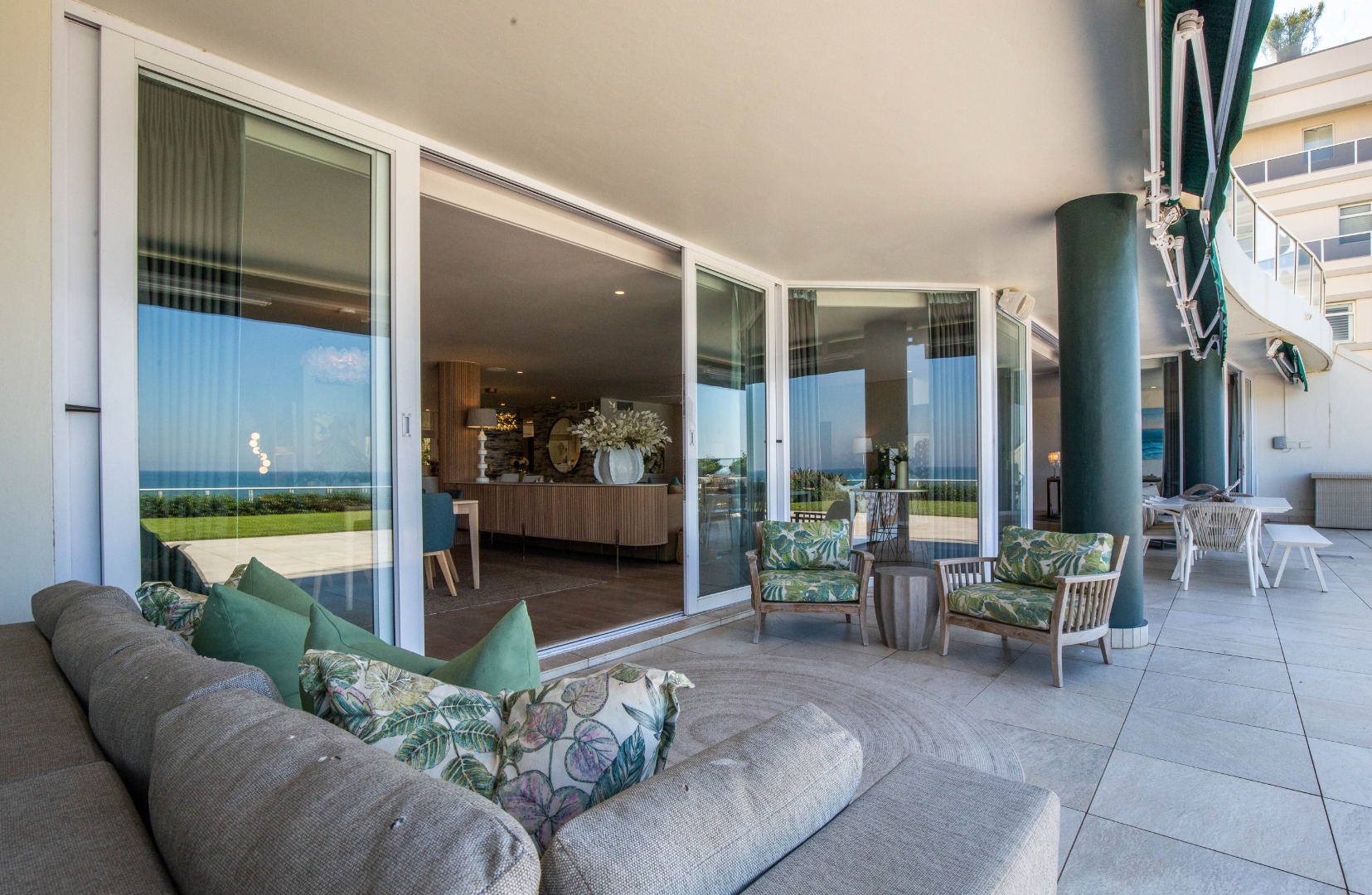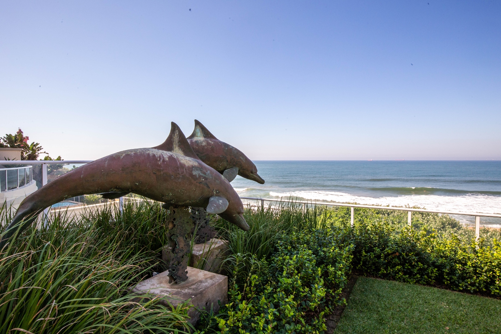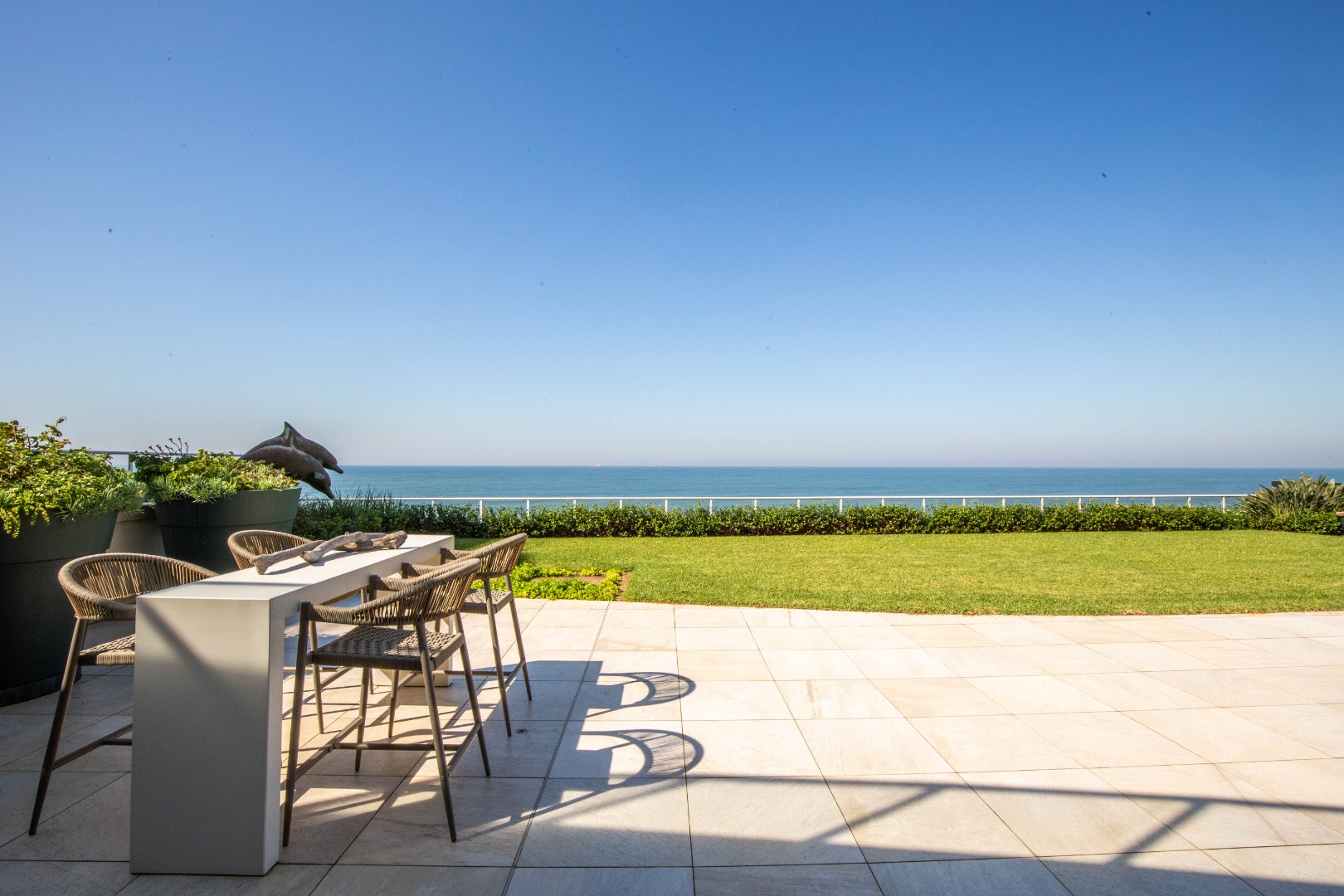 Frontline beach front renovated designer apartment totalling 974m2 – breaker and beach views from the expansive level garden – only a few steps onto Umhlanga’s famous promenade and to Umhlanga’s beaches and the village.