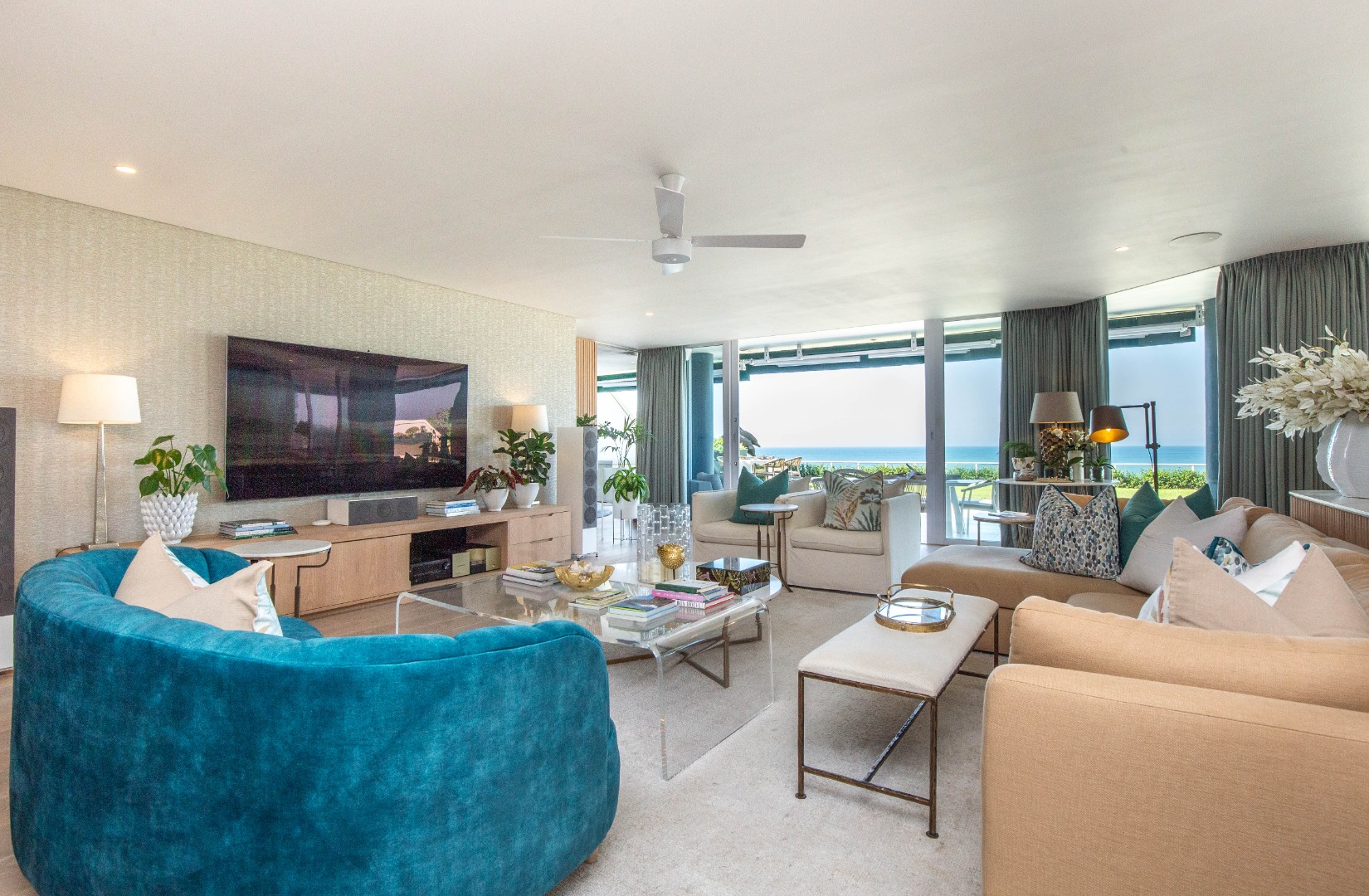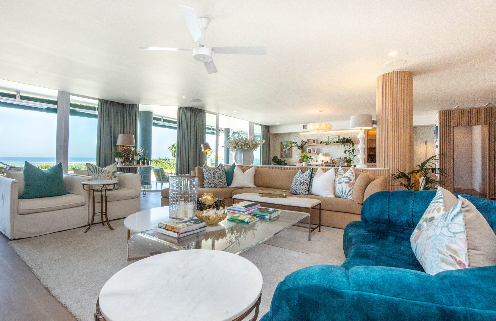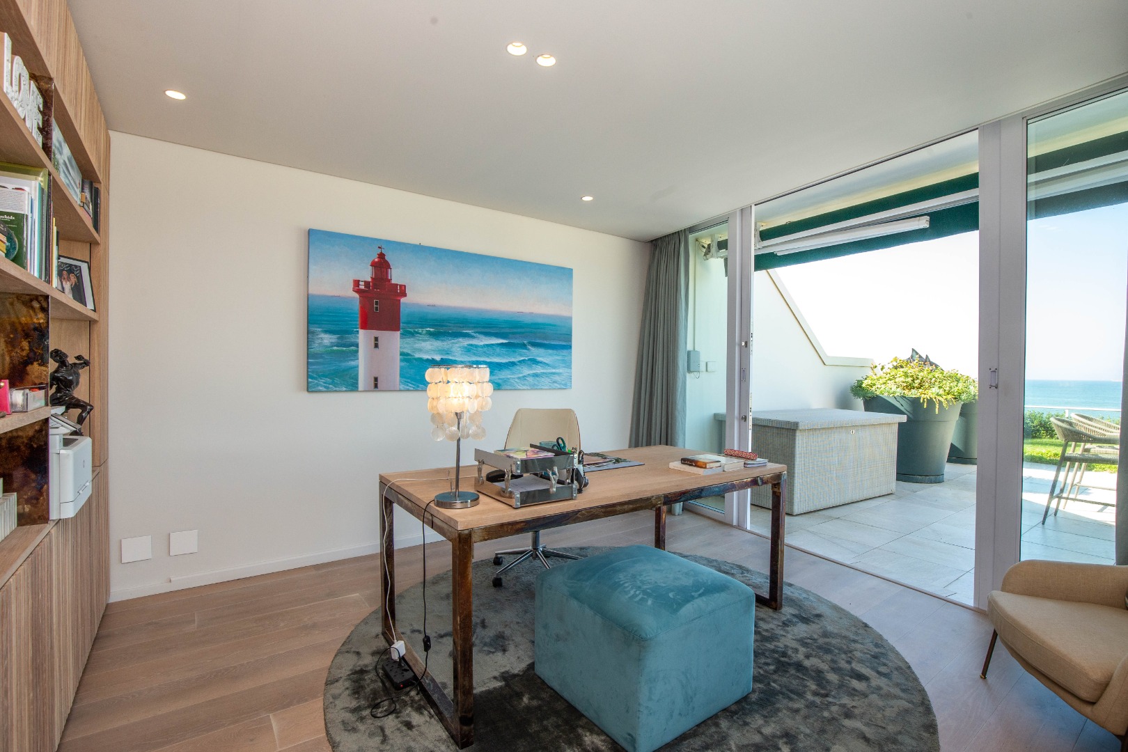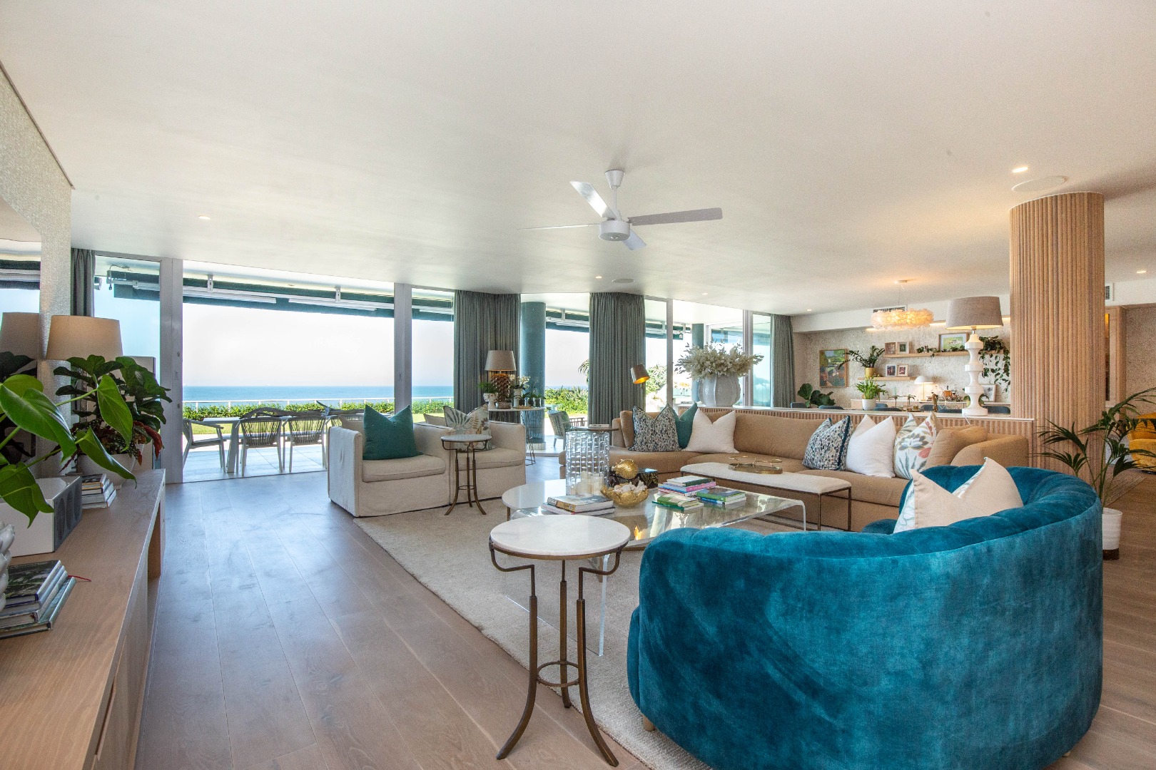 Frontline beach front renovated designer apartment totalling 974m2 – breaker and beach views from the expansive level garden – only a few steps onto Umhlanga’s famous promenade and to Umhlanga’s beaches and the village.