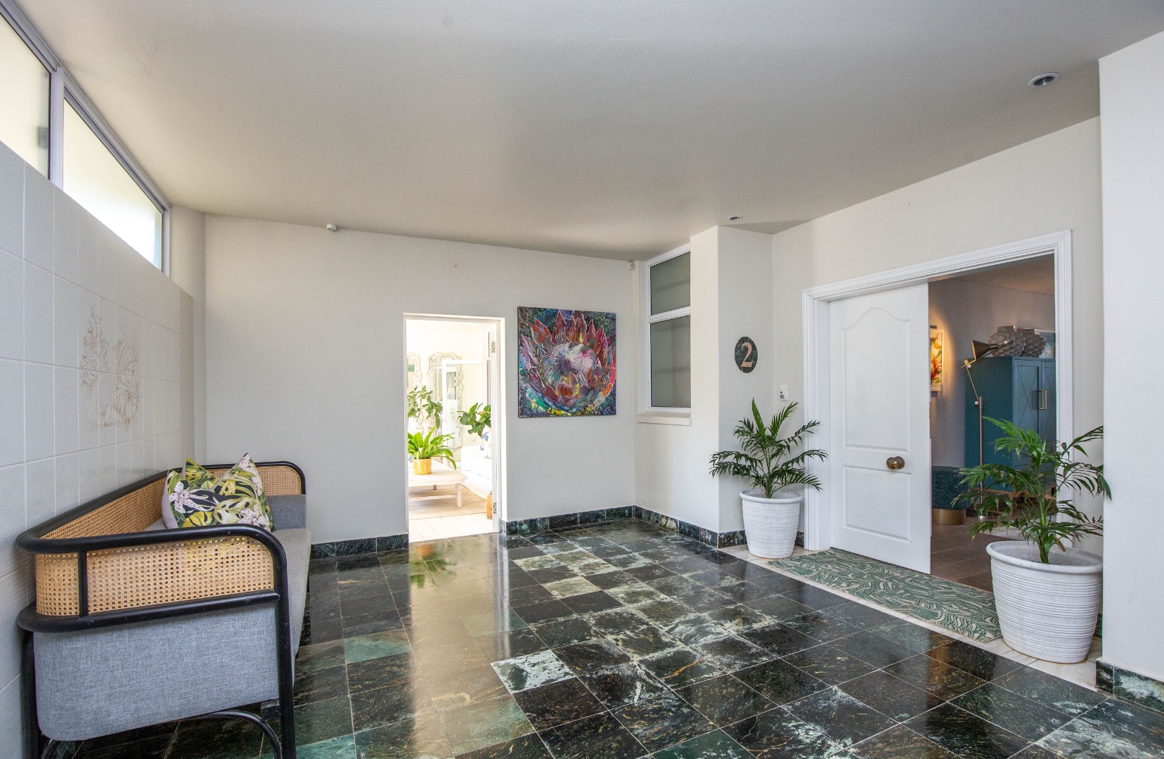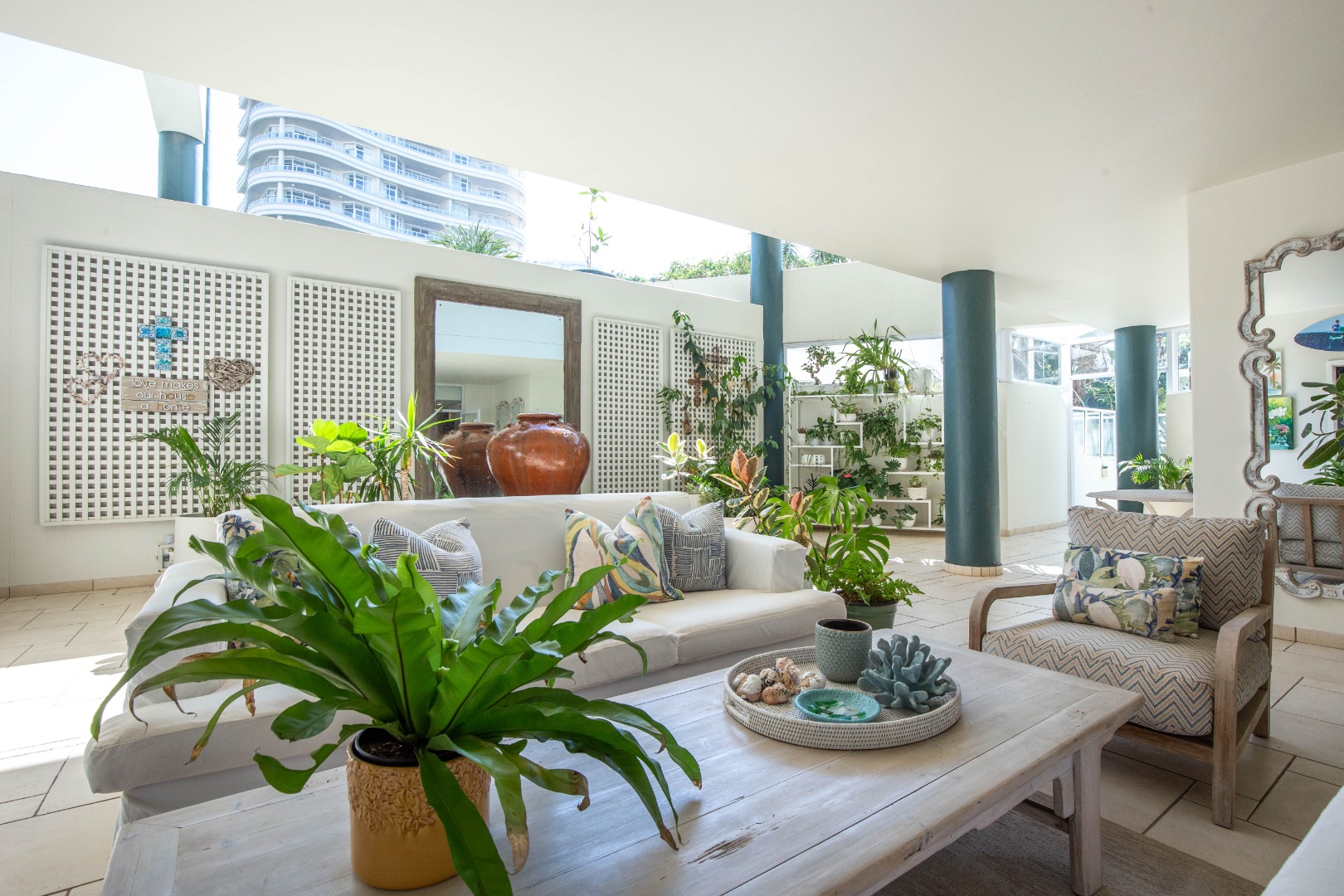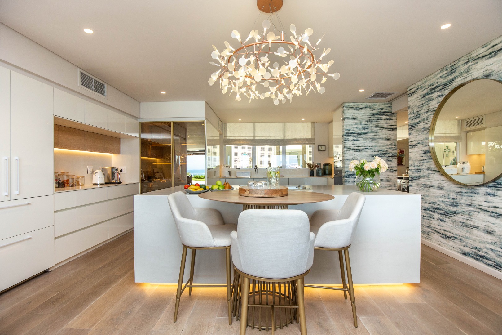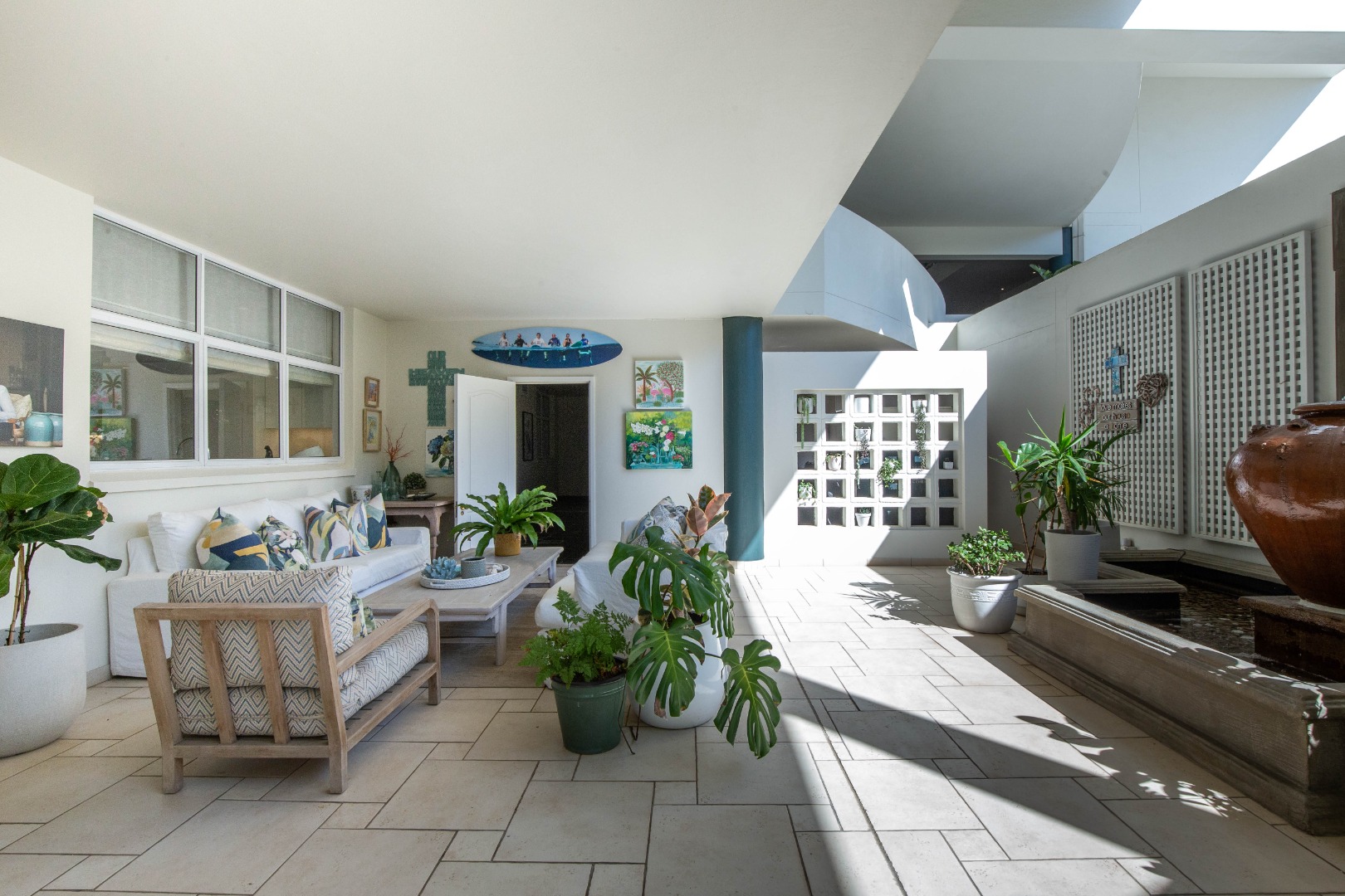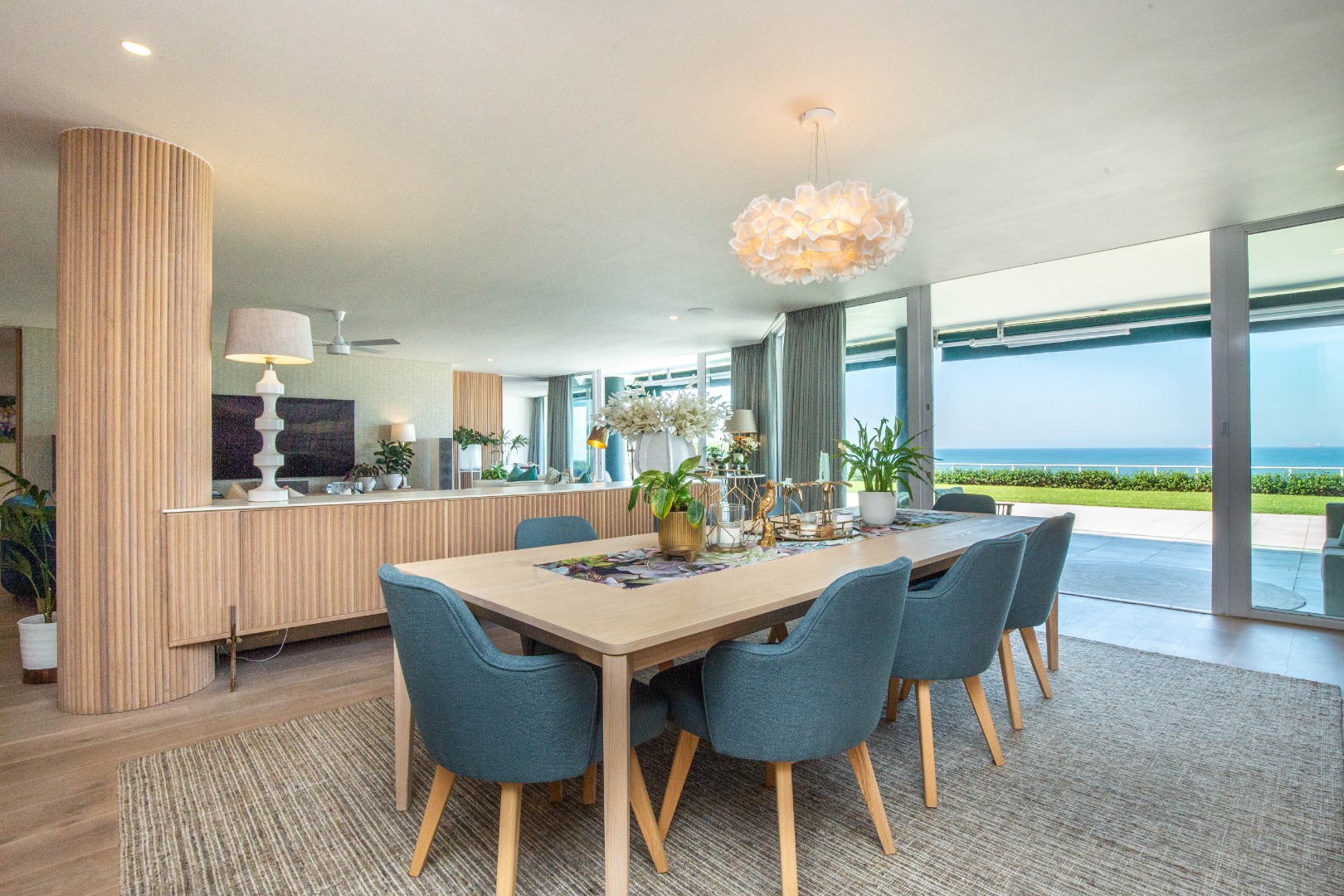 Frontline beach front renovated designer apartment totalling 974m2 – breaker and beach views from the expansive level garden – only a few steps onto Umhlanga’s famous promenade and to Umhlanga’s beaches and the village.