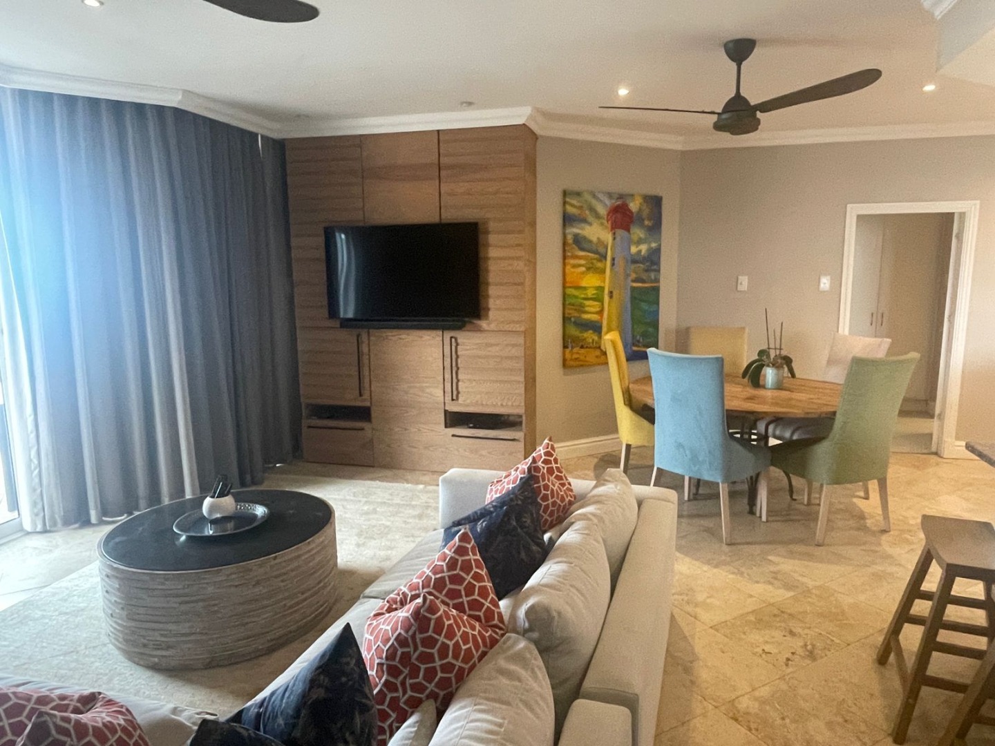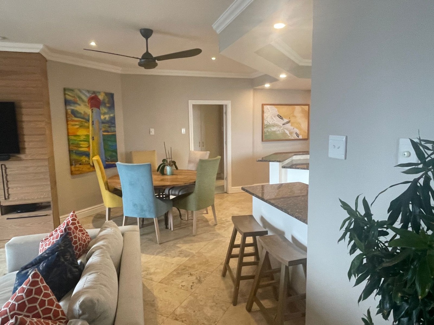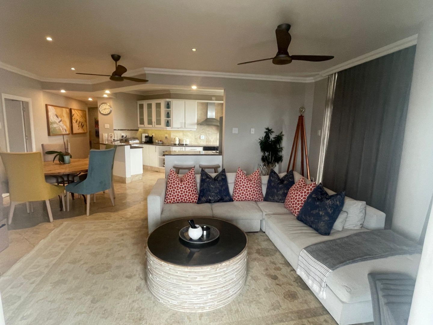 Discover an exceptional opportunity for sophisticated coastal living in this meticulously presented 3-bedroom, 2-bathroom apartment, ideally situated in Umhlanga Rocks, South Africa. Spanning 119 square metres, this fully furnished residence offers an open-plan design that seamlessly integrates the lounge, dining area, and a contemporary kitchen, complete with a breakfast bar. The interior boasts durable tiled flooring, modern ceiling fans, recessed lighting, and elegant crown molding, creating an inviting and refined atmosphere. Private elevator access ensures unparalleled convenience and exclusivity.