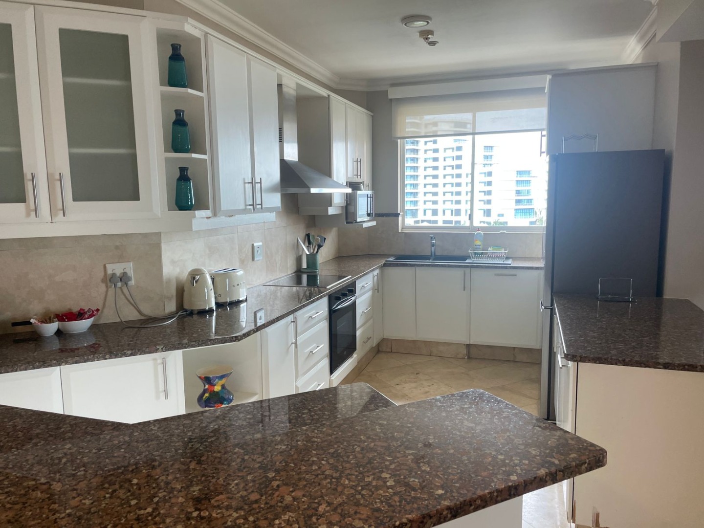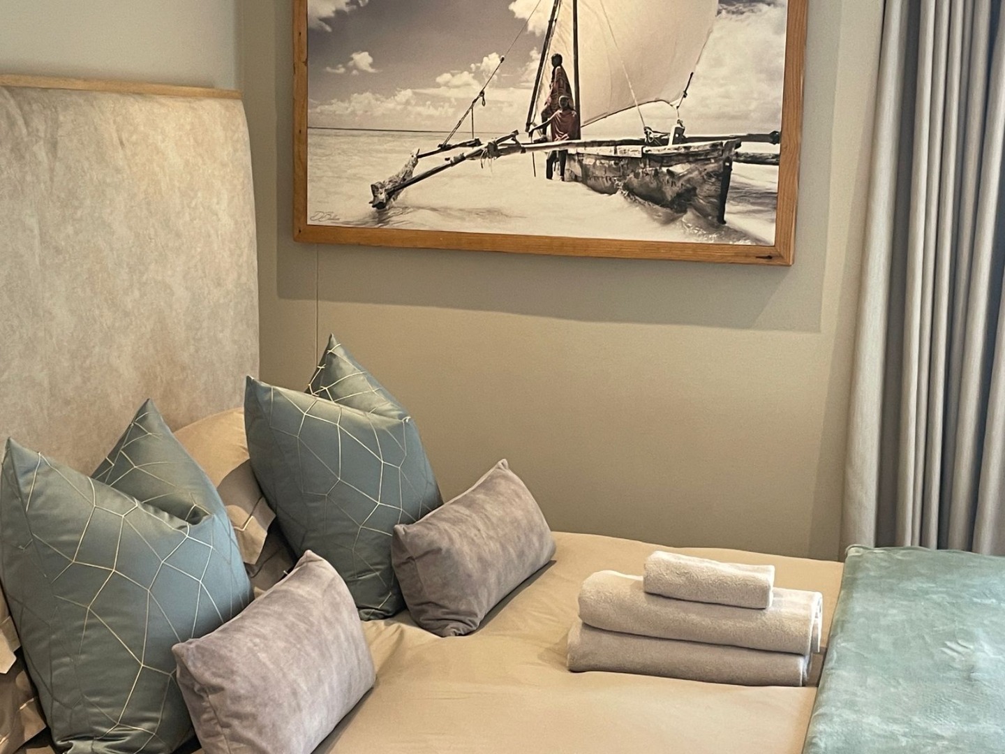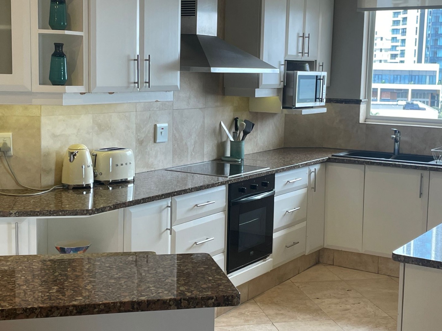 Discover an exceptional opportunity for sophisticated coastal living in this meticulously presented 3-bedroom, 2-bathroom apartment, ideally situated in Umhlanga Rocks, South Africa. Spanning 119 square metres, this fully furnished residence offers an open-plan design that seamlessly integrates the lounge, dining area, and a contemporary kitchen, complete with a breakfast bar. The interior boasts durable tiled flooring, modern ceiling fans, recessed lighting, and elegant crown molding, creating an inviting and refined atmosphere. Private elevator access ensures unparalleled convenience and exclusivity.