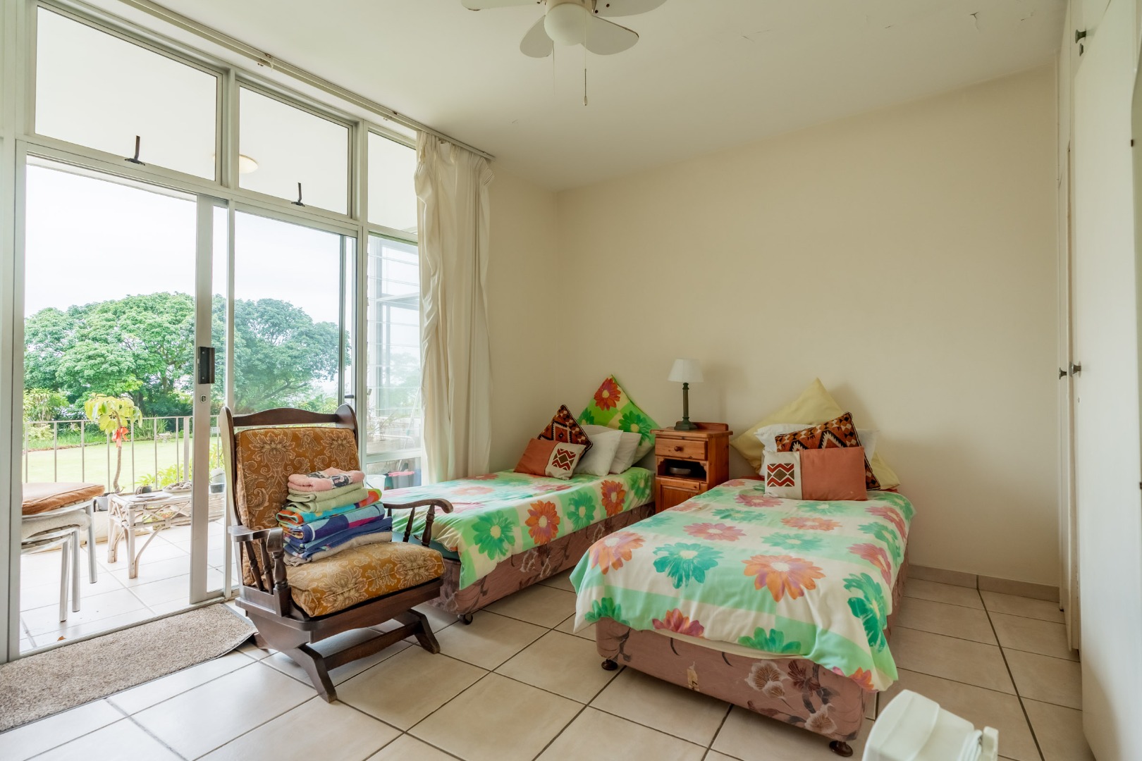 Step out onto the spacious balcony, a special feature of this home, offering expansive views of the meticulously maintained communal gardens and distant ocean glimpses. This outdoor area is perfect for relaxation or entertaining. Residents also enjoy access to a communal swimming pool, lush gardens, and a braai area, enhancing the coastal lifestyle. A single under cover parking provides secure parking.