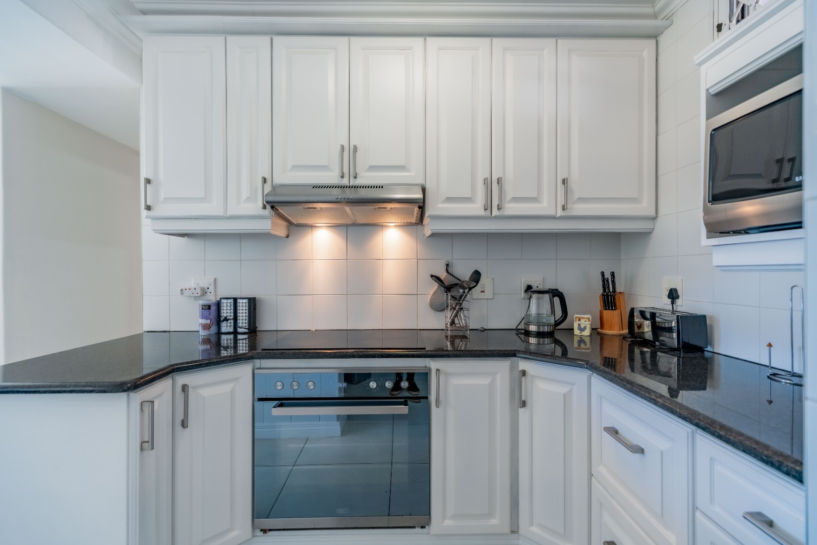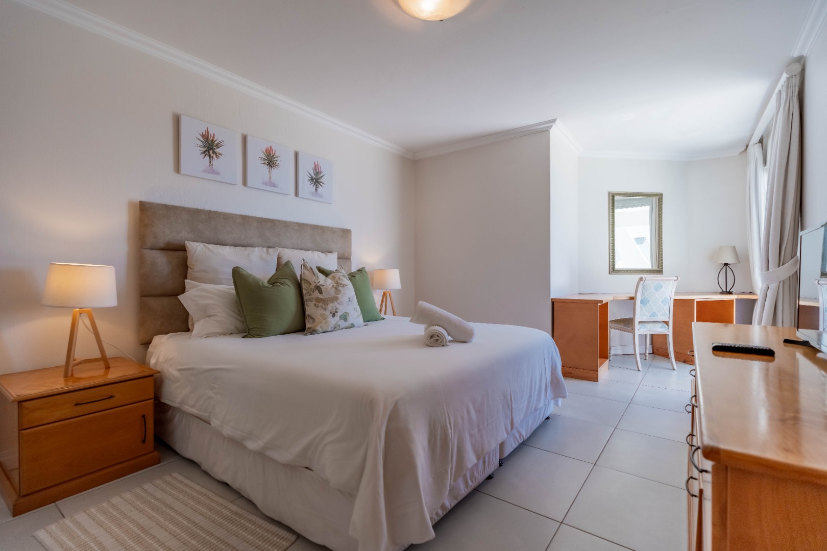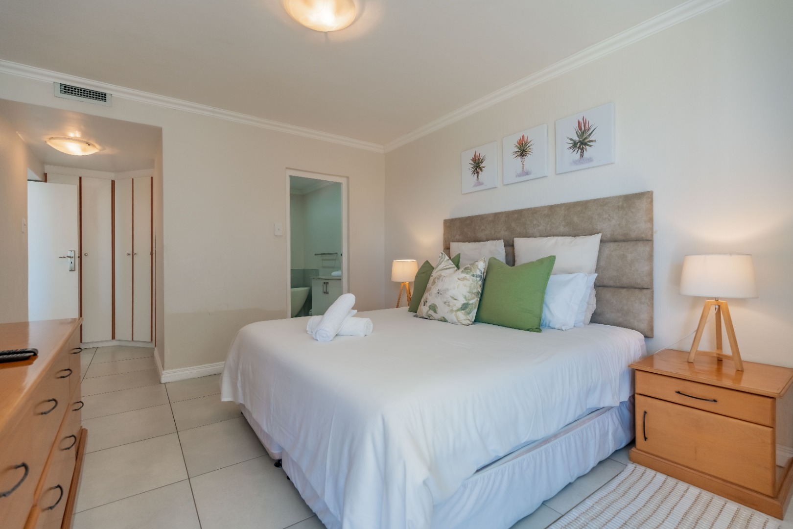 There are three generously sized bedrooms, and two well-appointed bathrooms, including a private en-suite for added comfort and privacy. The master en-suite bedroom, features a study nook and leads out onto the large balcony, which overlooks the lovely communal garden and pool area, plus exquisite ocean views.