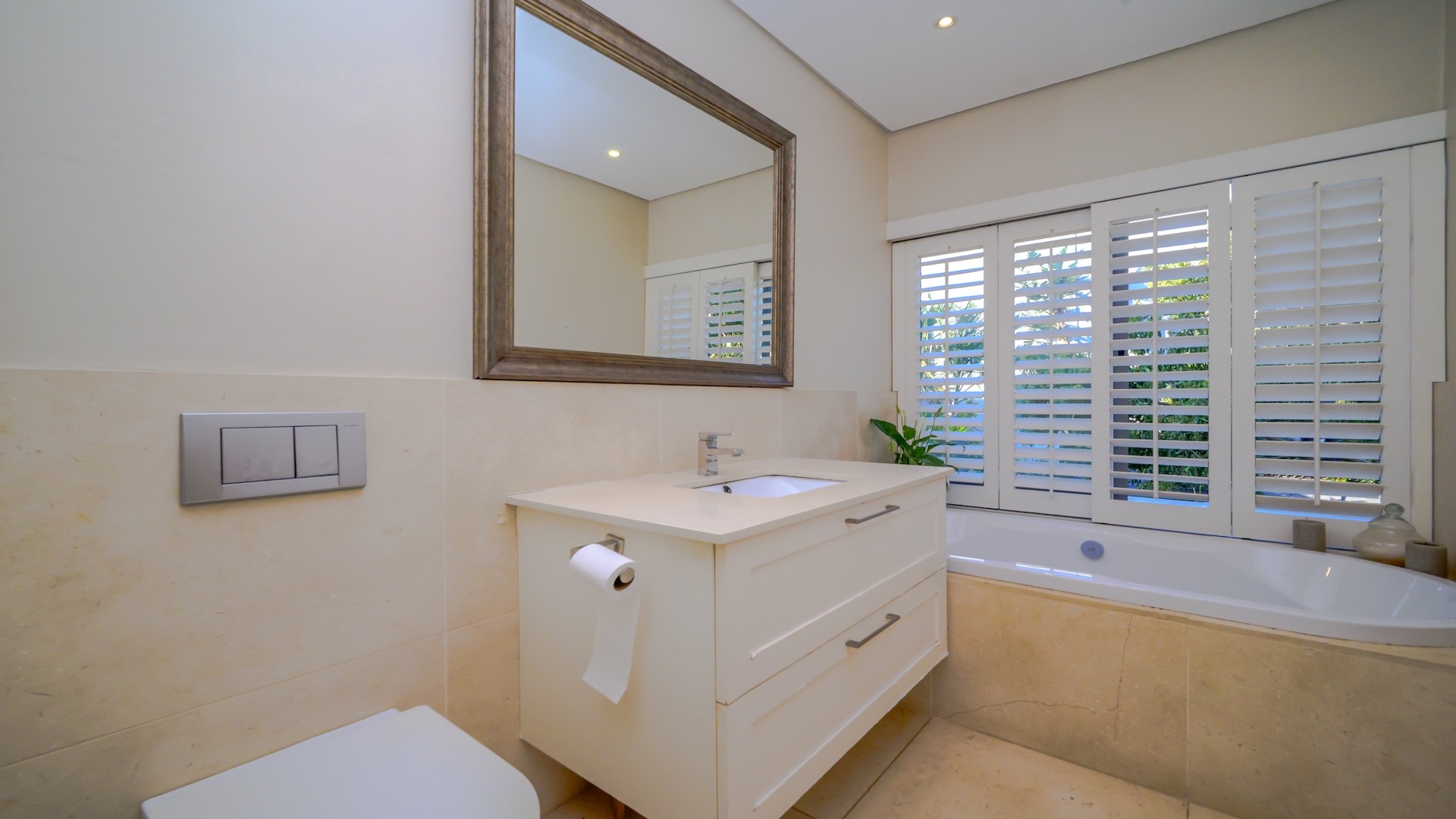 both a bath and shower, while the second bathroom includes a sleek shower.
