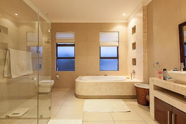 As you enter, a grand entrance hall sets the tone for the exceptional spaces that lie beyond. The two lounges are generously proportioned, with one flowing out to the outdoor entertainment area. The open-plan design features a built-in bar, creating the perfect setting for hosting friends and family. A conversation counter connects the living areas with the sleek kitchen, which boasts a gas hob, ample storage, and high-end finishes. Adjacent to the kitchen, the breakfast nook offers a cozy space for morning meals.