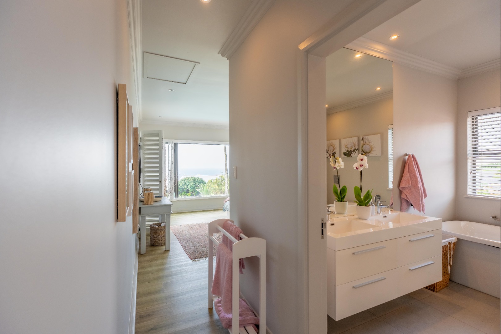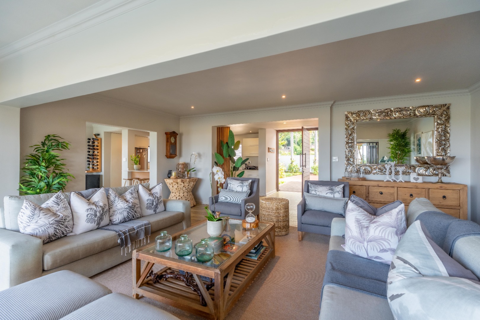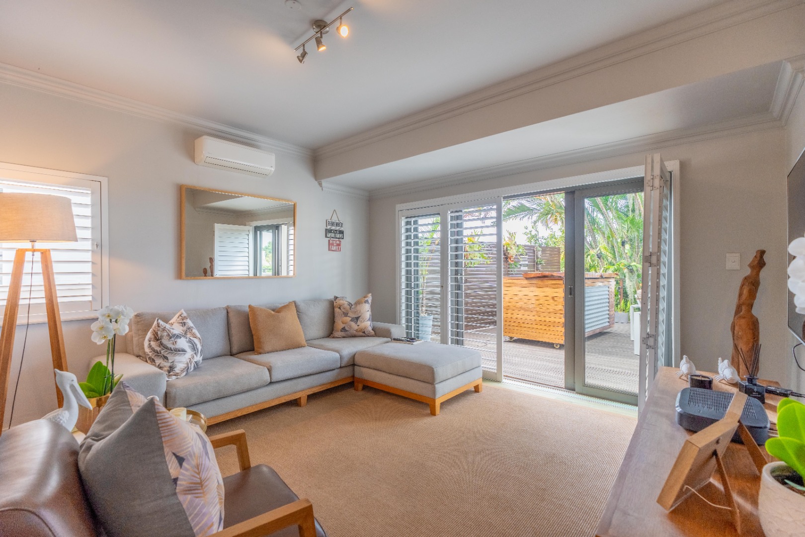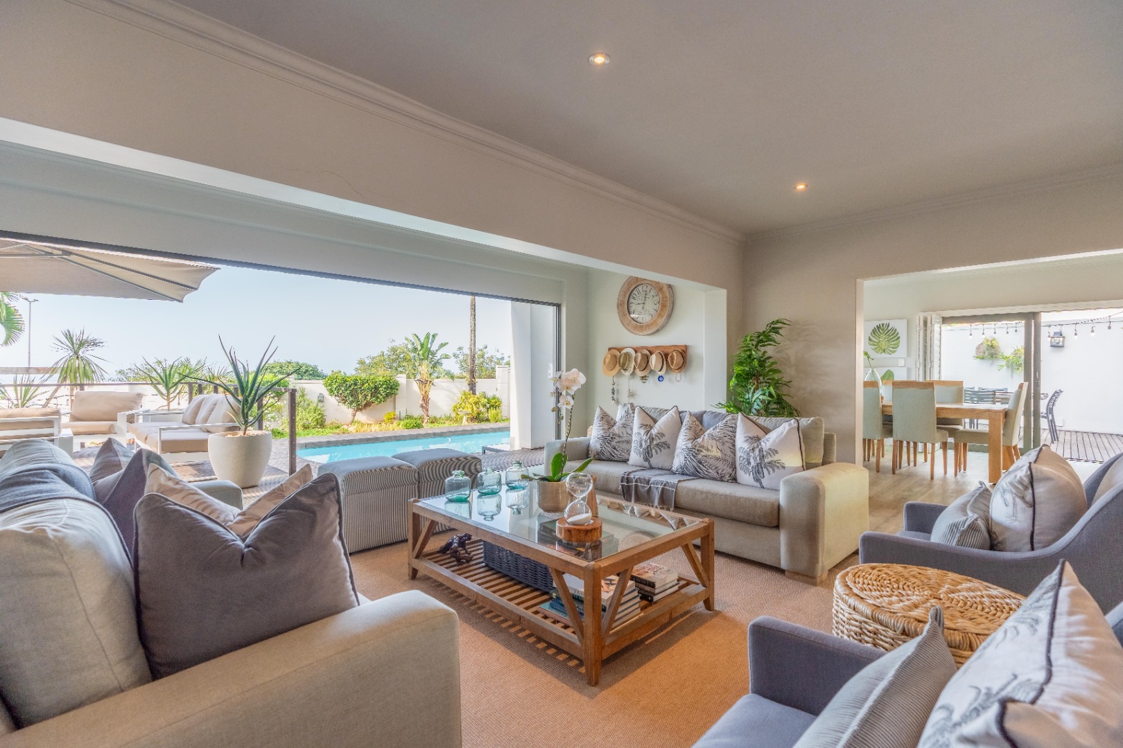 All living spaces extend seamlessly onto expansive, decked entertainment patios, designed for effortless indoor-outdoor living. A conversation counter anchors the space, overlooking the level, manicured garden and shimmering pool, boasting el fresco dining off the side of the home, with uninterrupted sea views completing this exceptional setting.