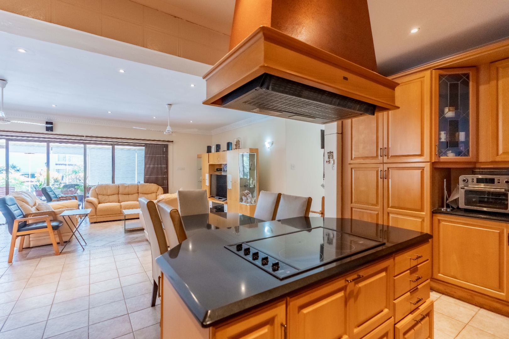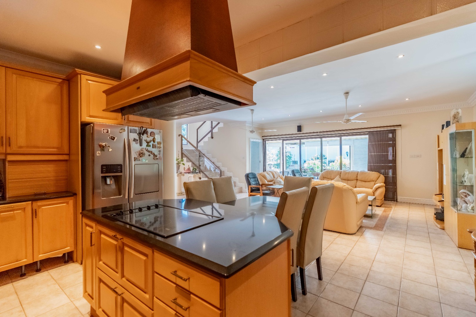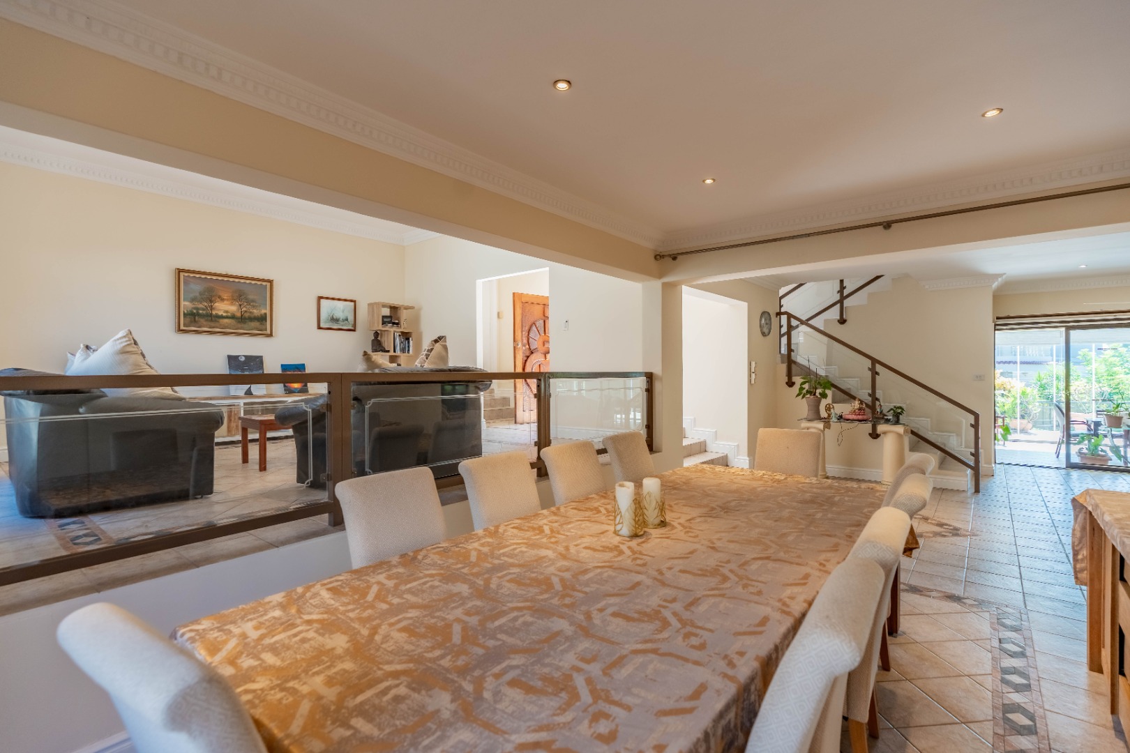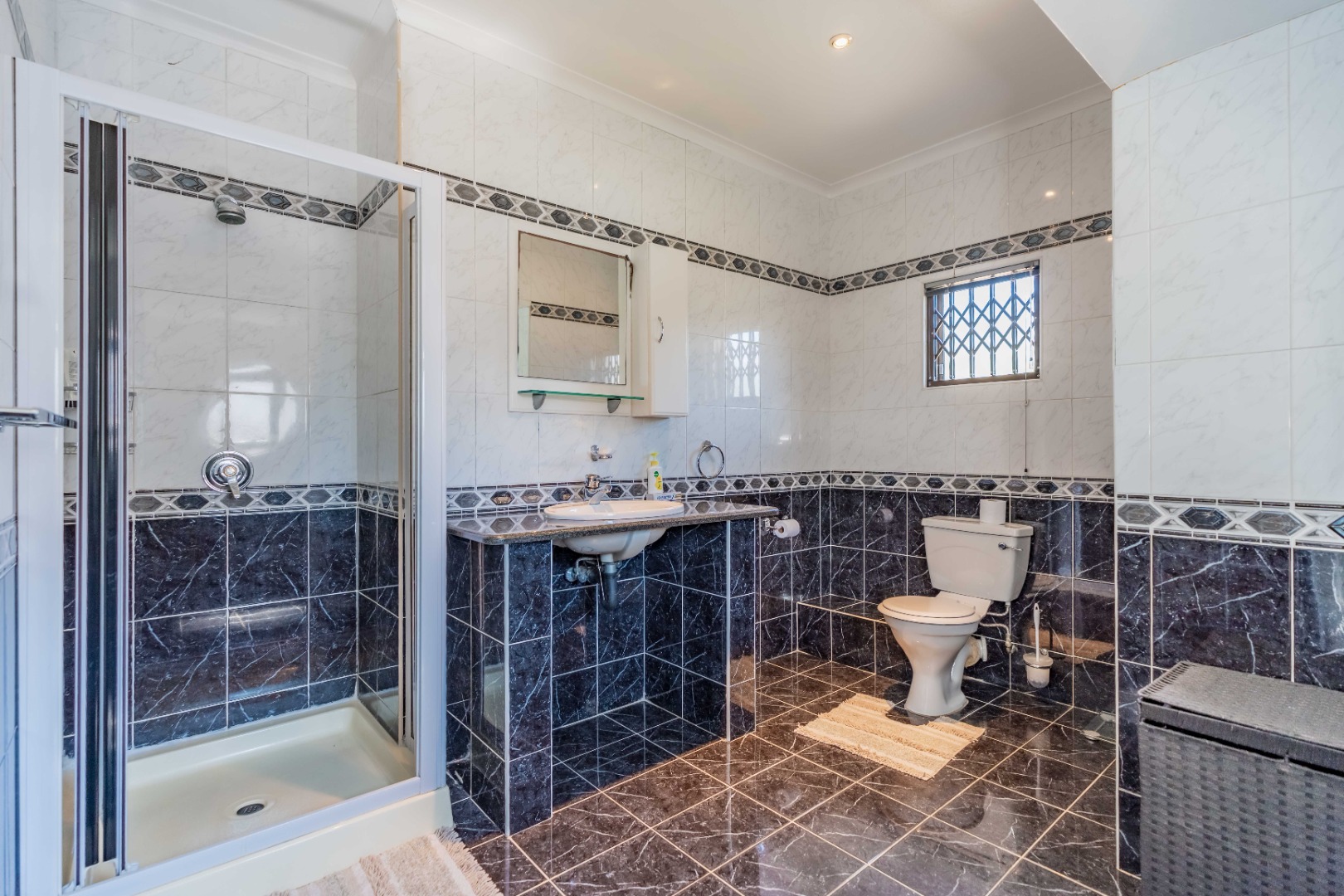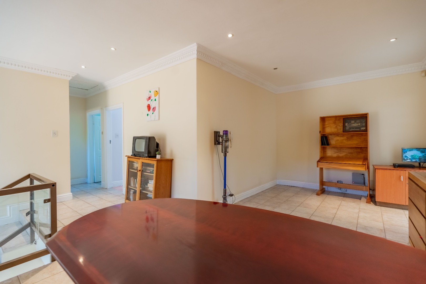 The home features four generously sized bedrooms, each benefiting from its own en-suite bathroom, ensuring privacy and comfort for all occupants. A convenient guest toilet is also available. The thoughtful layout includes one en-suite bedroom downstairs, while the upper level hosts the remaining three en-suite bedrooms, complemented by a dedicated PJ lounge for relaxed family moments and a private pray room. Living spaces are abundant, with a private lounge, a large dining area, and a family TV room, providing versatile options for relaxation and entertaining. The well-appointed kitchen includes a scullery and pantry, catering to all culinary needs.