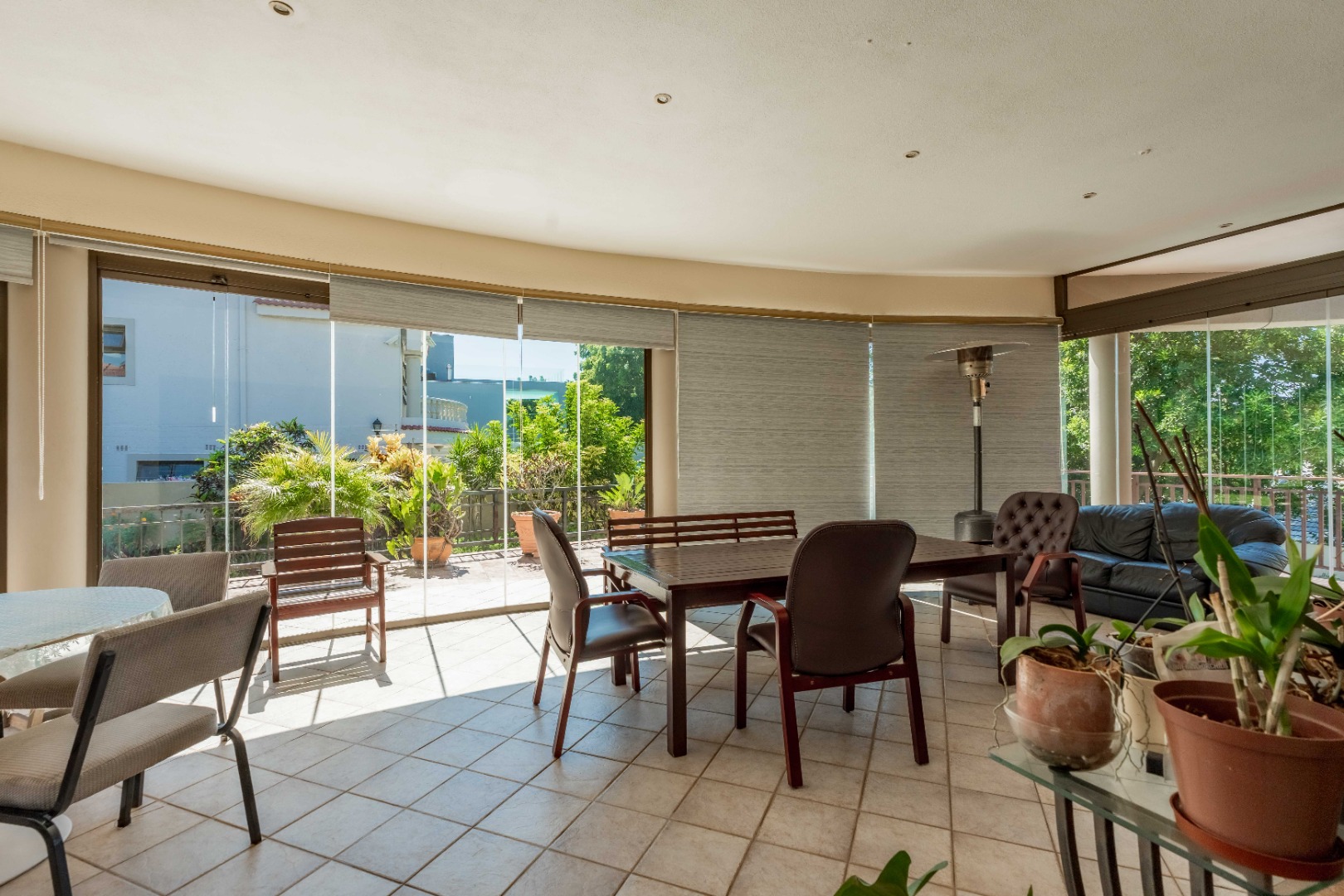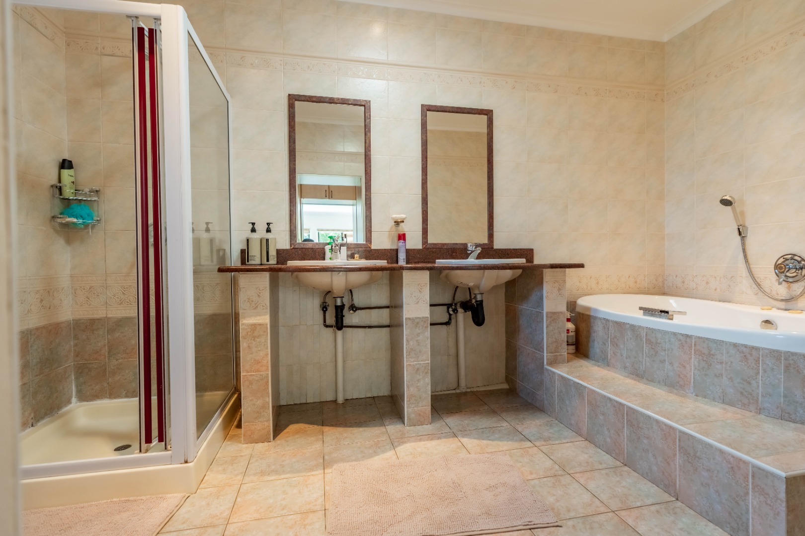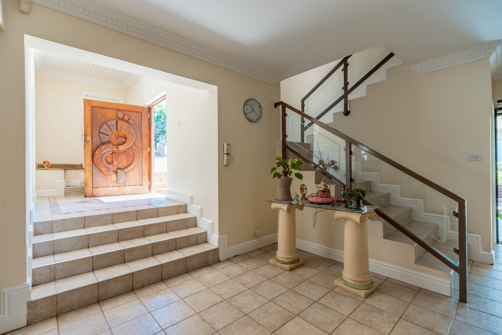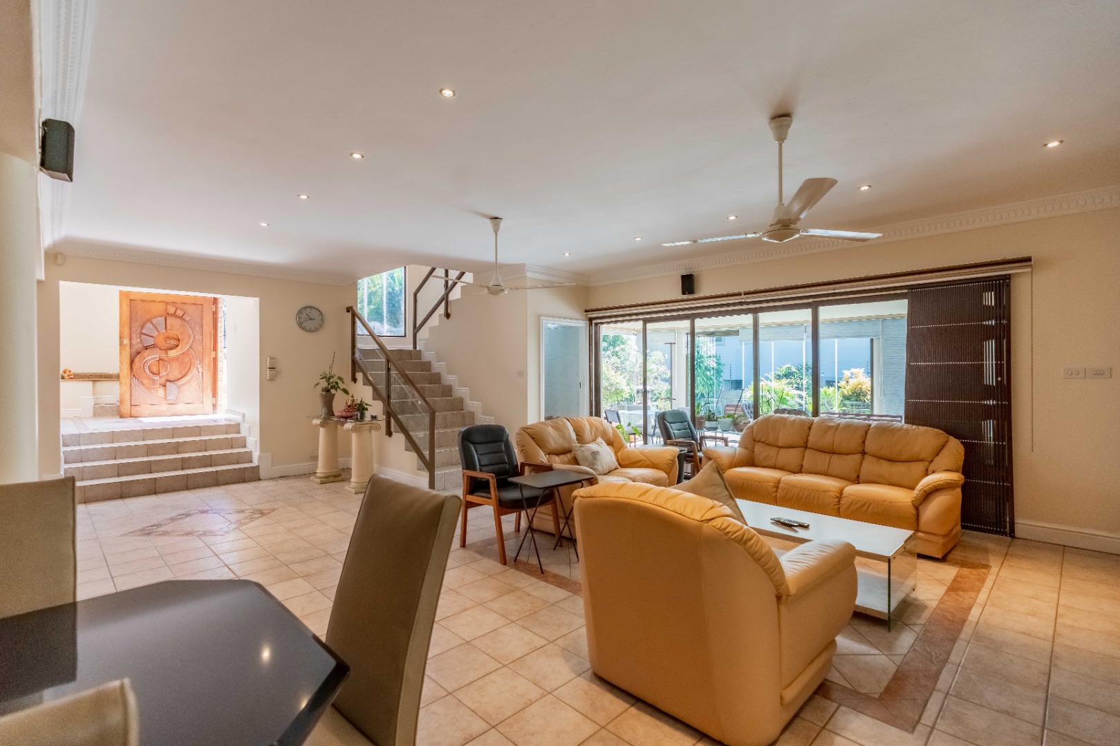 Designed for sophisticated outdoor living, the property boasts a lovely entertainment area that overlooks a sparkling pool, perfect for gatherings. Additional features include a patio, a well-maintained garden, and ample parking with three lock-up garages and space for several additional vehicles on the paved driveway. Modern conveniences such as air conditioning, laundry facilities, and storage are integrated throughout. Security is paramount, with an alarm system, access gate, intercom, and a totally walled perimeter. Pets are also welcome.