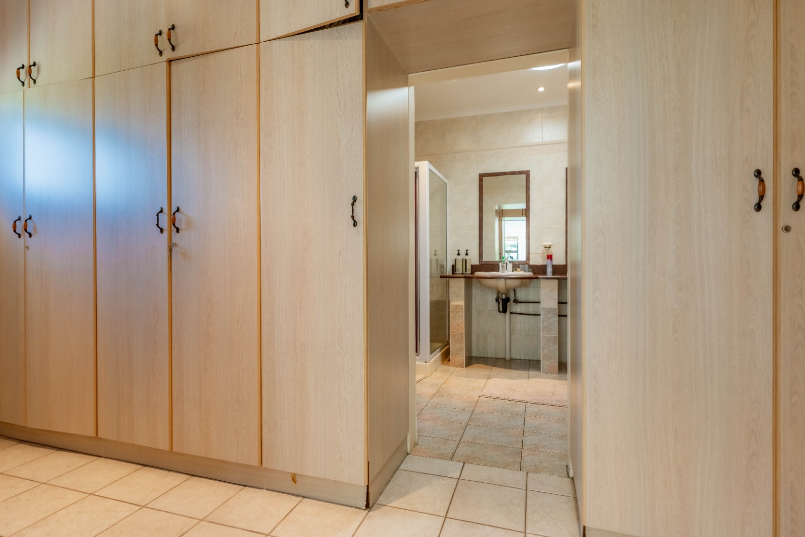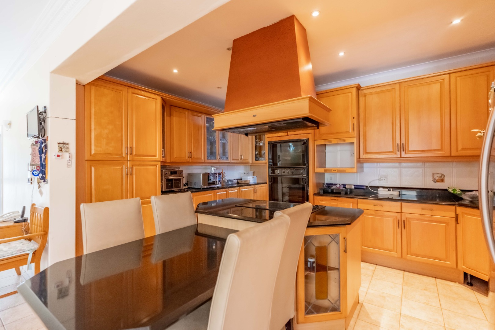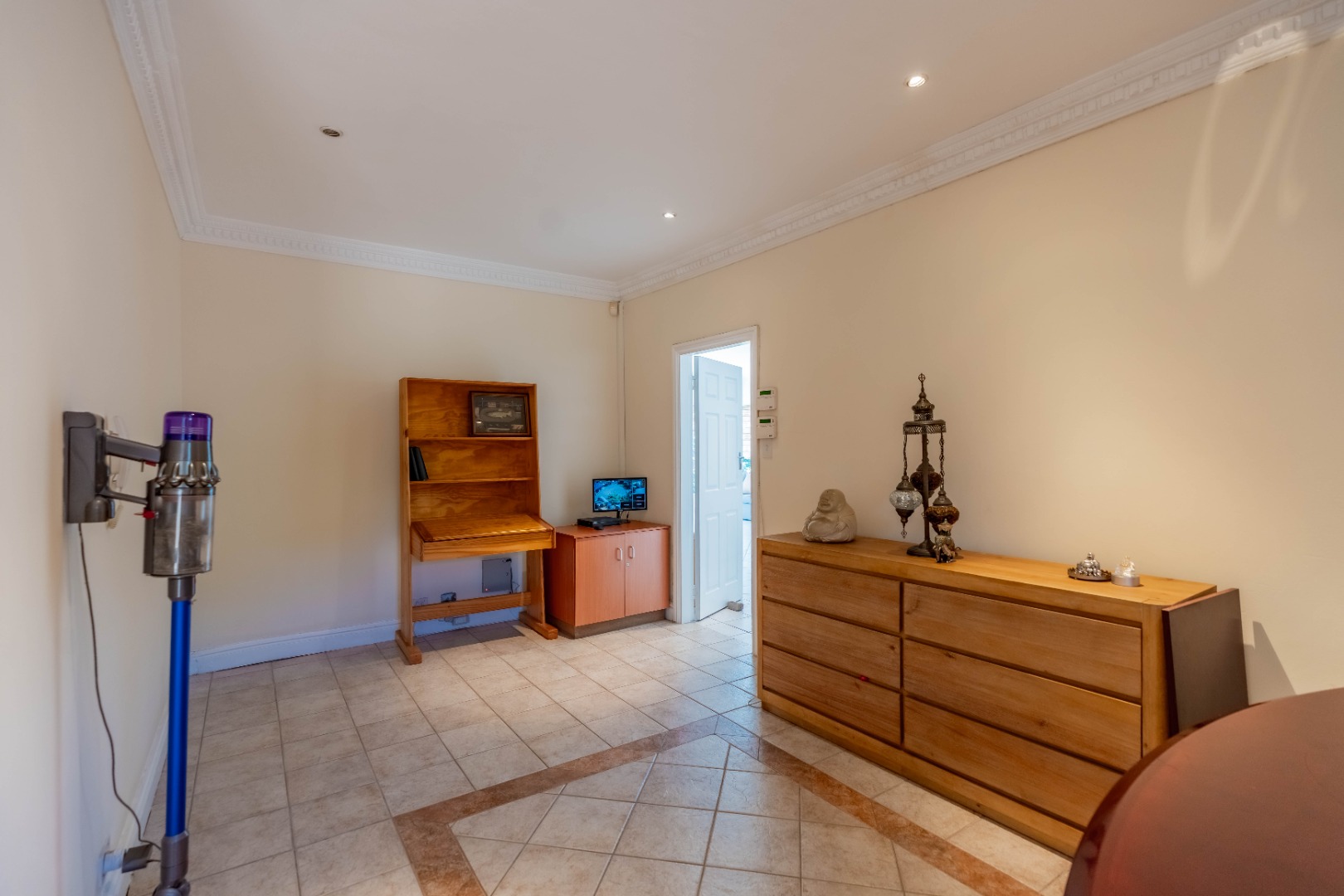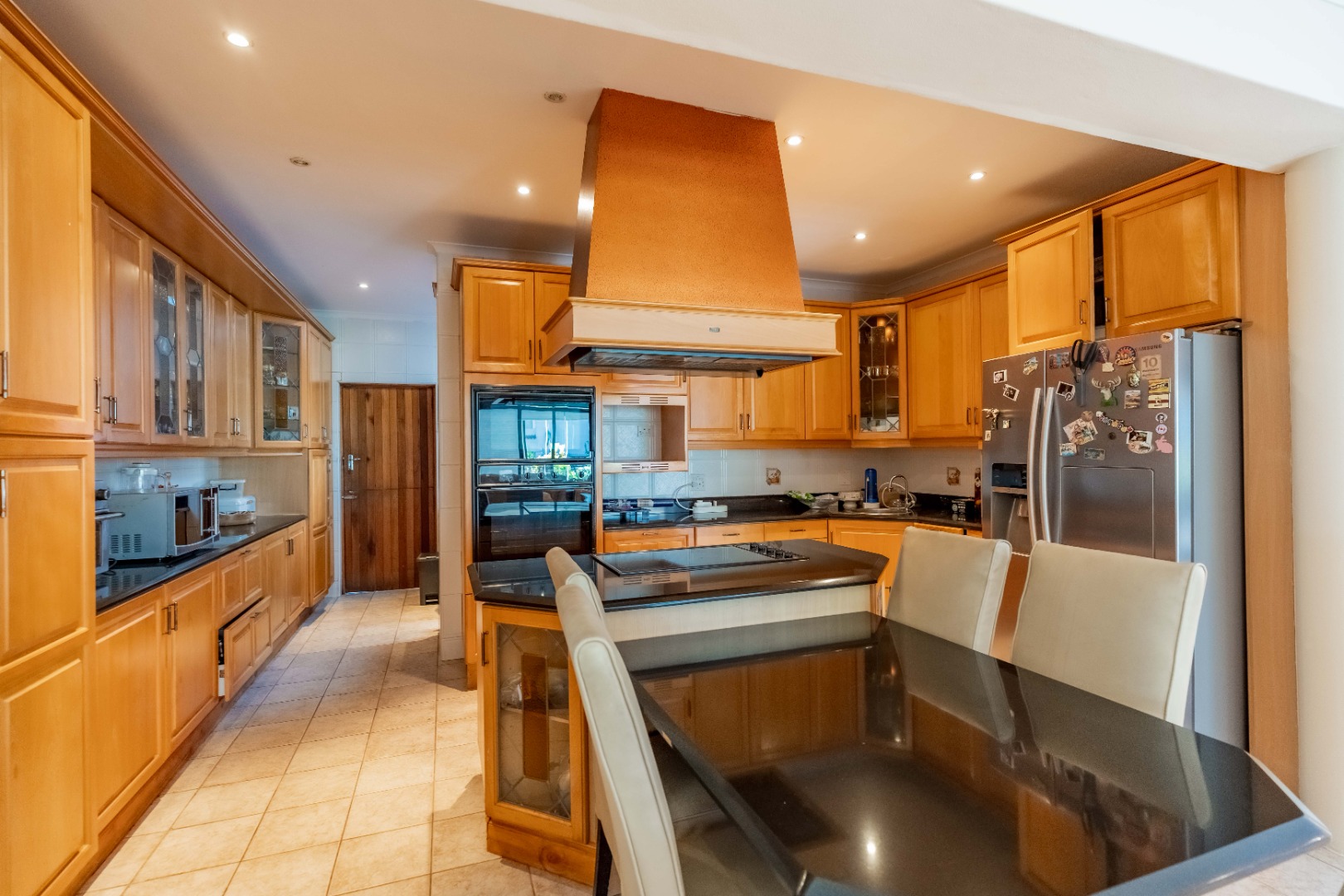 The home features four generously sized bedrooms, each benefiting from its own en-suite bathroom, ensuring privacy and comfort for all occupants. A convenient guest toilet is also available. The thoughtful layout includes one en-suite bedroom downstairs, while the upper level hosts the remaining three en-suite bedrooms, complemented by a dedicated PJ lounge for relaxed family moments and a private pray room. Living spaces are abundant, with a private lounge, a large dining area, and a family TV room, providing versatile options for relaxation and entertaining. The well-appointed kitchen includes a scullery and pantry, catering to all culinary needs.