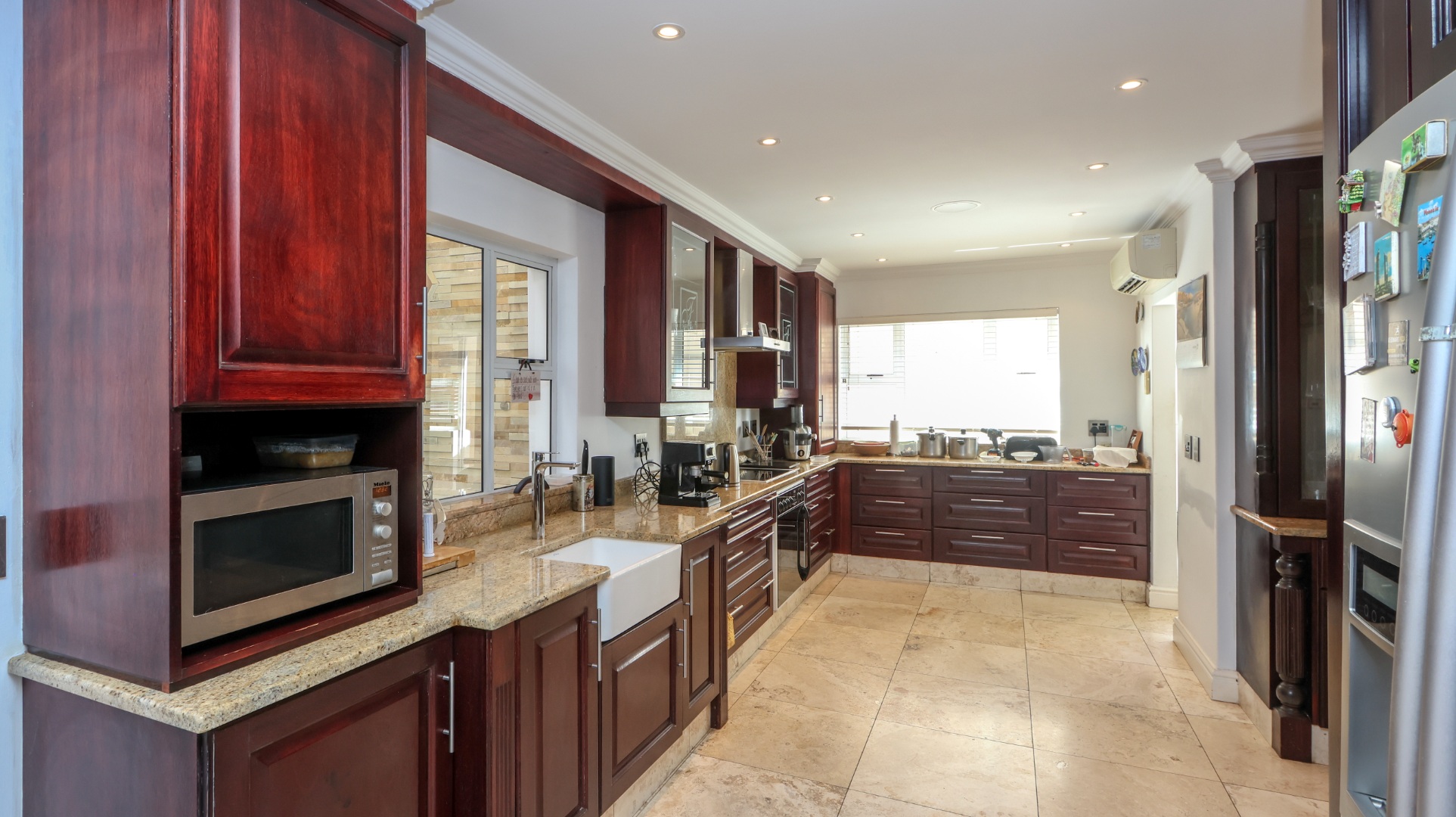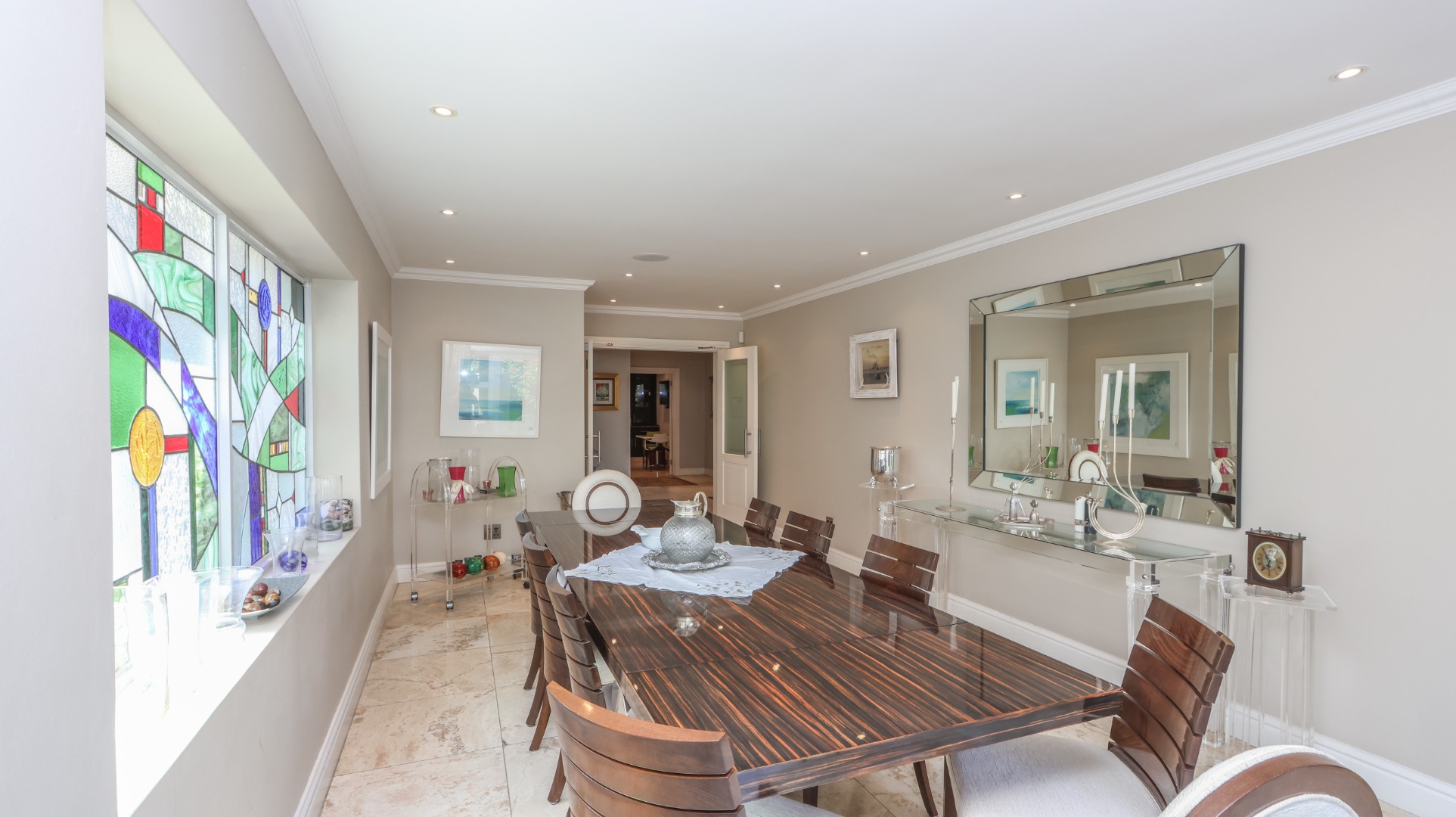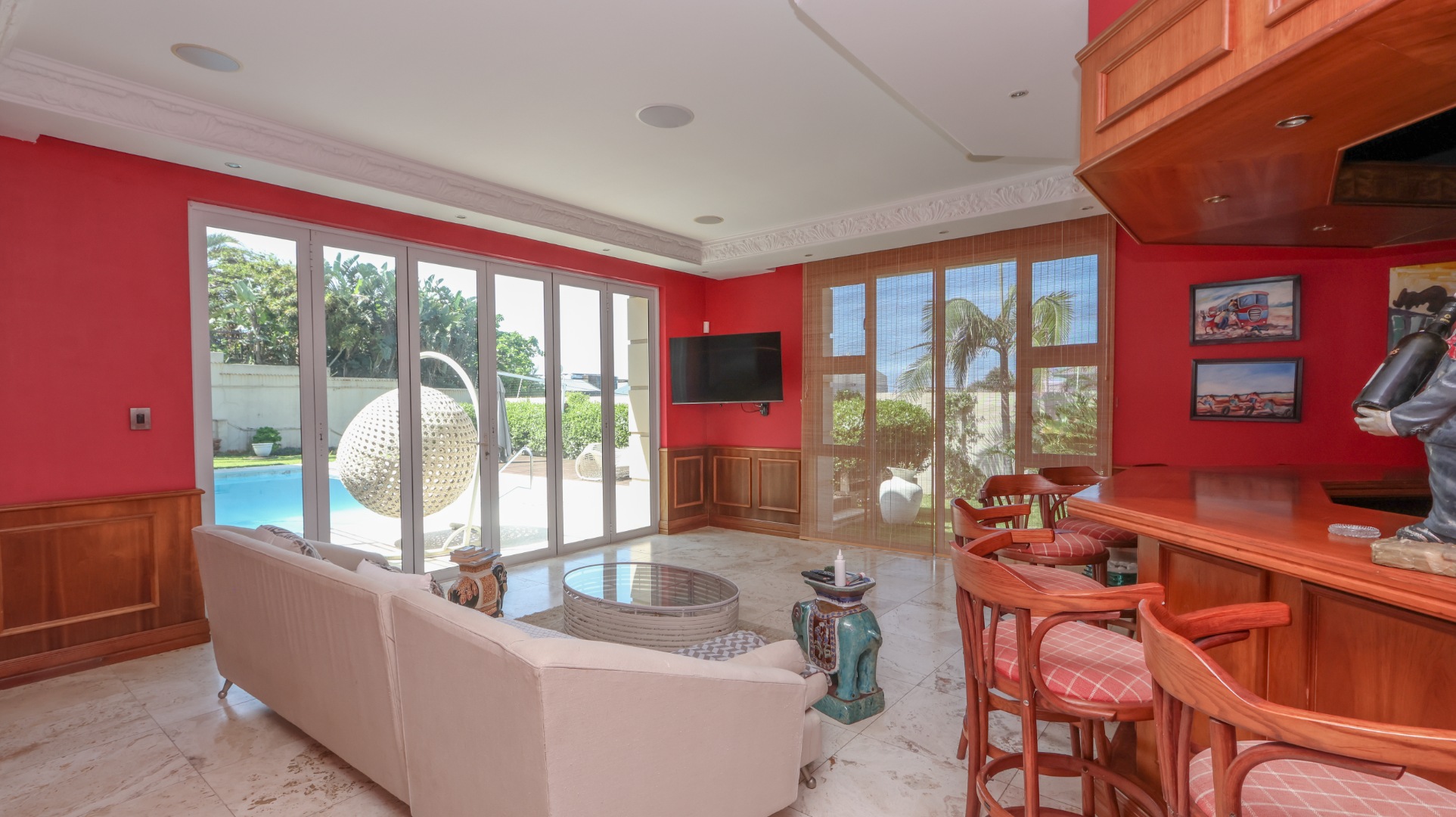 At the heart of the home lies a gourmet chef’s kitchen, fully equipped with state-of-the-art appliances and cutting-edge technology. A spacious walk-in fridge and dedicated wine racks offer premium storage for fine ingredients and prized vintages. The fitted bar, positioned to overlook the pool area, creates the perfect setting for both relaxed evenings and upscale entertaining.
