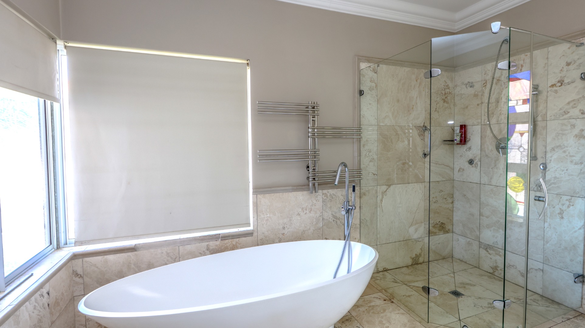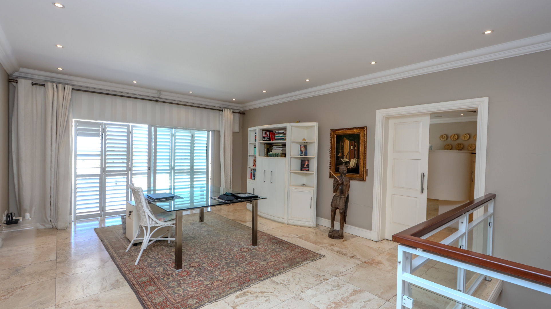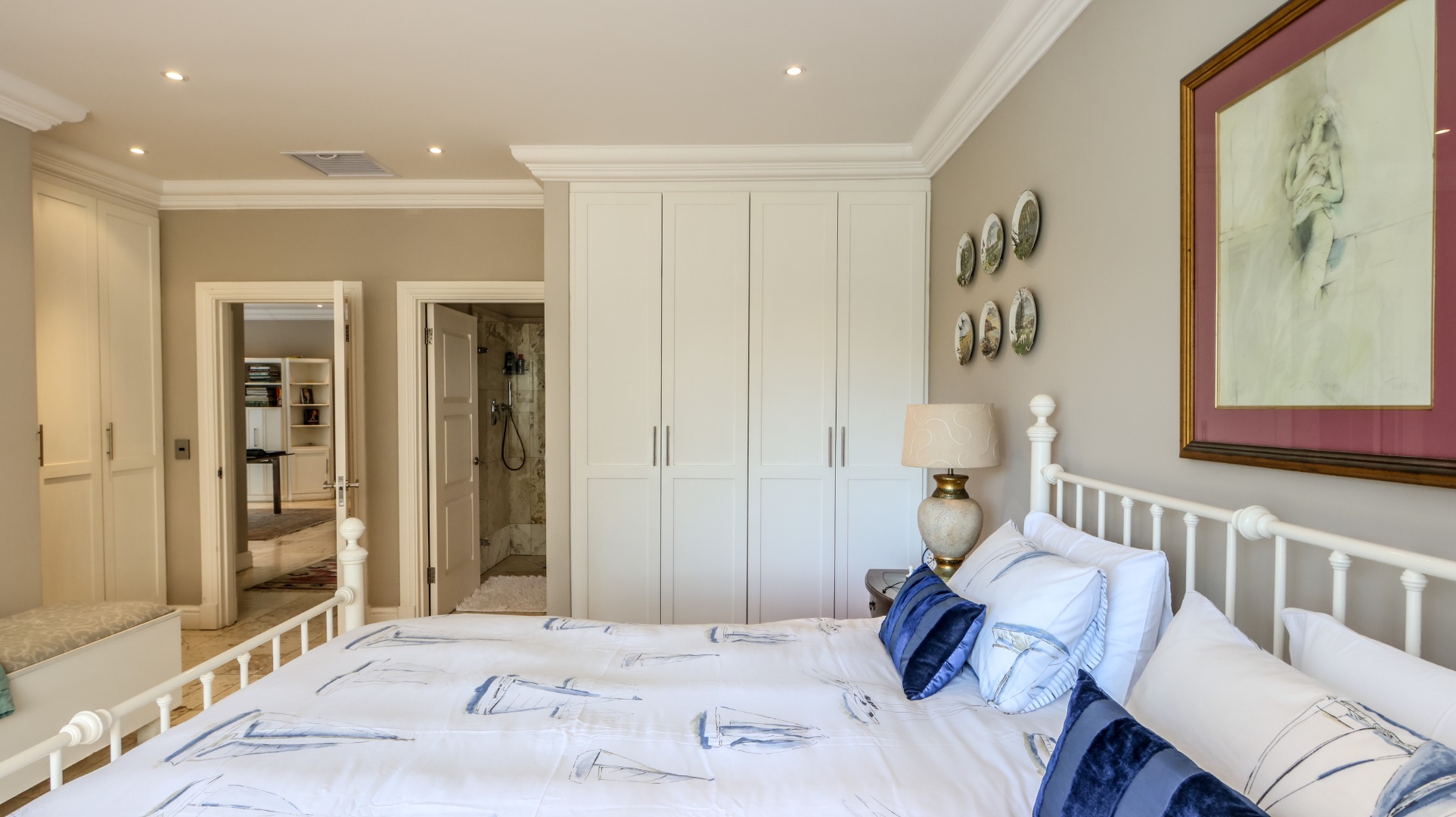 Step into an elegant world of marble-tiled grandeur, with exquisite marble flooring flowing seamlessly throughout the interior and exterior spaces, setting the tone for timeless luxury. 4 en-suite bedrooms, 3 open up onto their own balconies. All bathroom fixtures of exceptional quality with heated towel racks. The main bedroom has his and her own walk-in cupboards and separate bathrooms.