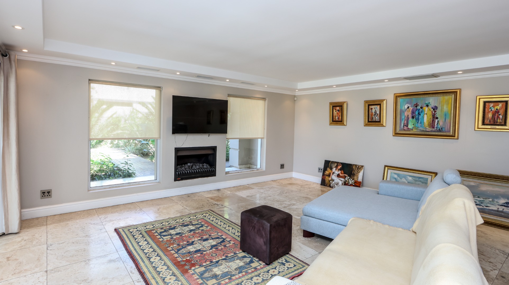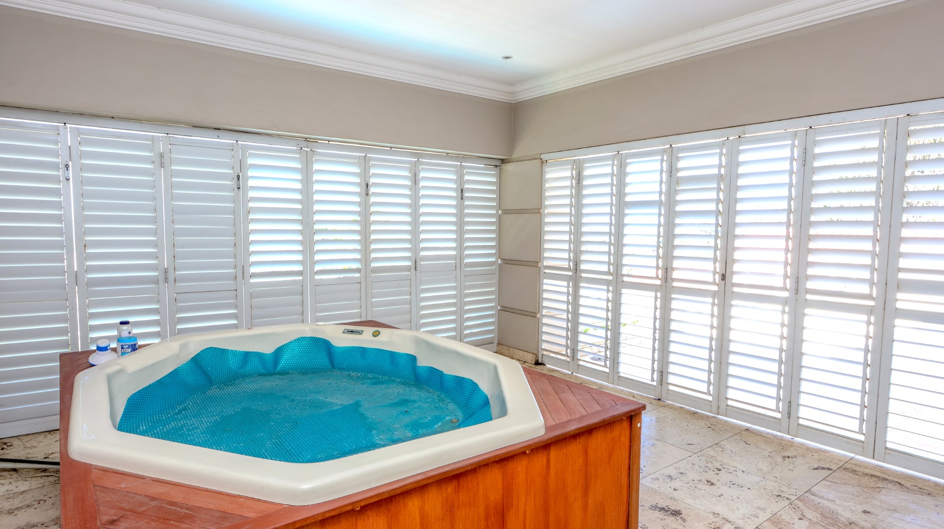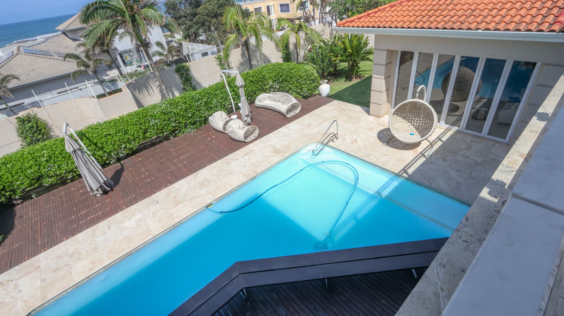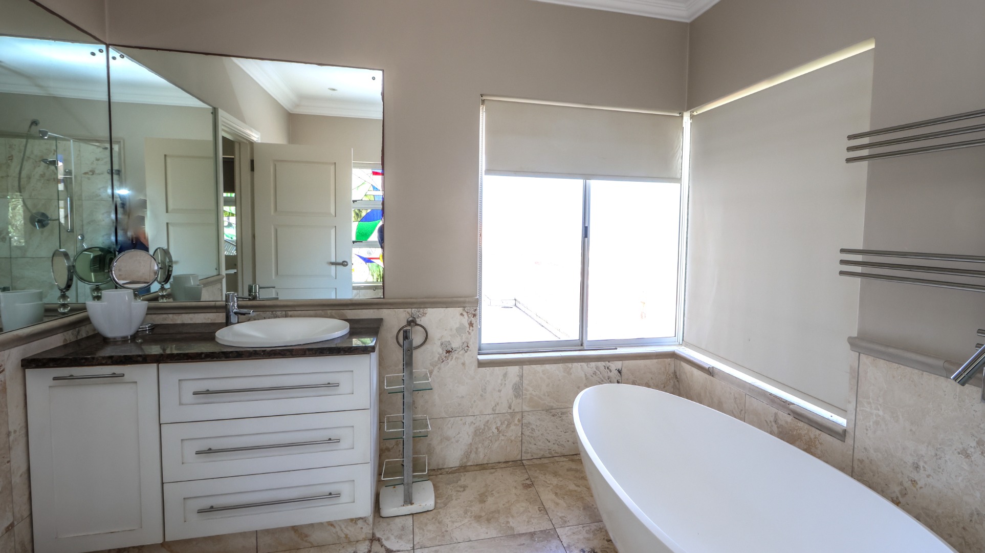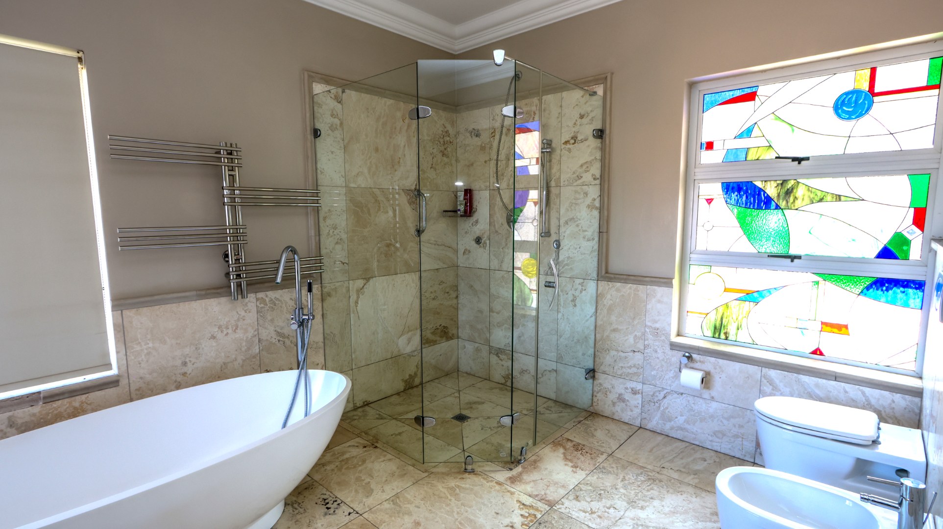 Outdoors, the beautifully designed pool area is framed by sleek marble tiling, creating a resort-like atmosphere. The borehole is a valuable addition, ensuring consistent and sustainable water supply.