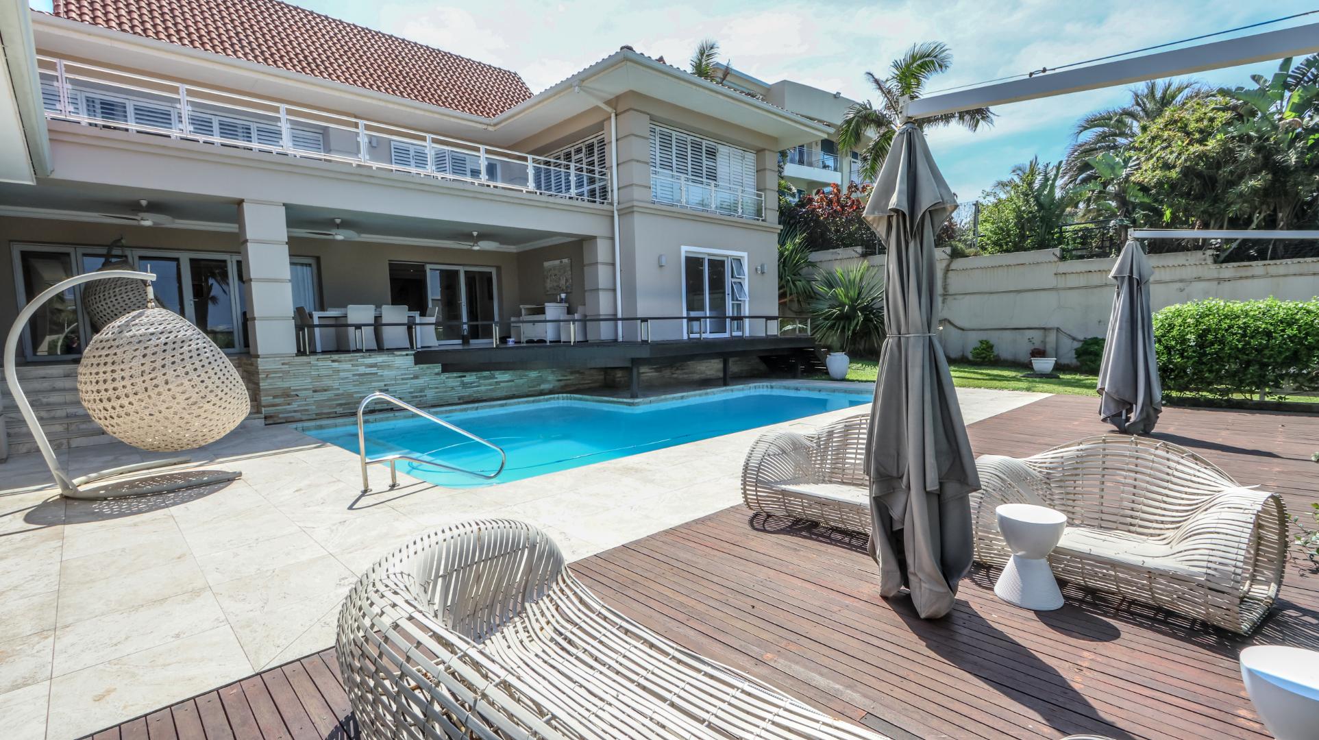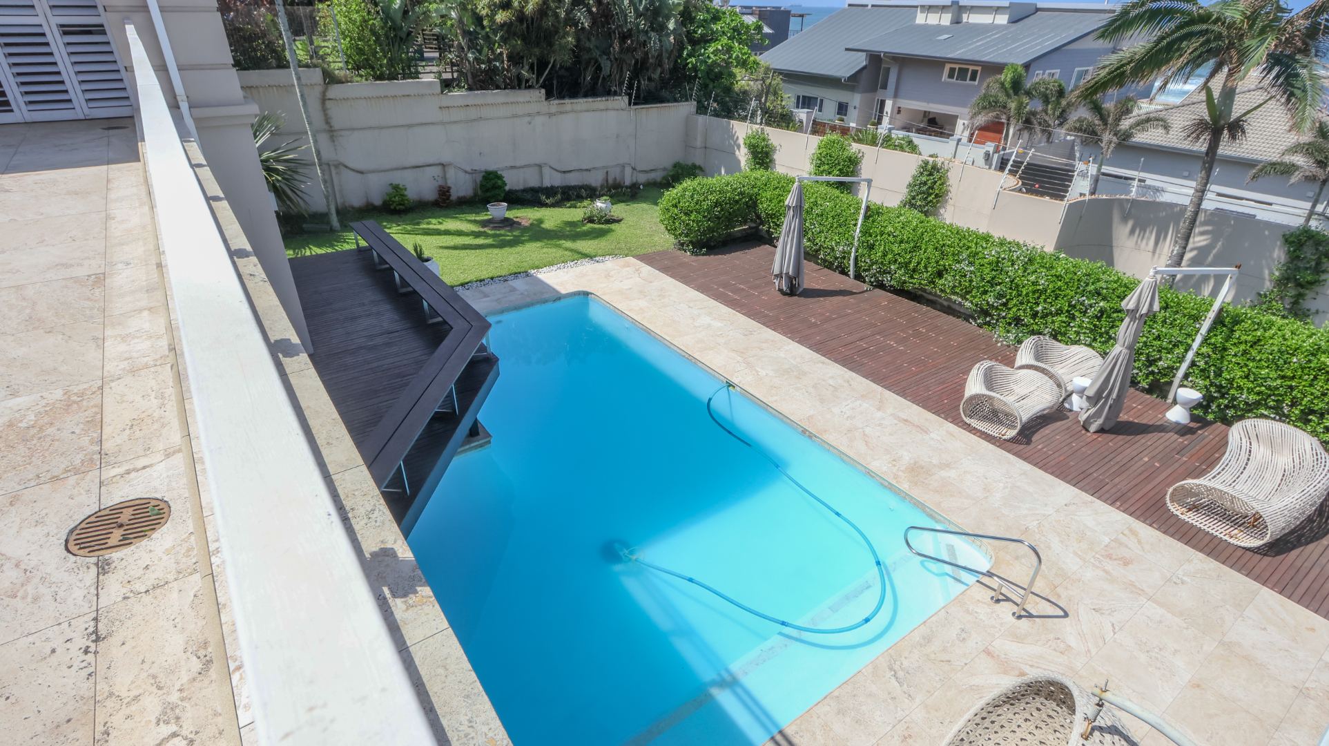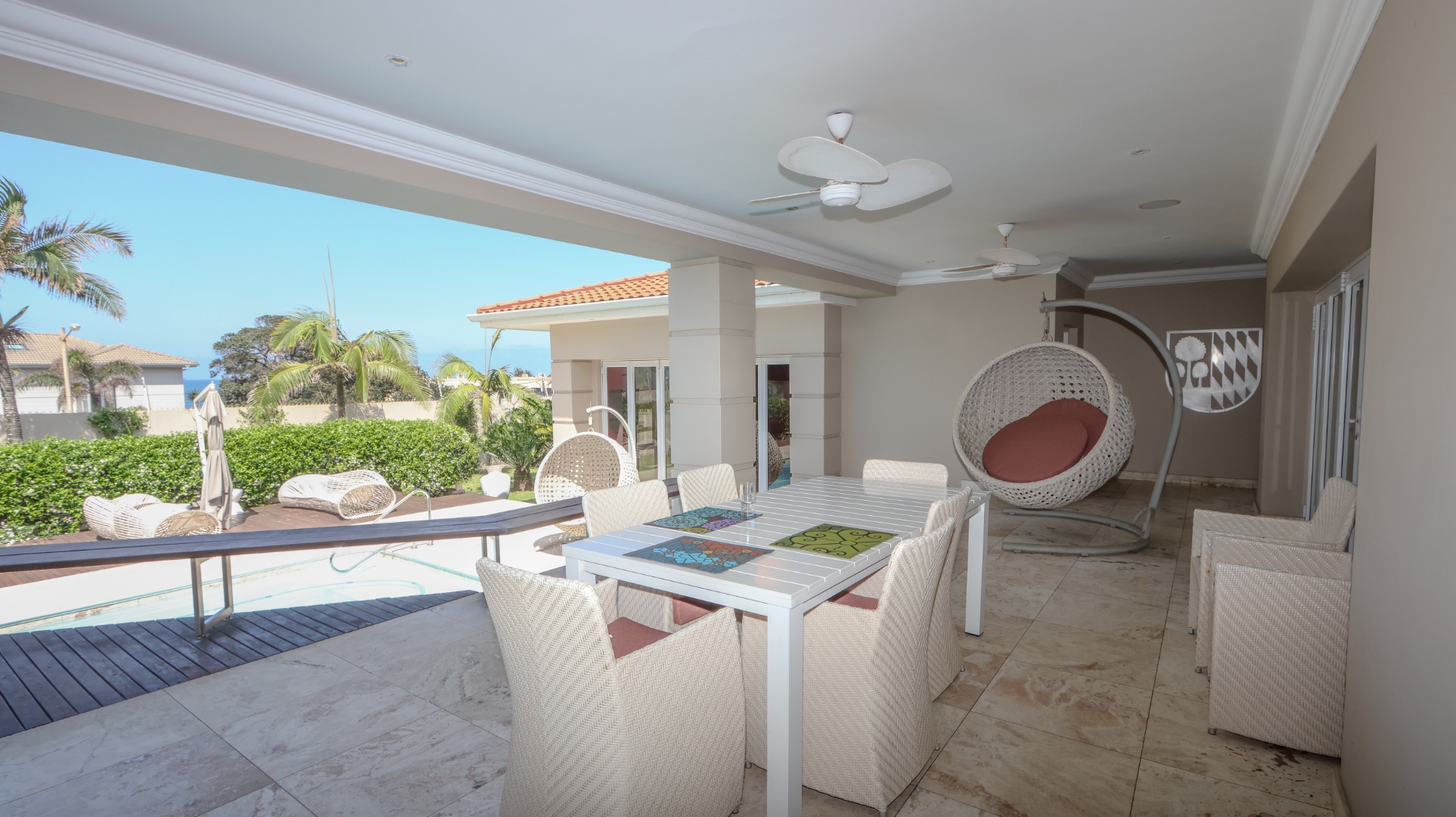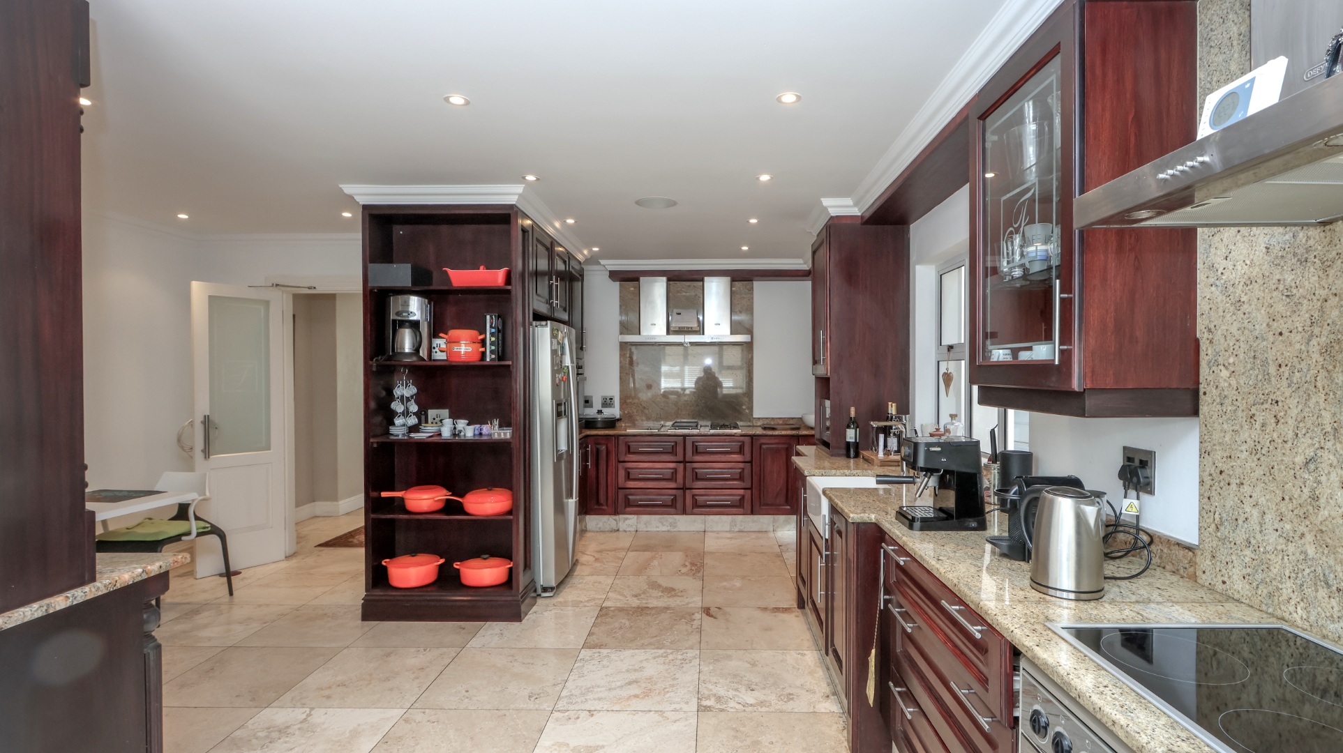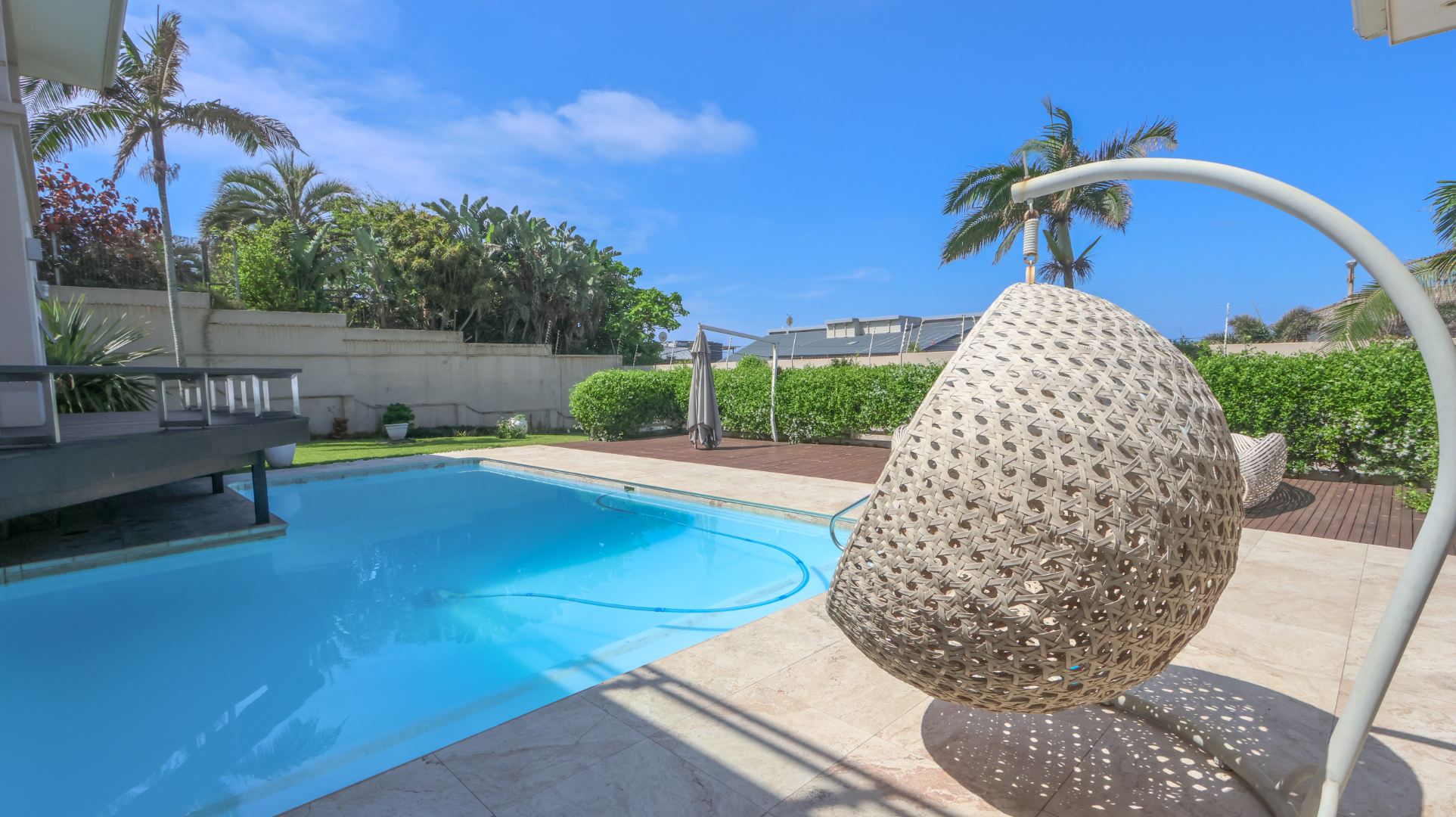 Outdoors, the beautifully designed pool area is framed by sleek marble tiling, creating a resort-like atmosphere. The borehole is a valuable addition, ensuring consistent and sustainable water supply.
