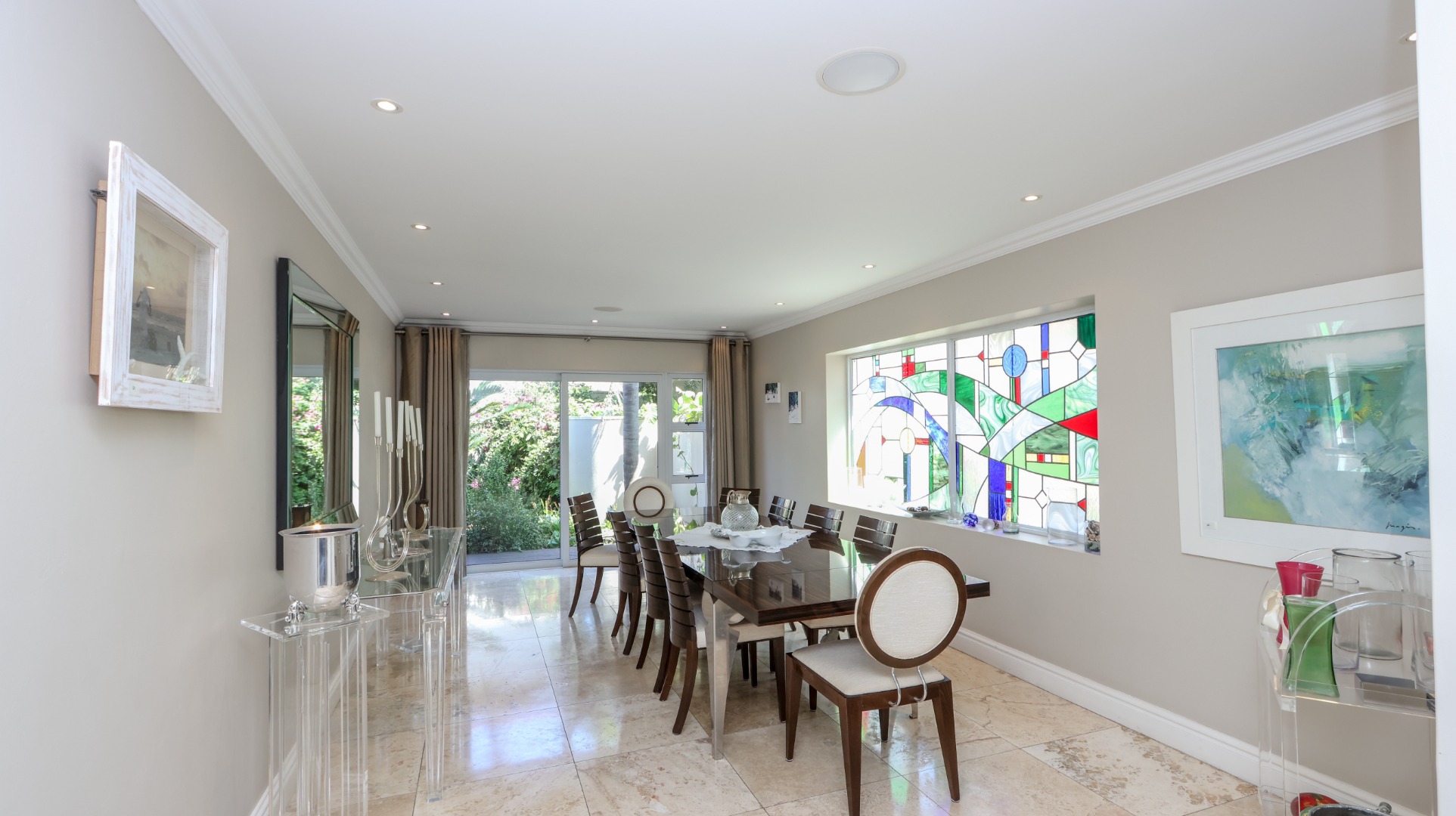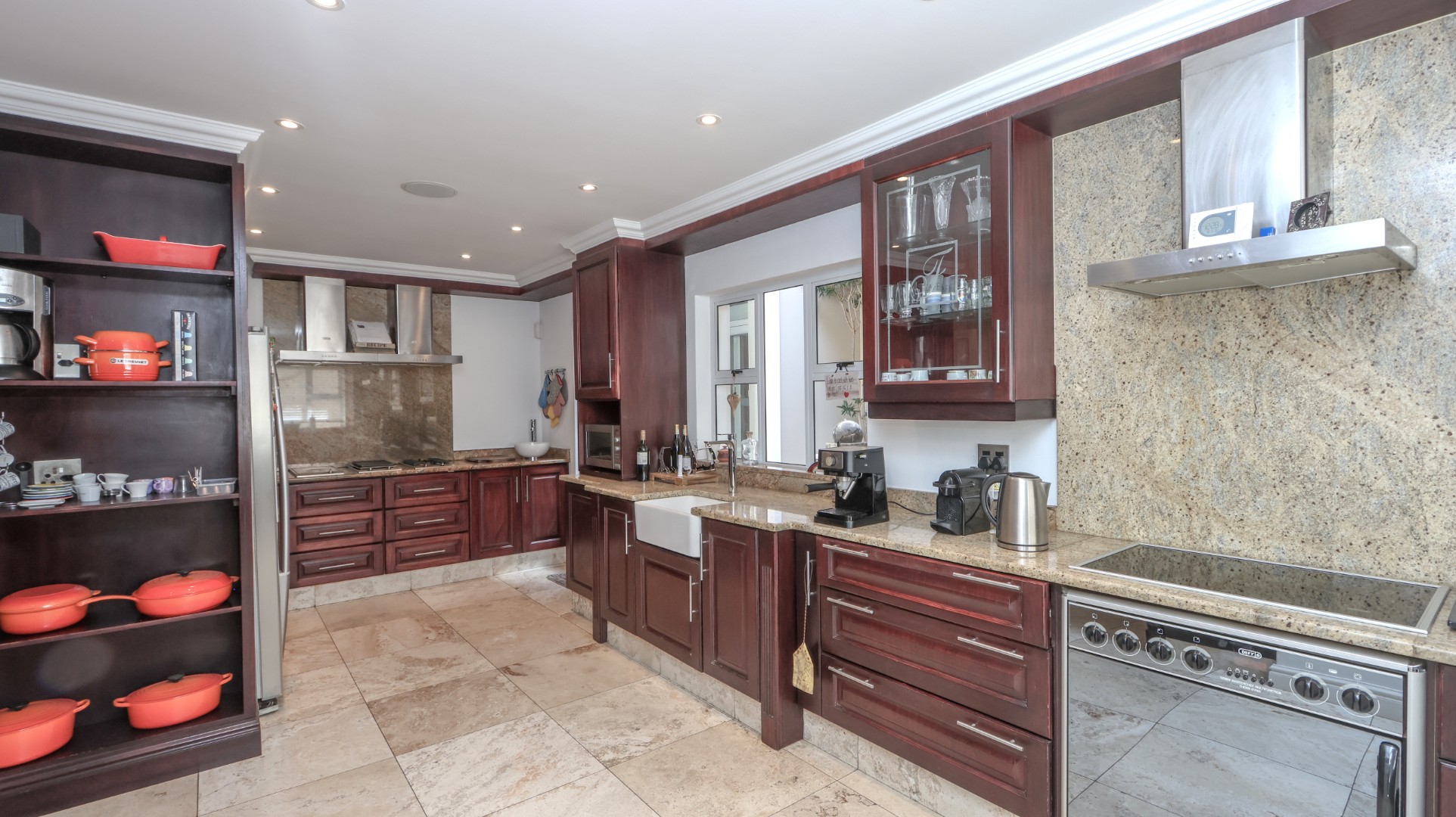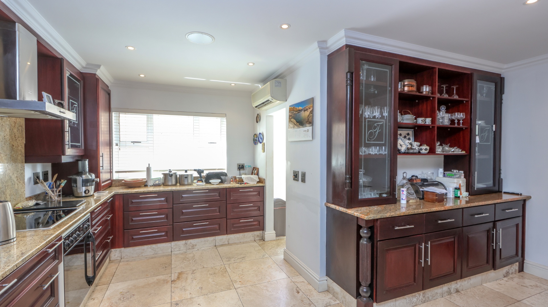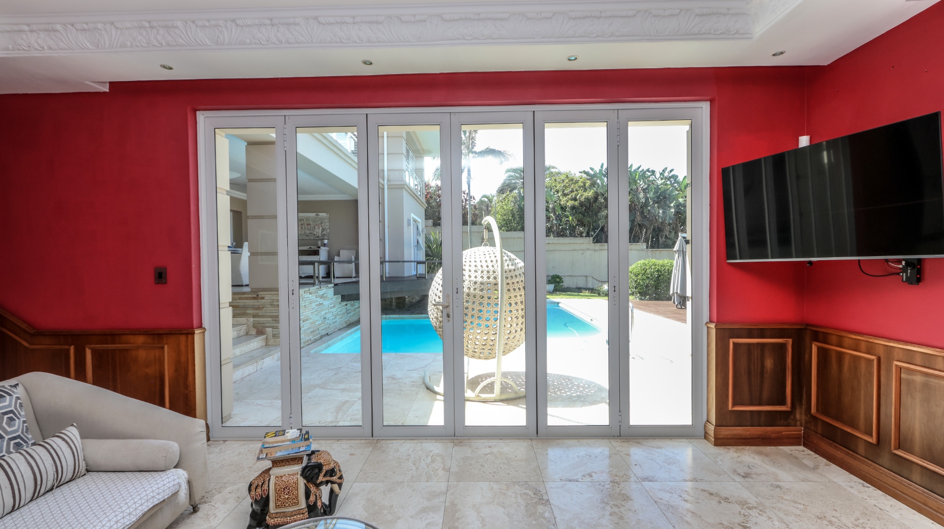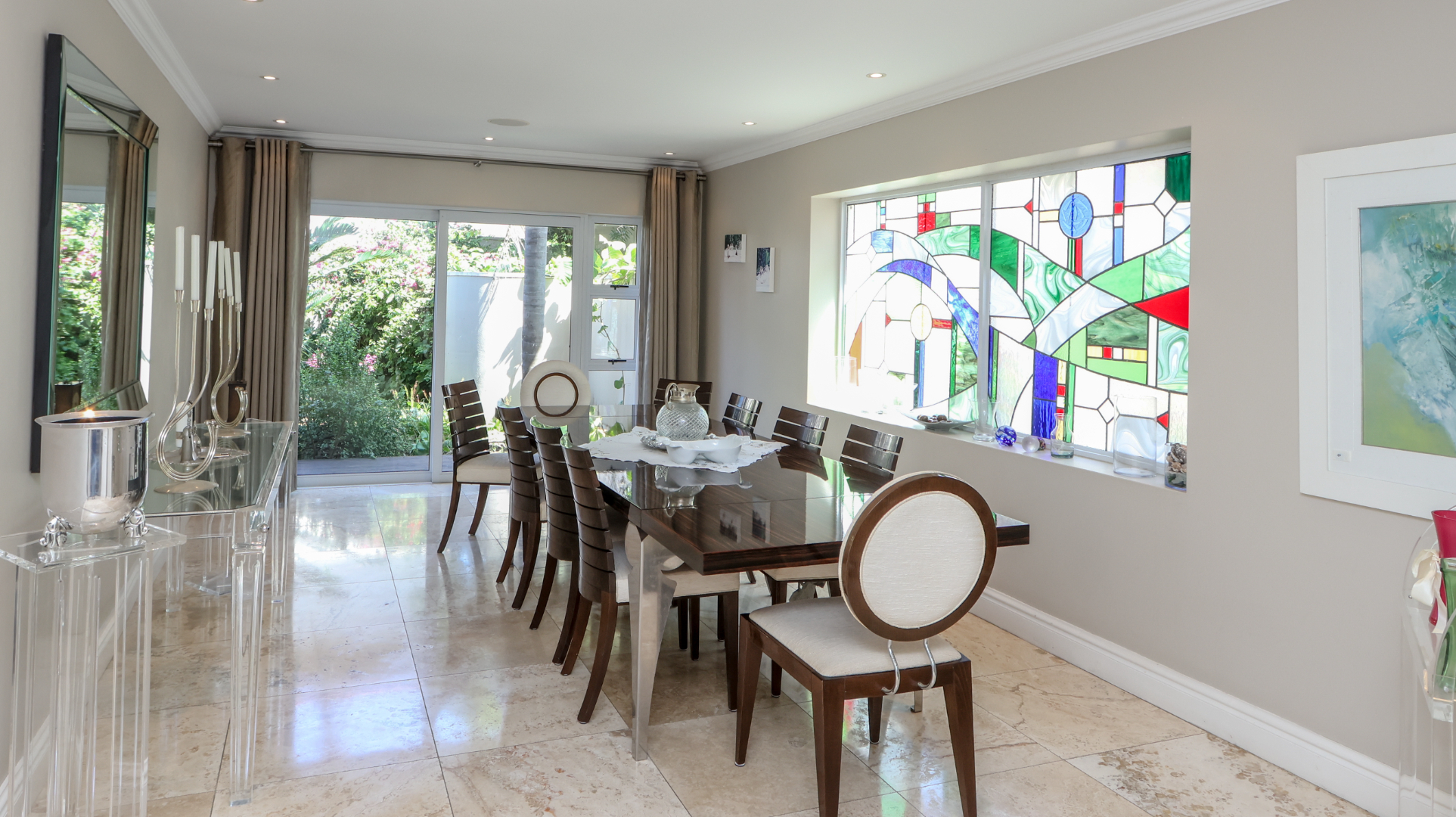 Outdoors, the beautifully designed pool area is framed by sleek marble tiling, creating a resort-like atmosphere. The borehole is a valuable addition, ensuring consistent and sustainable water supply.
