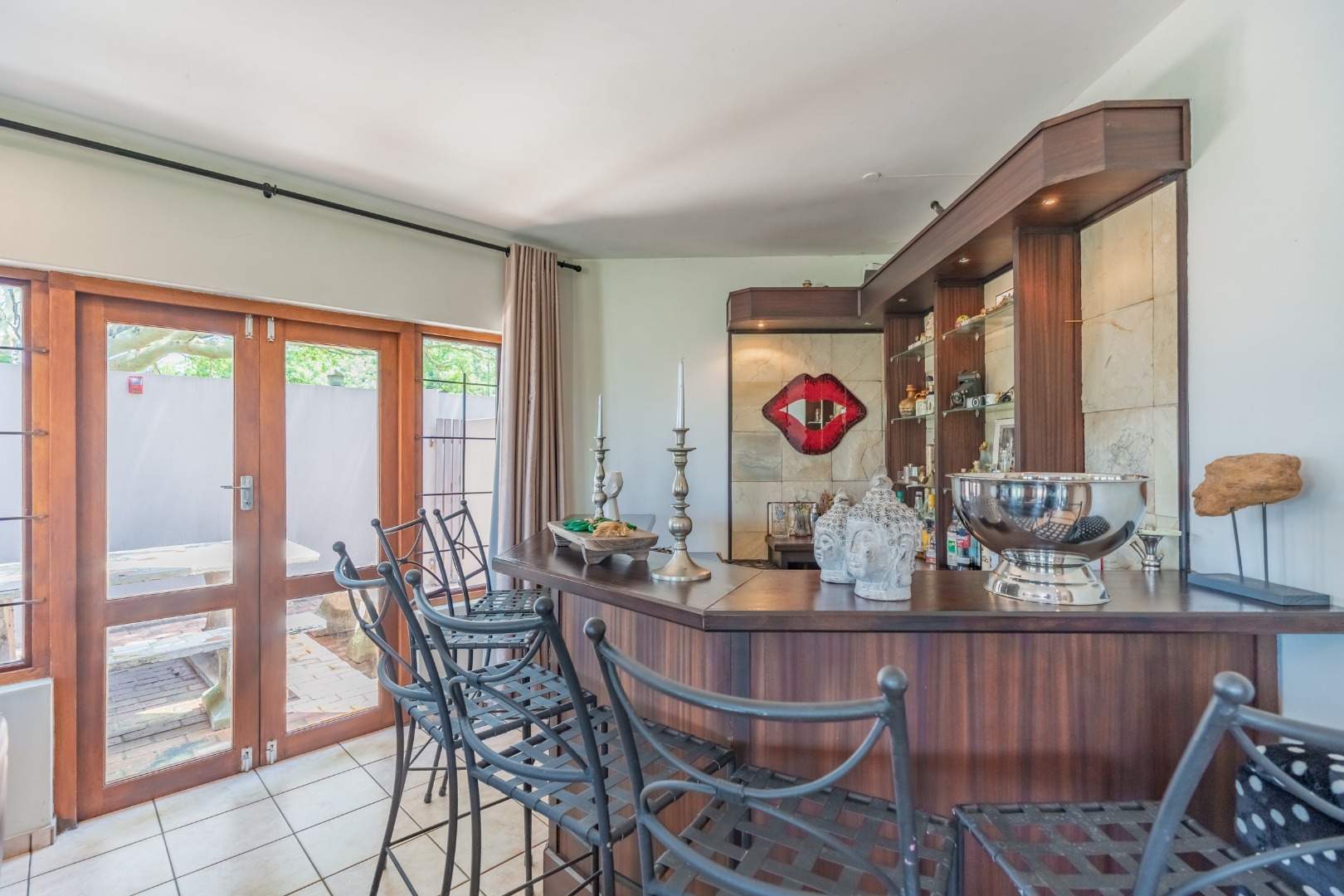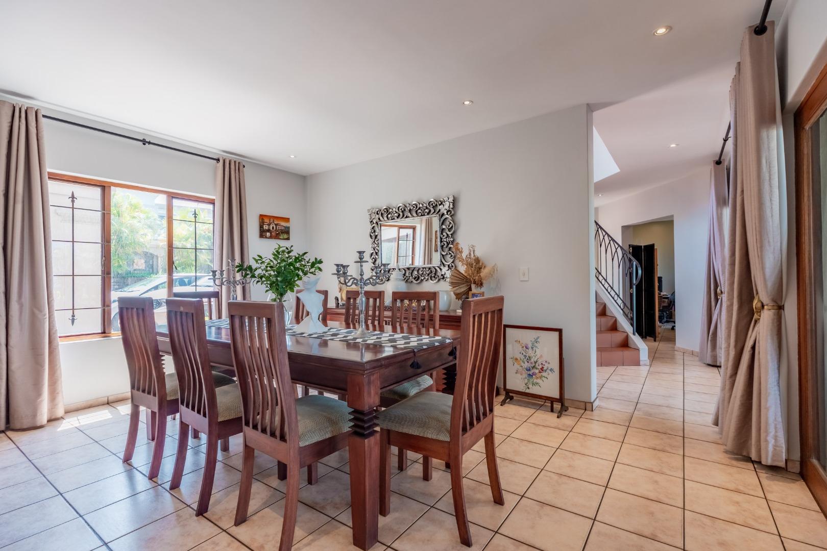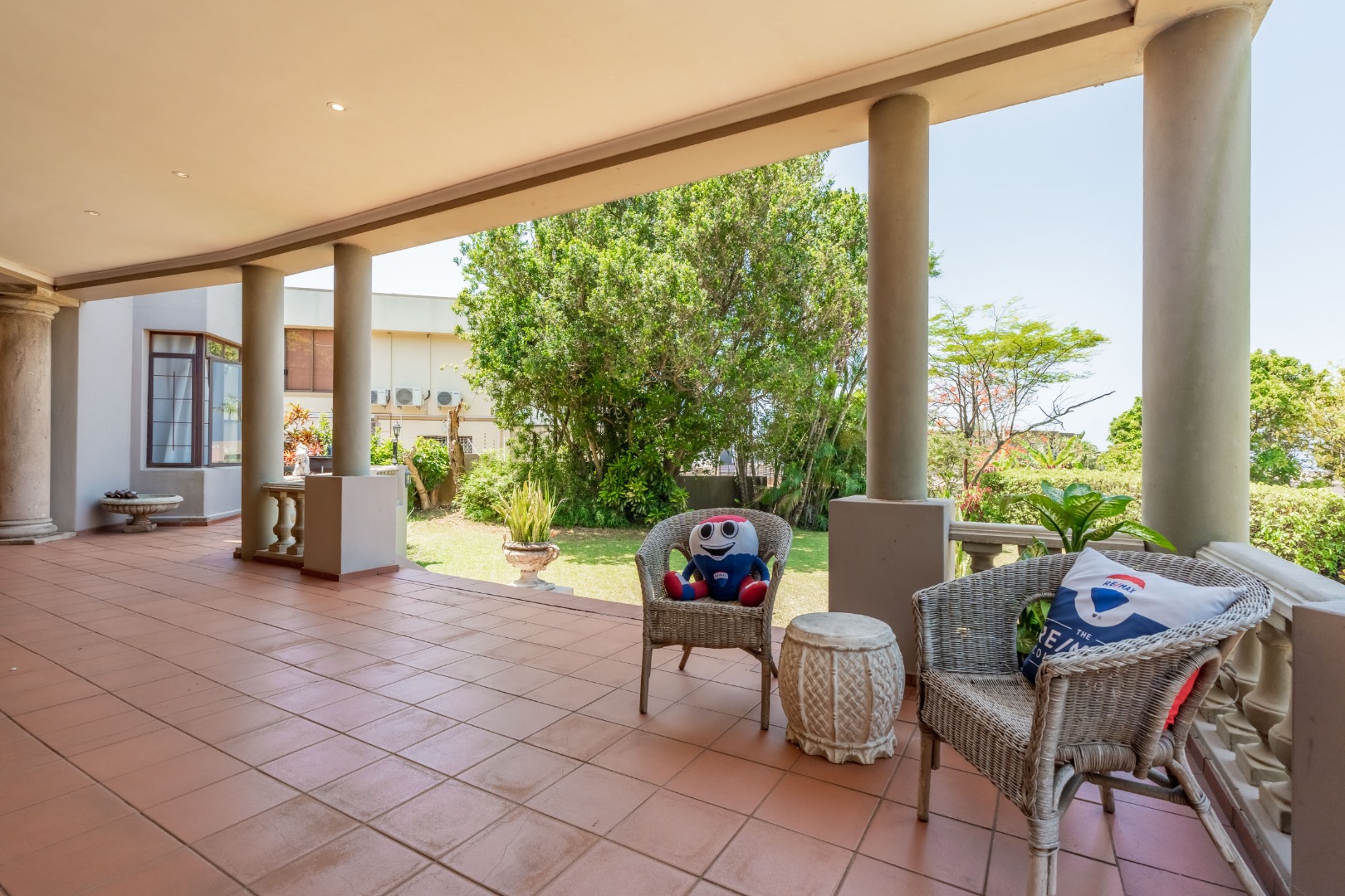 Discover this impressive four-bedroom, three-bathroom residence, perfectly situated in the sought-after suburban area of Umhlanga Rocks. The property immediately captivates with its strong kerb appeal, featuring a spacious brick paver driveway, a separate double garage, and a prominent Mediterranean-style entrance which leads to a grand double-volume entrance hall, setting a sophisticated tone for the home.