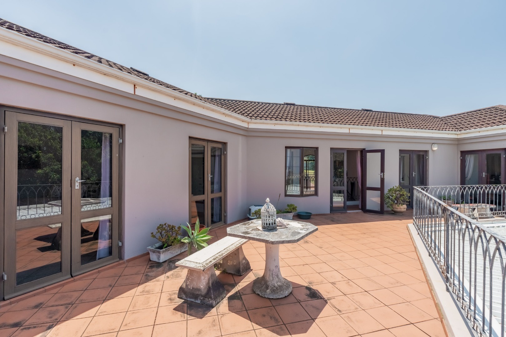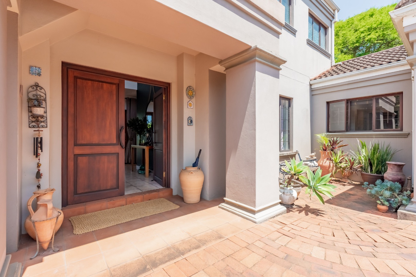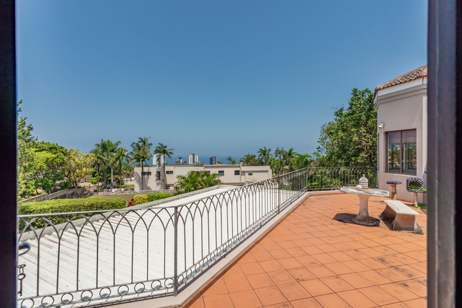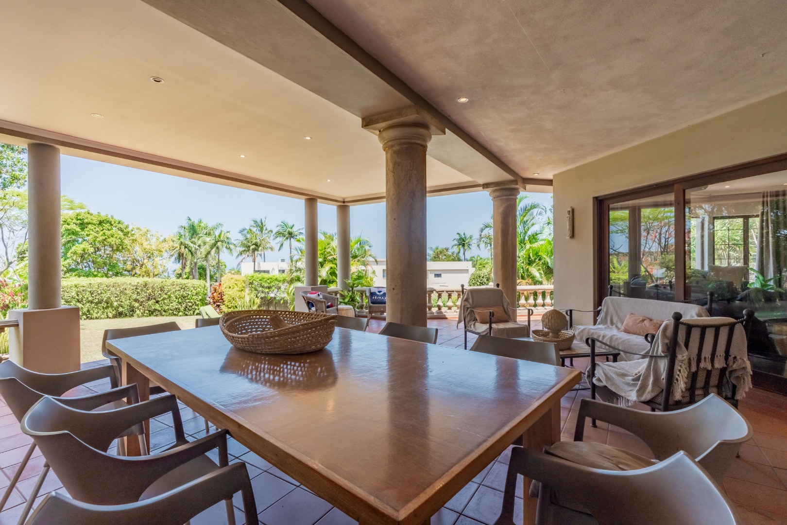 Discover this impressive four-bedroom, three-bathroom residence, perfectly situated in the sought-after suburban area of Umhlanga Rocks. The property immediately captivates with its strong kerb appeal, featuring a spacious brick paver driveway, a separate double garage, and a prominent Mediterranean-style entrance which leads to a grand double-volume entrance hall, setting a sophisticated tone for the home.