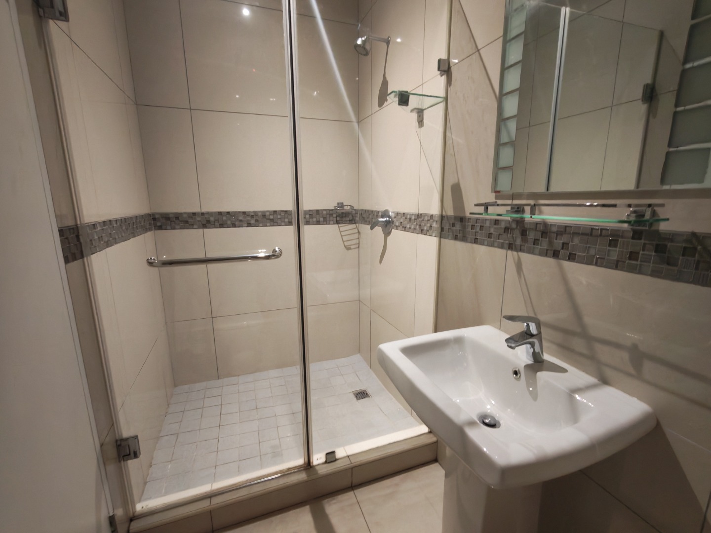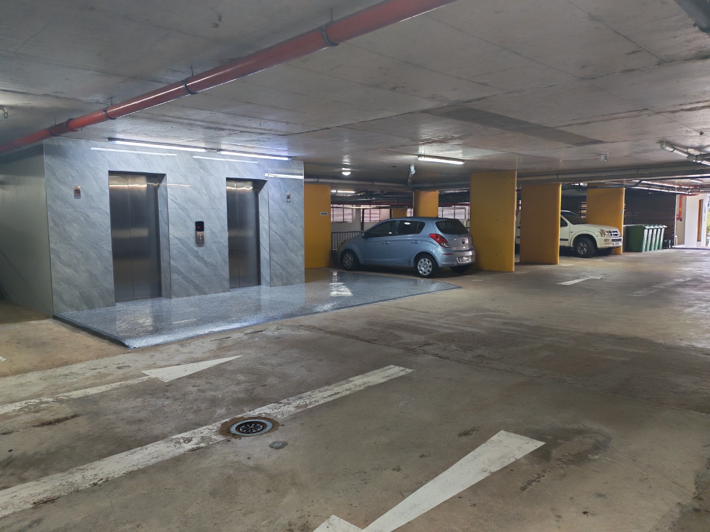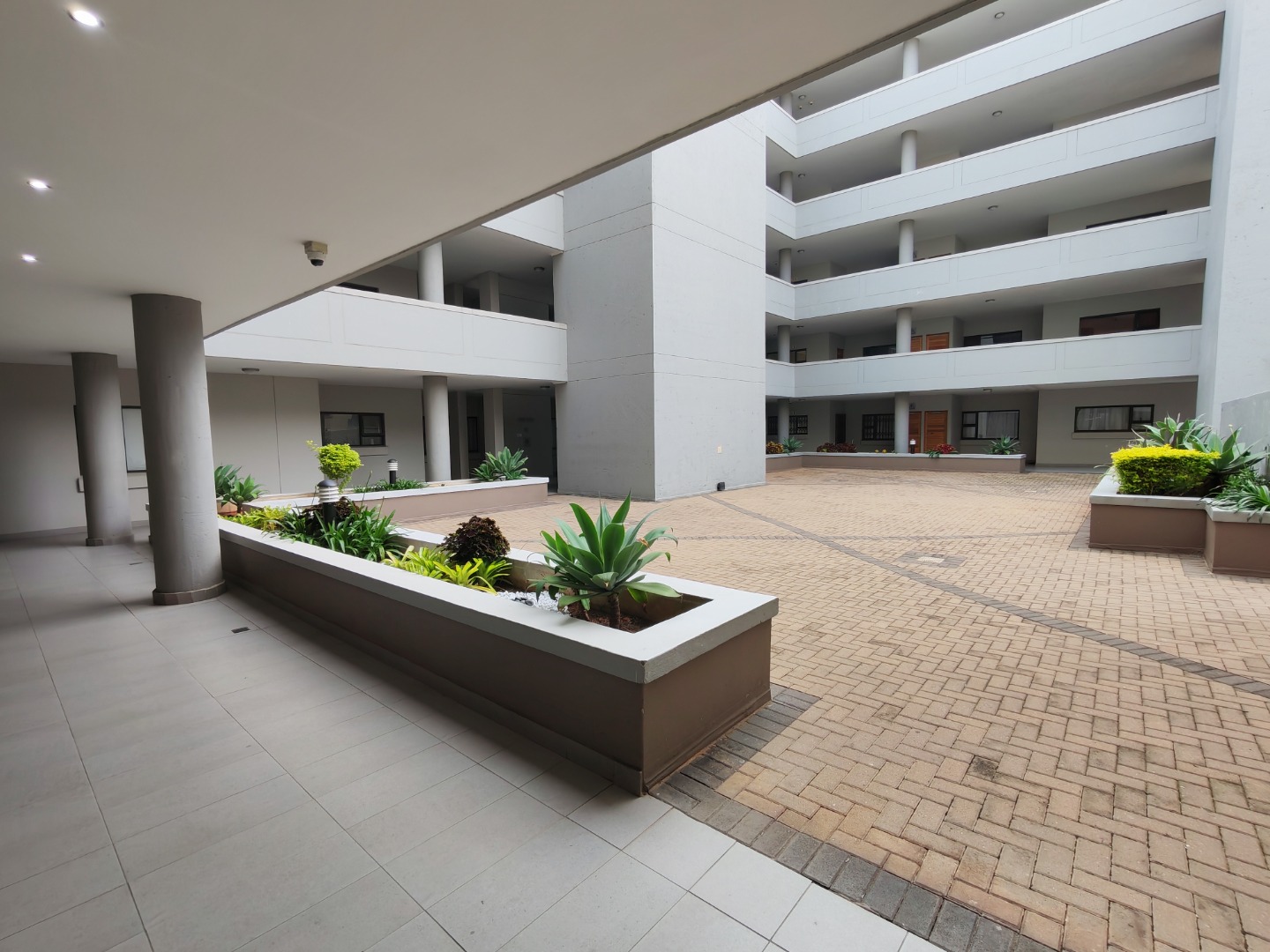 Lifestyle amenities within the complex include a modern interior courtyard with paved walkways and lush planter boxes, providing a tranquil common area. Security is paramount, with a security post, access gate, and CCTV surveillance visible in common areas, ensuring peace of mind for residents. Two dedicated parking bays are included, adding to the convenience of this prime residential offering.