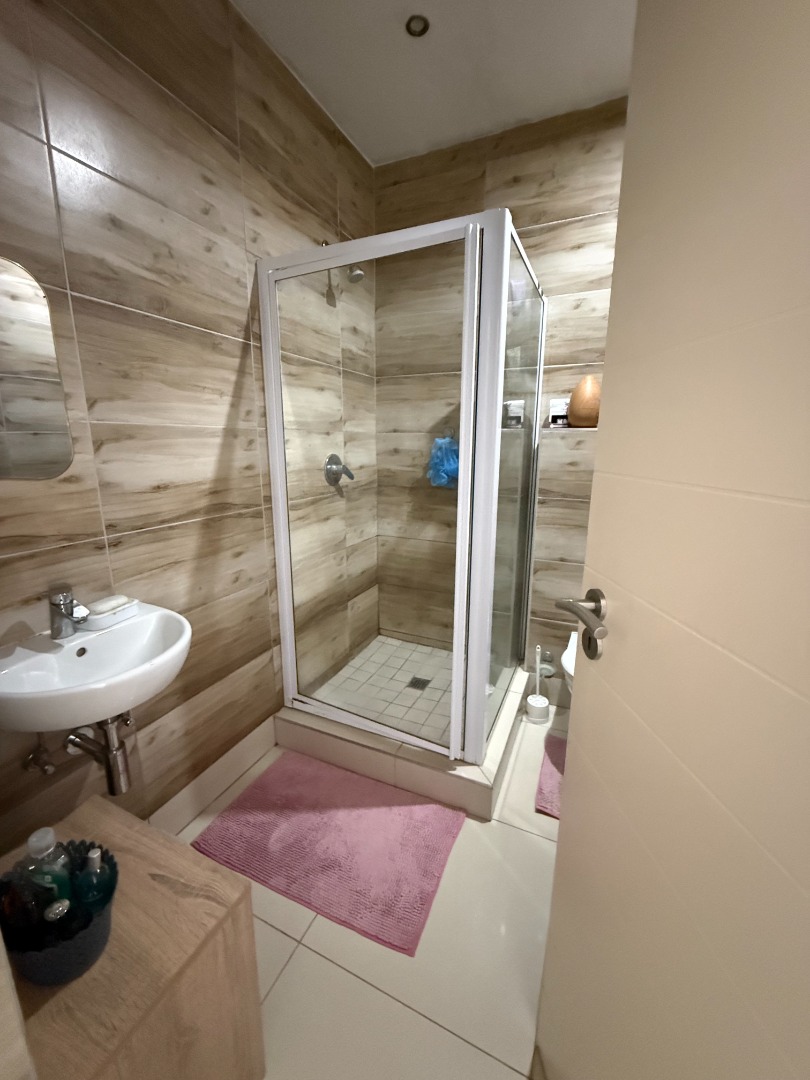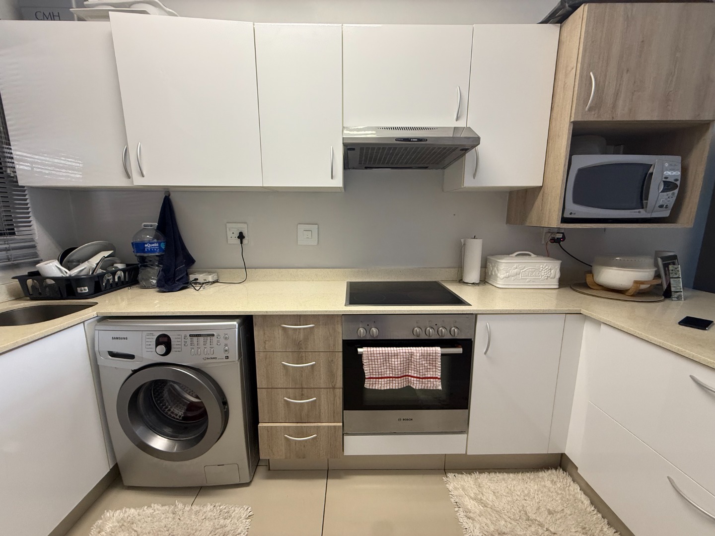 This beautifully finished 2-bedroom, 2-bathroom apartment combines comfort and style. The modern kitchen features Caesarstone countertops, polished porcelain tiles, a glass-top stove with extractor, and a breakfast nook with stools. The open-plan living area flows effortlessly onto a private balcony with inland views — ideal for relaxing or entertaining.