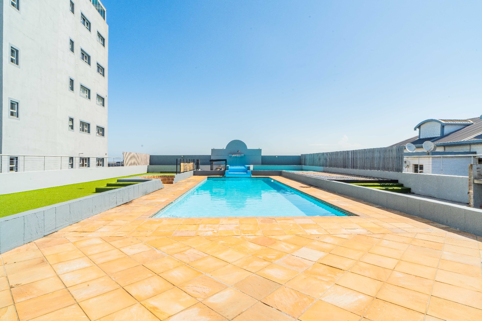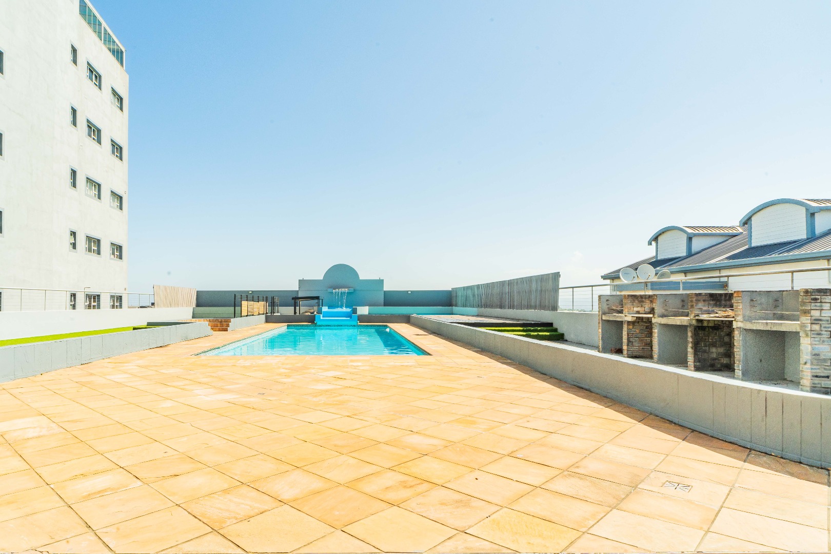Enjoy the best of indoor-outdoor living with an expansive balcony accessible via large glass doors, offering a perfect spot for relaxation. Residents benefit from access to a communal pool and braai area, ideal for leisure and social gatherings. Parking is well catered for with a double garage and an additional parking space. The property also features lifts and is wheelchair friendly, ensuring accessibility for all.
