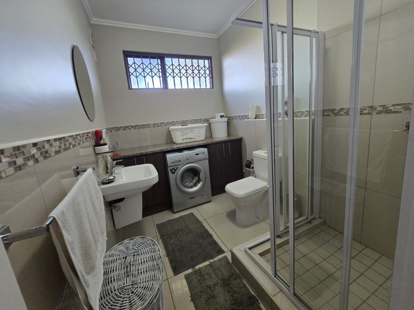 Full family bathroom with space for a laundry area