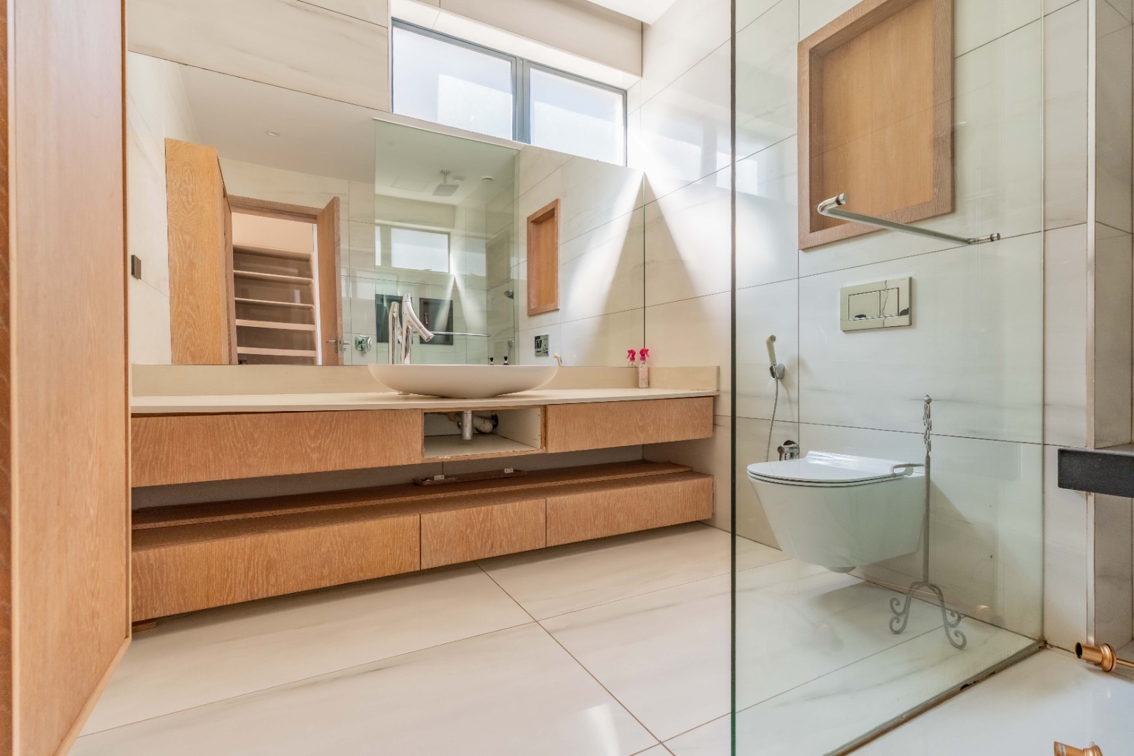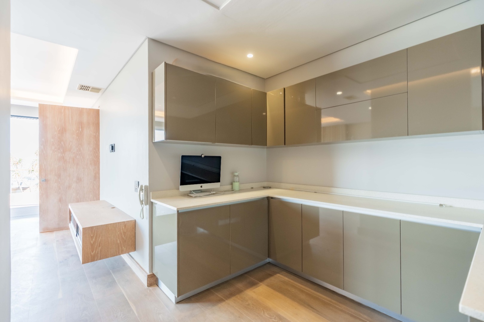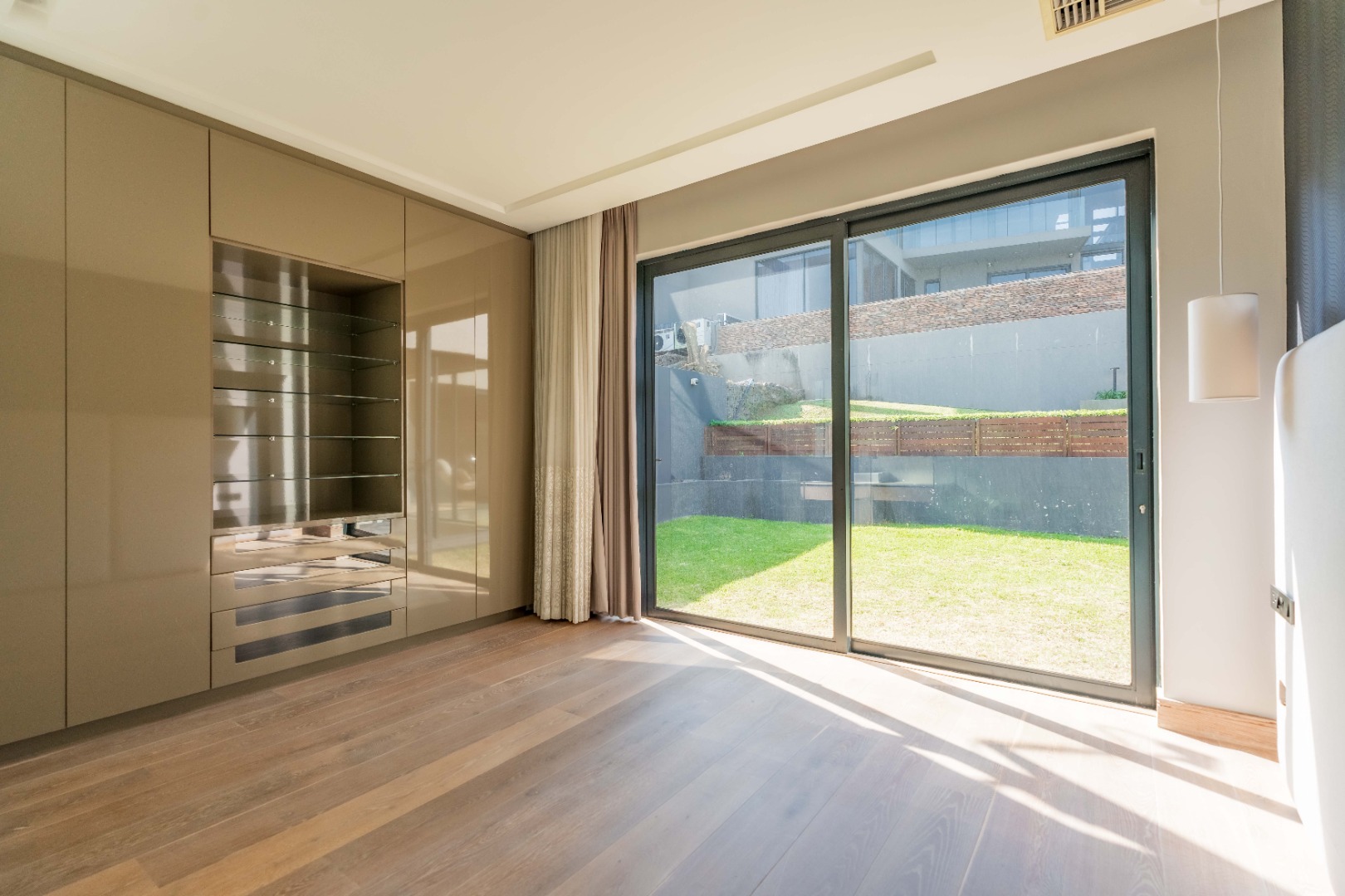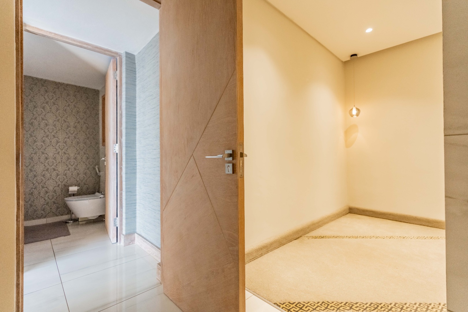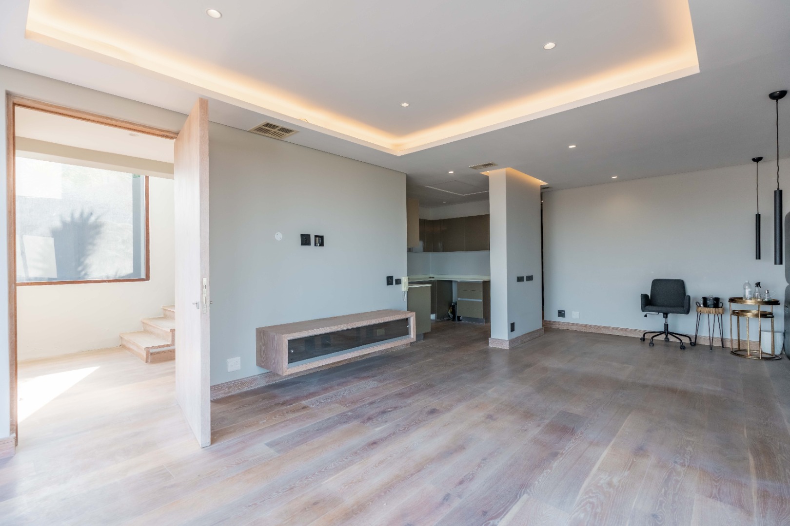 The entry level is devoted to a fully self-contained, private flatlet — an impeccably appointed suite with its own entrance, offering the ideal retreat for discerning guests, extended family, or a luxurious executive work space.