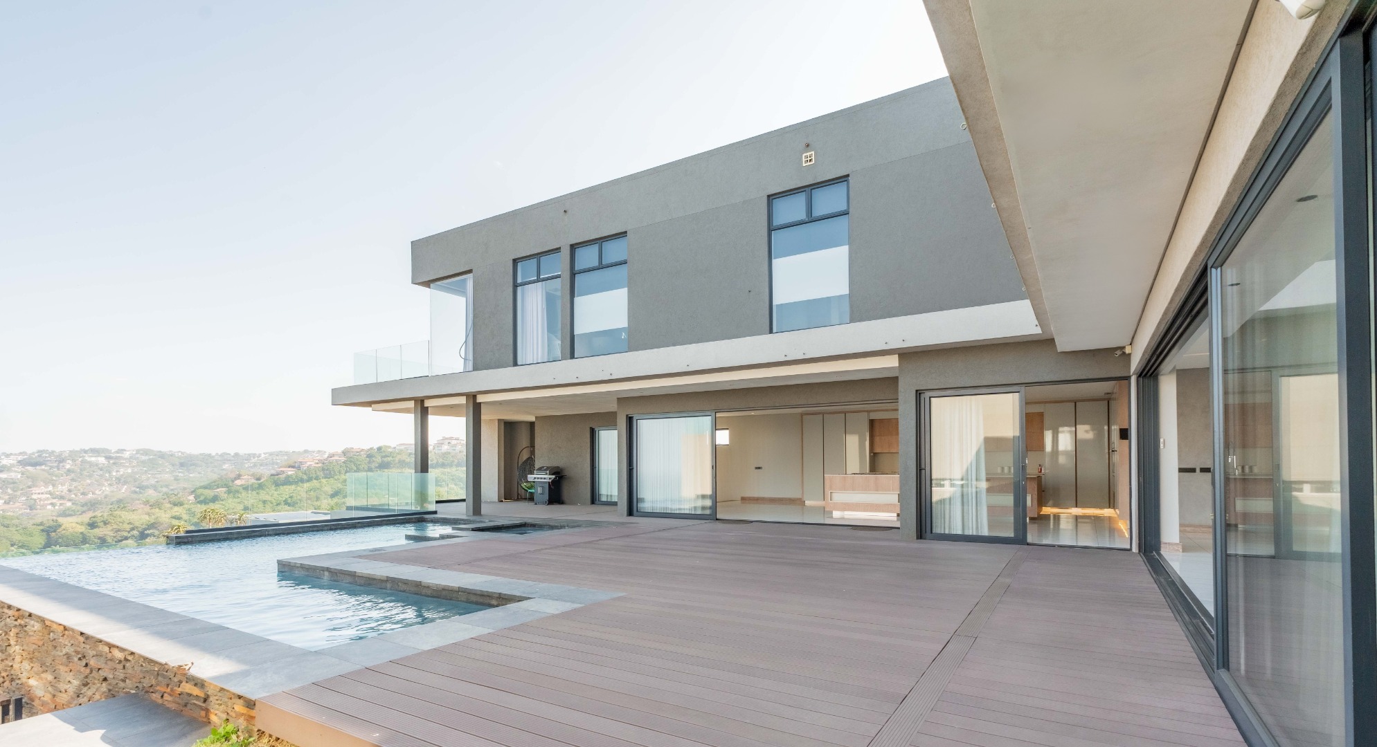 Step into a world where architectural mastery meets uncompromising luxury, set high above the coastline in La Lucia Ridge’s most elite address — The Executive. This Gated Estate is more than an estate, it is a private sanctuary, cocooned in a secure conservancy where manicured walkways weave through lush greenery, past a shimmering dam, and into the domain of wild antelope, exotic birdlife, and the rustle of coastal breezes.