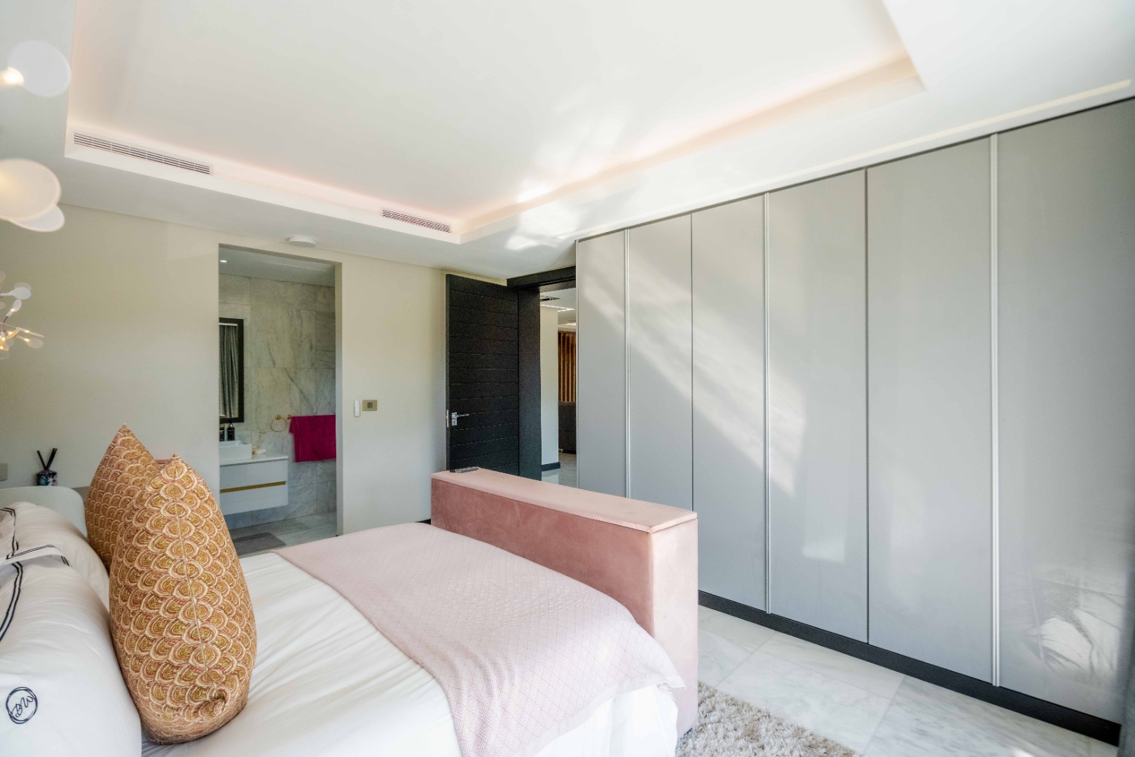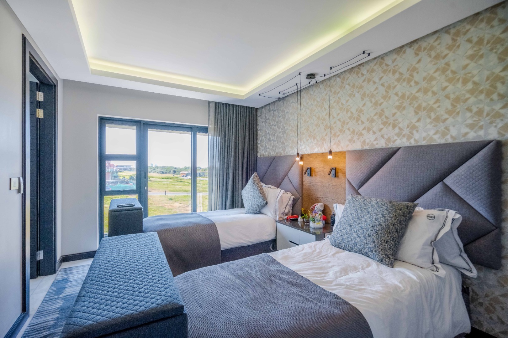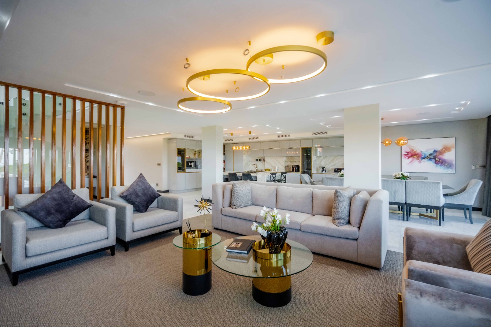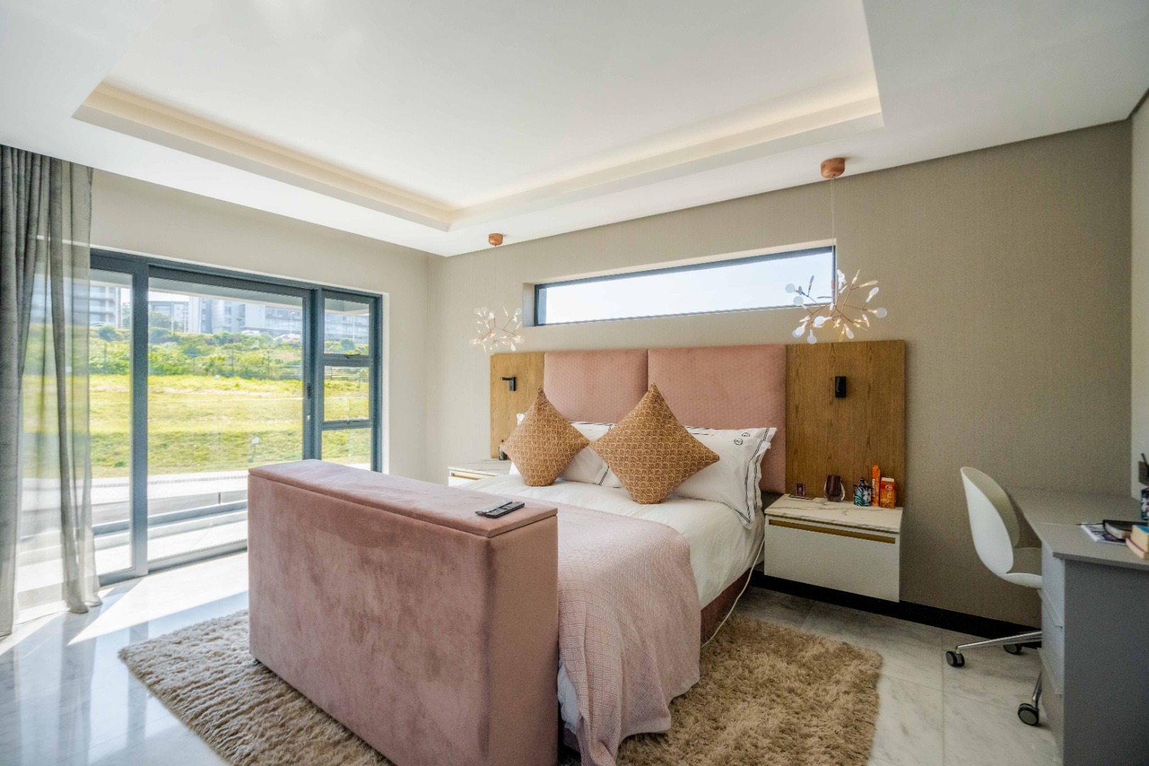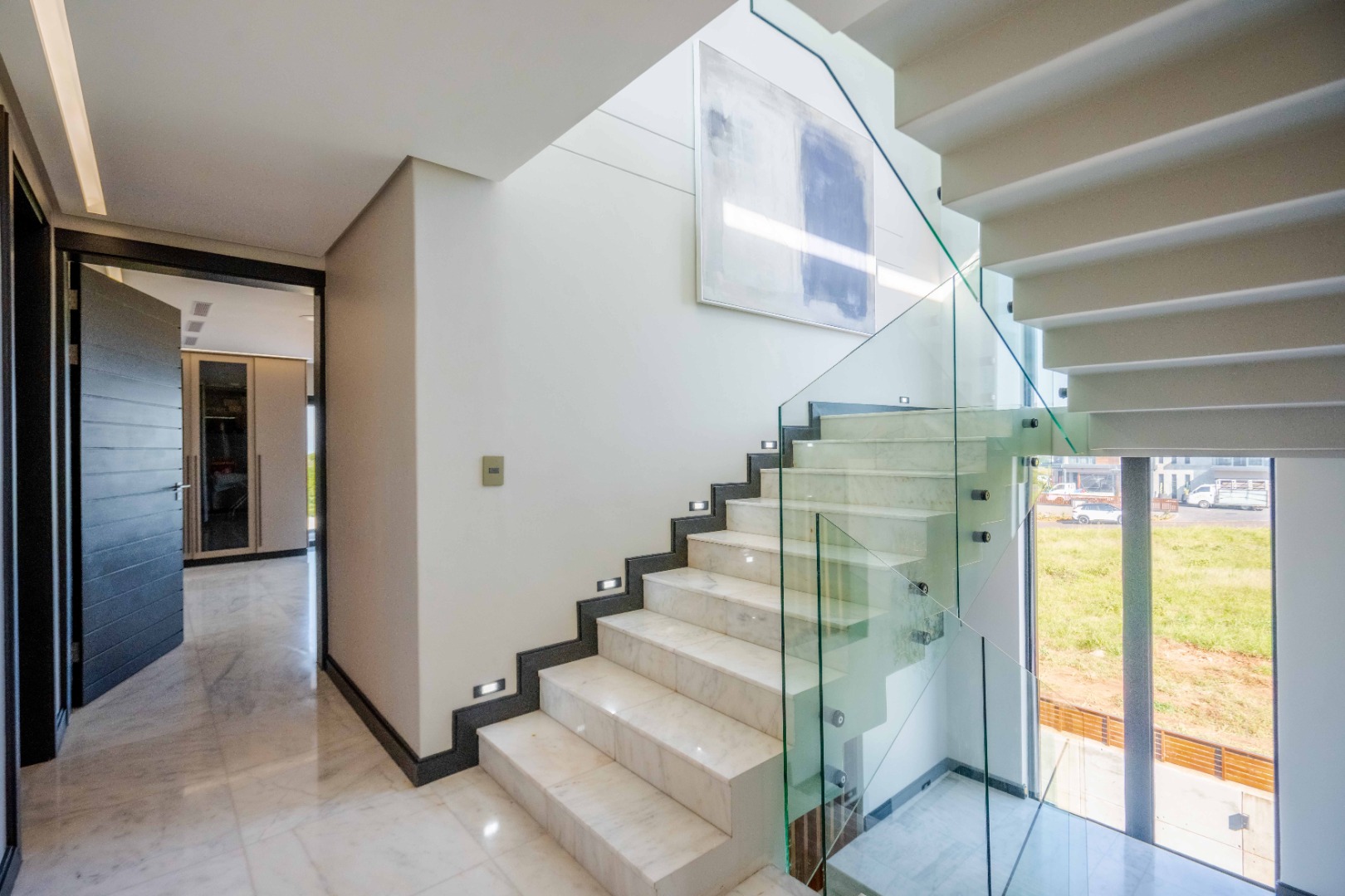 Discover an exquisite modern masterpiece, meticulously designed for opulent living and sophisticated entertaining in the prestigious Umhlanga Ridge. This multi-story residence captivates with its sleek architectural lines, a harmonious blend of grey and wood-paneled exteriors, and expansive glass elements that invite abundant natural light and frame breathtaking panoramic views, including a glimpse of the sea. A grand paved driveway leads to this contemporary sanctuary, setting an immediate tone of refined elegance. Step inside to a world of seamless luxury, where an open-concept layout effortlessly integrates living, dining, and a gourmet kitchen. Adorned with high-end finishes, including polished marble-look surfaces, bespoke cabinetry, and subtle gold accents, the interior exudes a bright and spacious ambiance. The state-of-the-art kitchen boasts a generous island and integrated appliances, perfect for culinary artistry. The residence features six lavish bedrooms, each with its own en-suite bathroom, ensuring ultimate privacy and comfort. Additional amenities include a dedicated study, a family TV room, a convenient pantry, laundry facilities, and ample storage. Embrace an unrivalled outdoor lifestyle with a private infinity pool, complete with elegant wooden decking, and a chic outdoor bar area – ideal for al fresco gatherings. The spacious patio, featuring marble tiles and glass railings, extends the living space outdoors, offering a perfect vantage point for enjoying the scenic surroundings. The property also includes staff quarters, a well-maintained garden, and air conditioning throughout, enhancing comfort and convenience. Nestled within a secure estate, this home offers peace of mind with 24-hour security, a security post, access gates, an alarm system, electric fencing, and security gates. The suburban locale of Umhlanga Ridge in Umhlanga, South Africa, provides a desirable address, combining tranquility with accessibility. Key Features: • Six en-suite bedrooms and six bathrooms • Open-plan living with panoramic and sea views • Gourmet kitchen with high-end finishes • Private infinity pool and outdoor bar • Expansive deck and patio for entertaining • Air conditioning throughout • Staff quarters and dedicated study • Secure estate living with 24-hour security • Ample parking: two garages and fifteen additional spaces