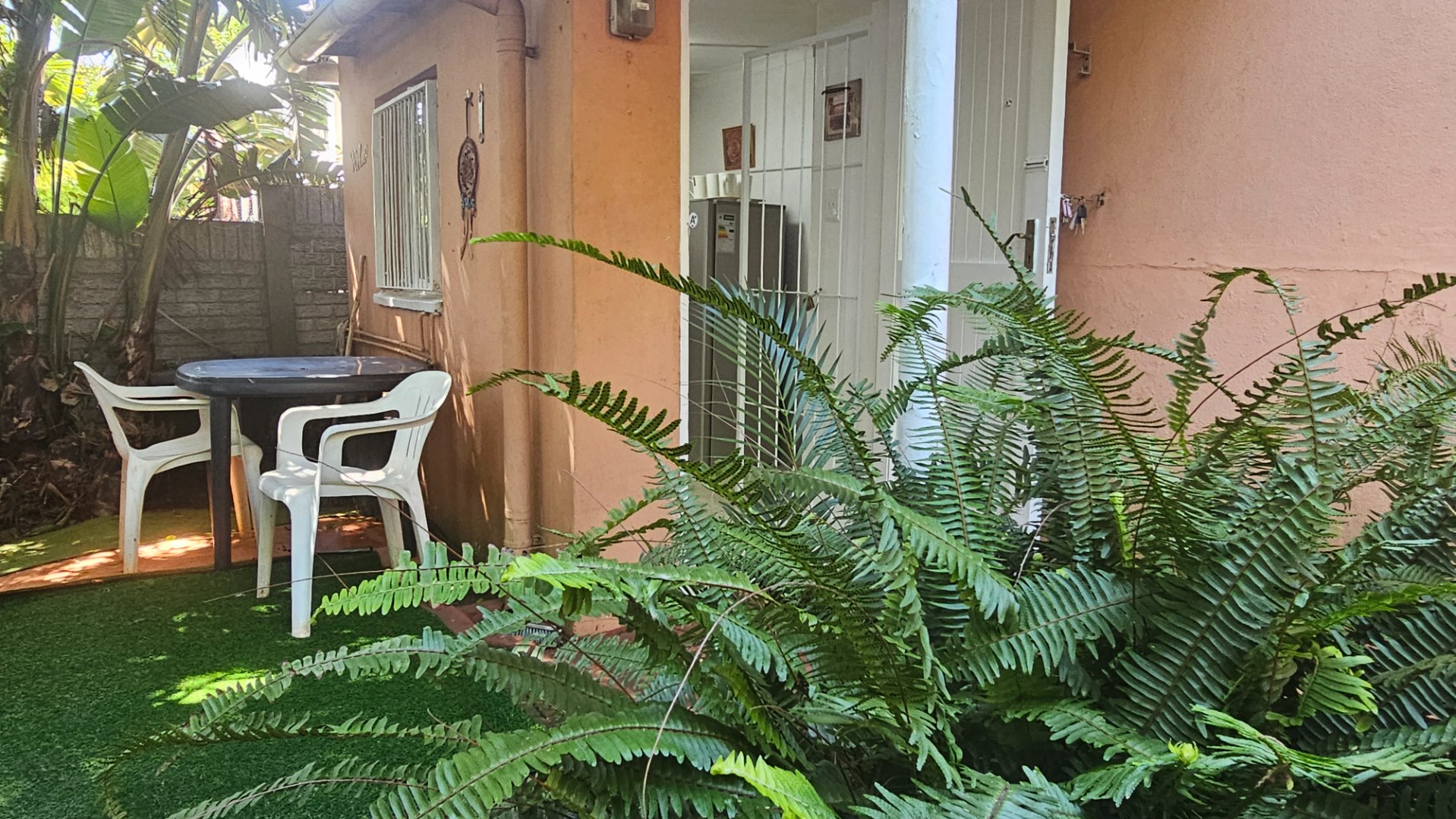 Small garden and outdoor astro -turfed patio area- for weber braai
