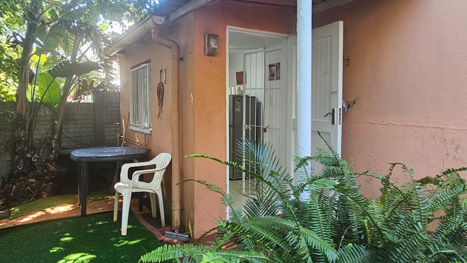 Small garden and outdoor astro -turfed patio area- for weber braai