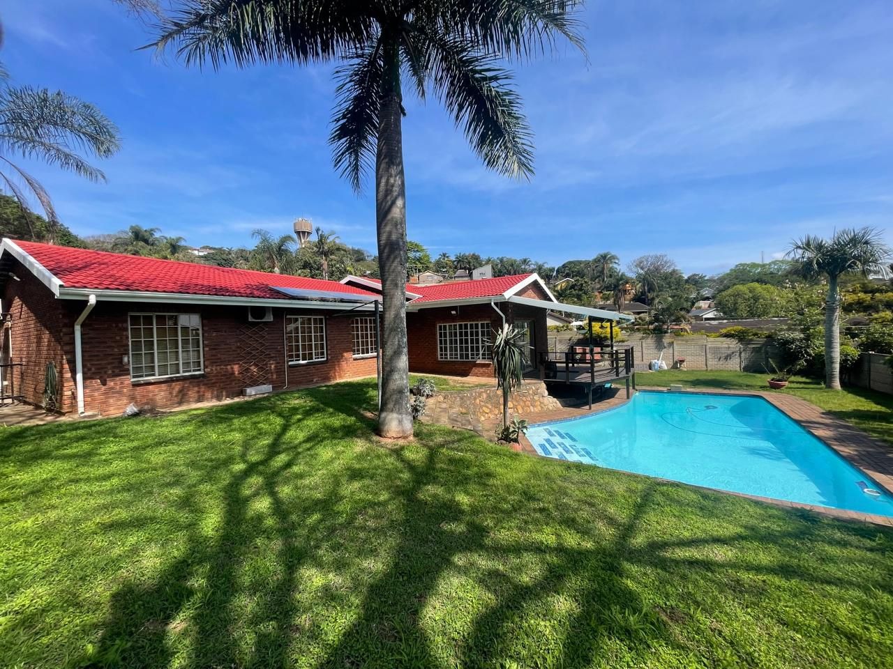 Embrace the South African sunshine with your private swimming pool, ideal for cooling off or simply relaxing. The spacious wooden deck provides a fantastic spot for outdoor entertaining, offering lovely green garden views. This pet-friendly home boasts a fully fenced garden, ensuring a safe space for your furry companions. Practicality is enhanced with staff quarters and a scenic view to enjoy.