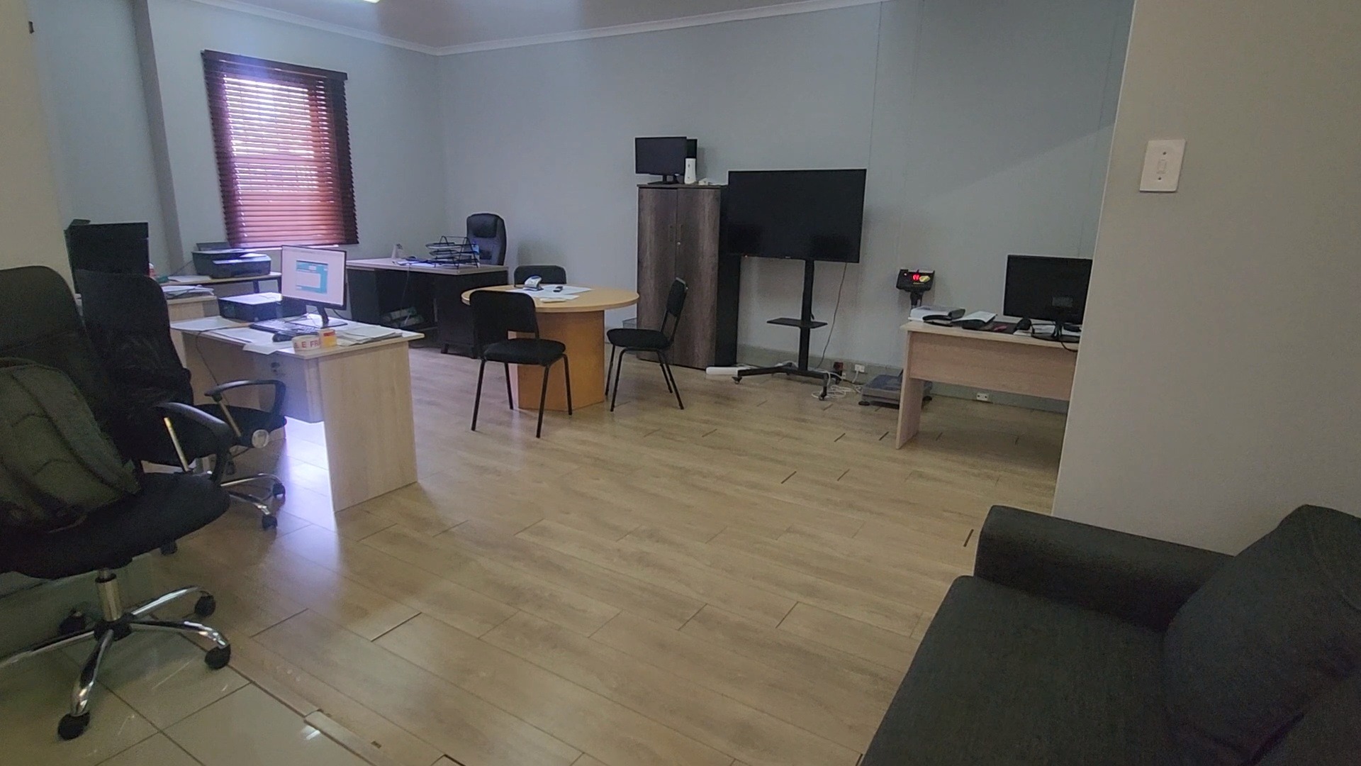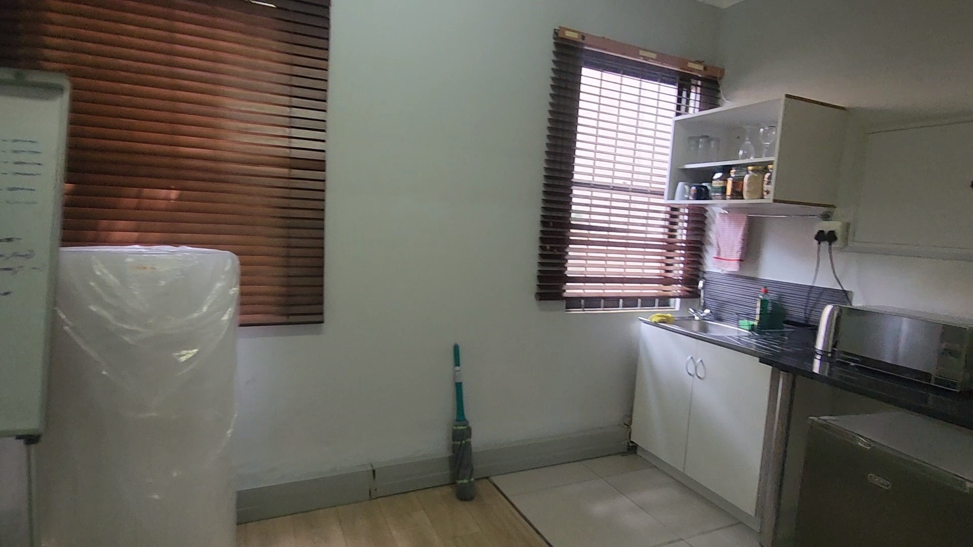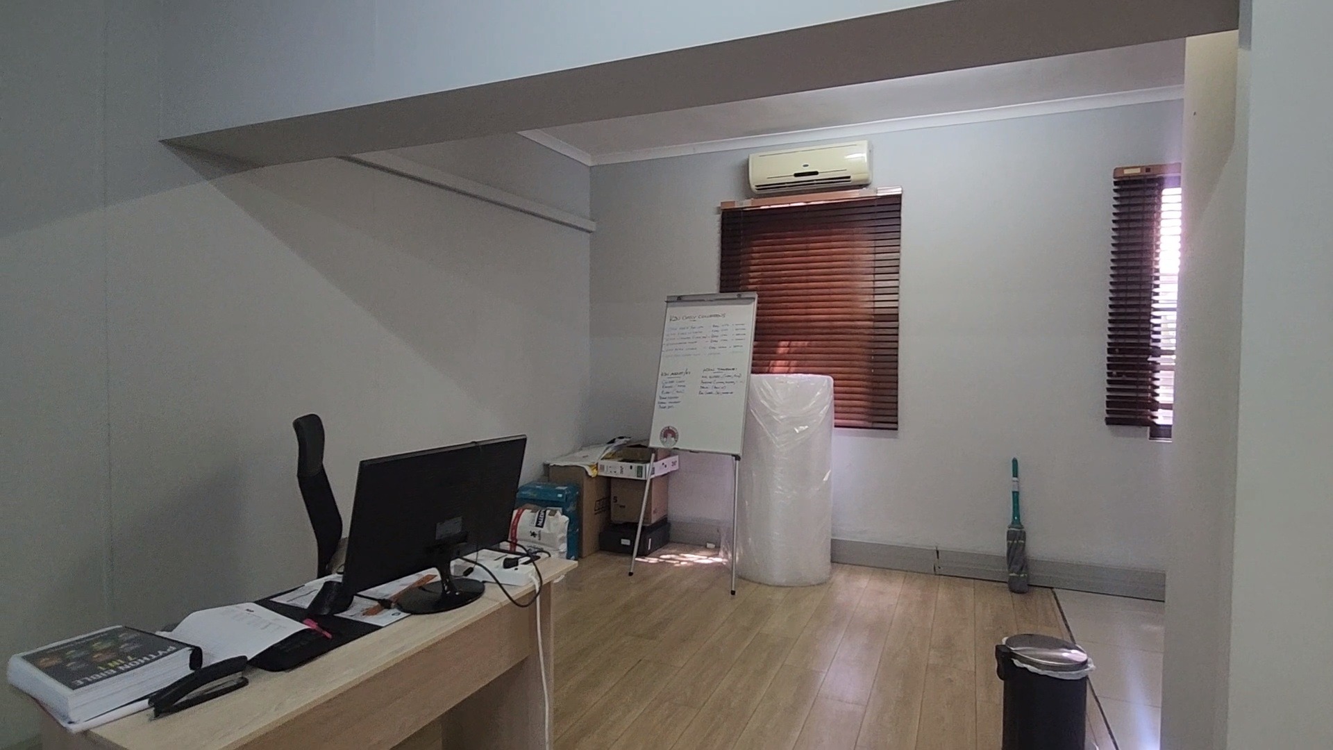 The unit consists of an open plan work space that can fit a reception desk and 3 or 4 other desks with its own kitchenette. Thisunit is ideal for a small company looking for modern offices in a smart building. The unit is situated on the ground floor with shared ablutions .