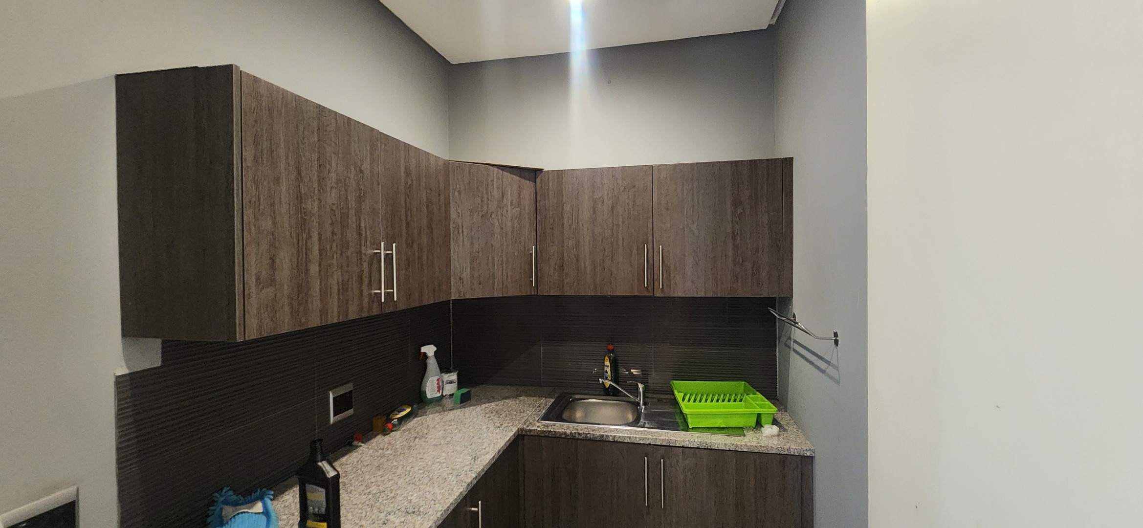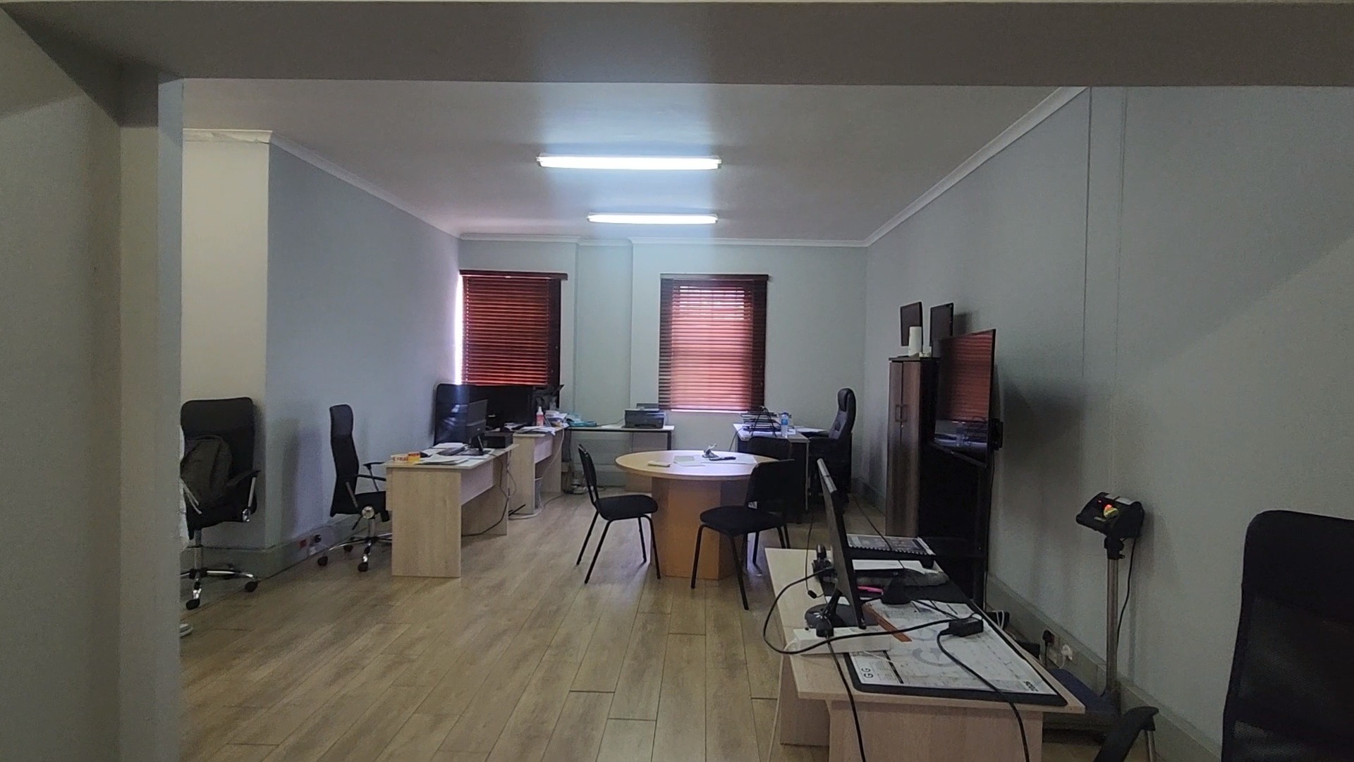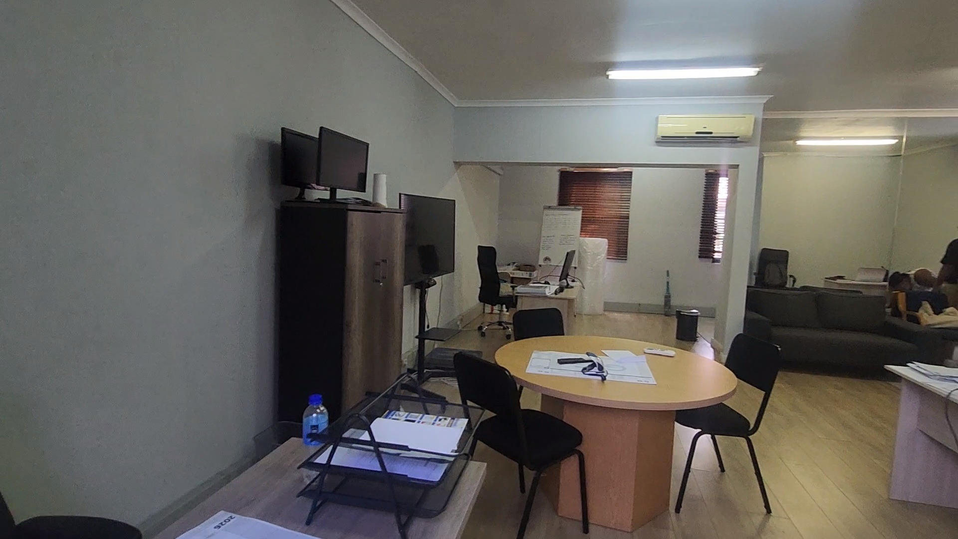 The unit consists of an open plan work space that can fit a reception desk and 3 or 4 other desks with its own kitchenette. Thisunit is ideal for a small company looking for modern offices in a smart building. The unit is situated on the ground floor with shared ablutions .