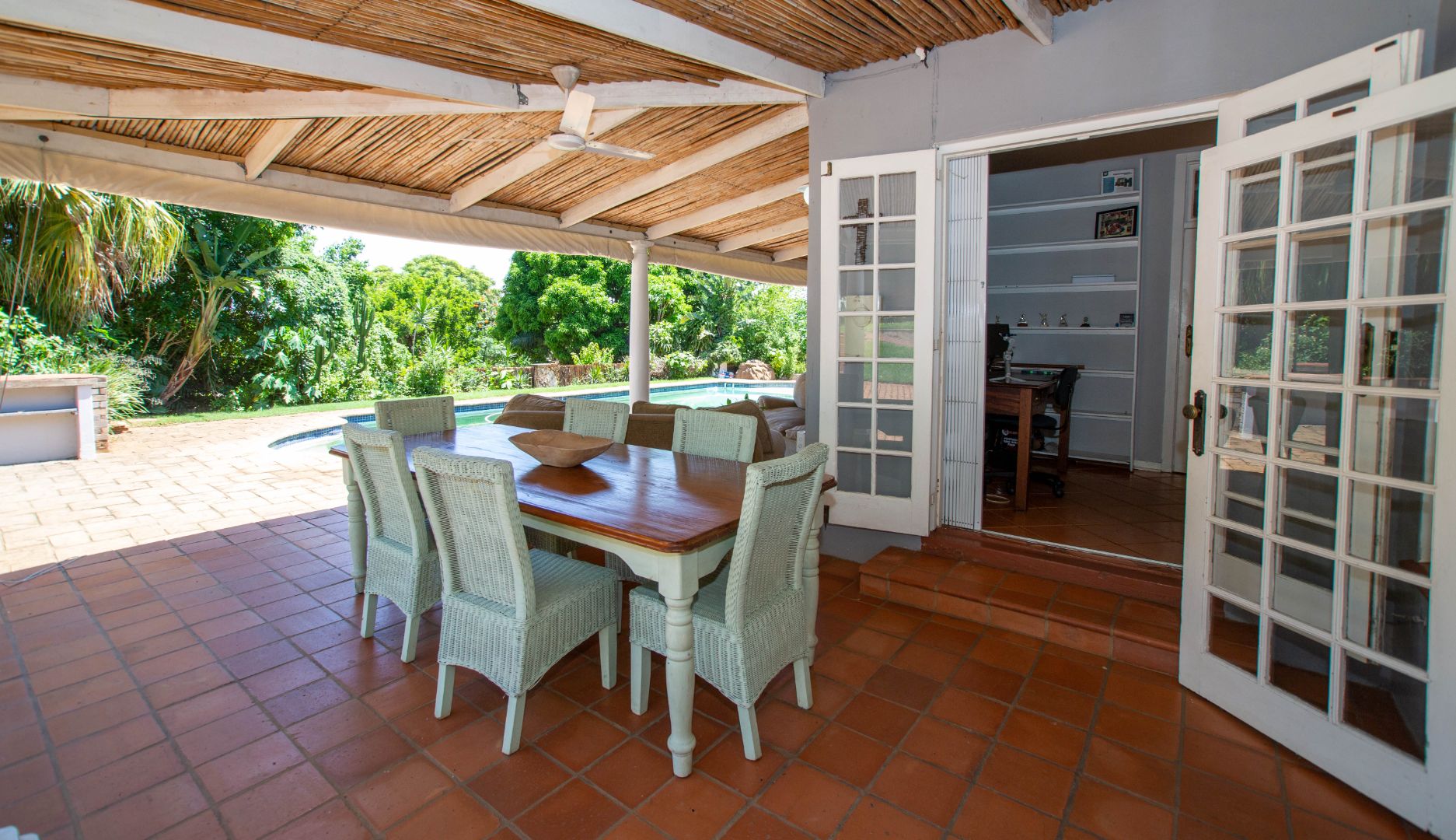 A beautiful family home with large spacious rooms and high ceilings, a traditional Durban North home close to all amenities with the feeling of being in the Midlands with the lush garden surrounding the property.