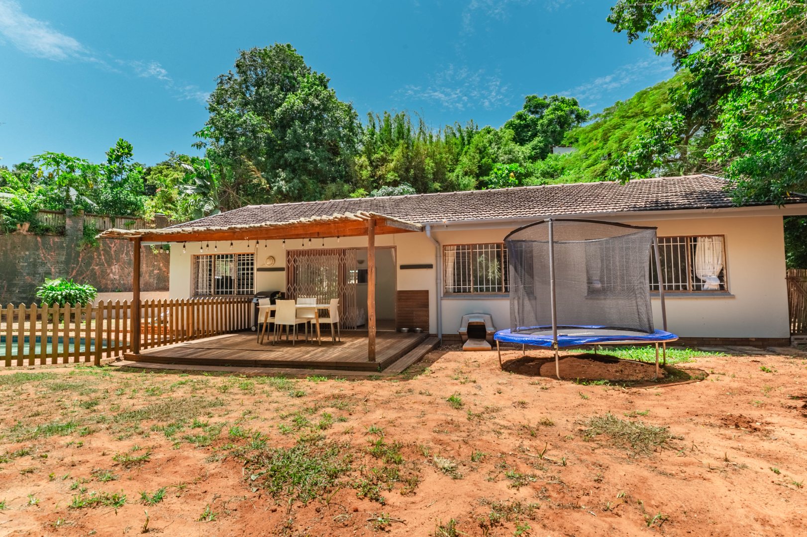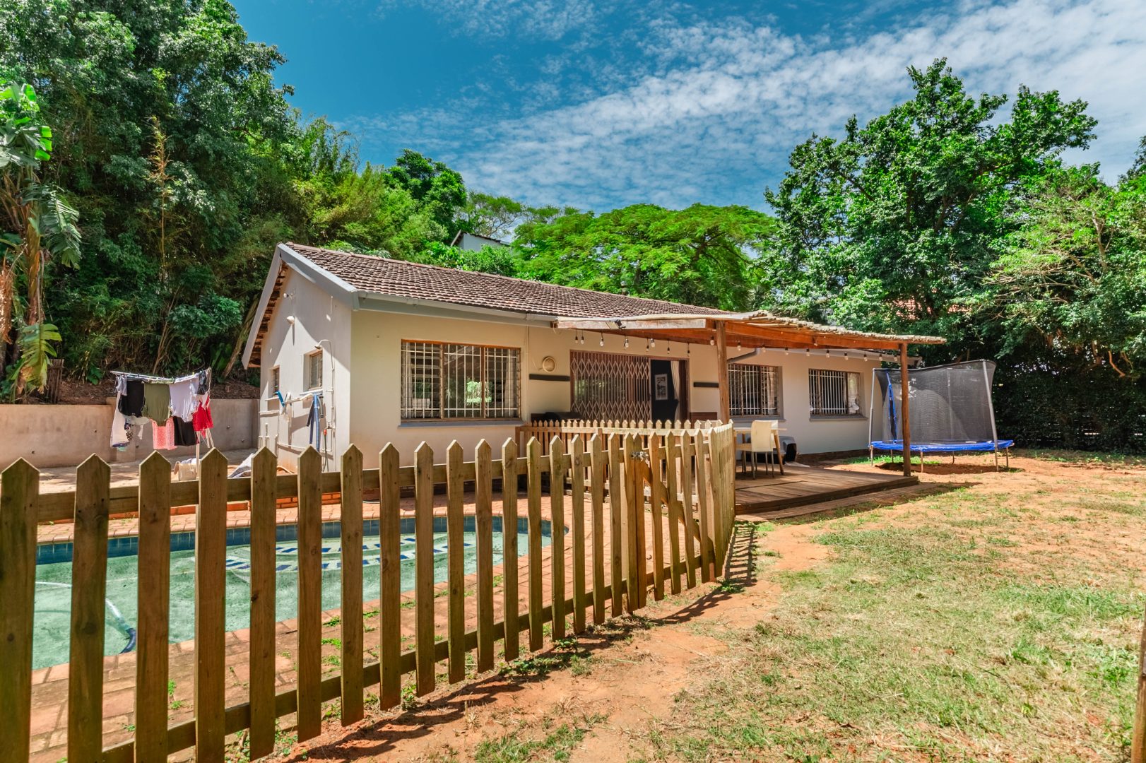 The outdoor space is equally inviting, with a pretty tropical garden and a lovely swimming pool creating a peaceful retreat for relaxation or entertaining. Surrounded by neighbouring homes in a setting that feels like a small community enclave — similar to a cul-de-sac but with through access — the property enjoys both privacy and a welcoming neighbourhood atmosphere.