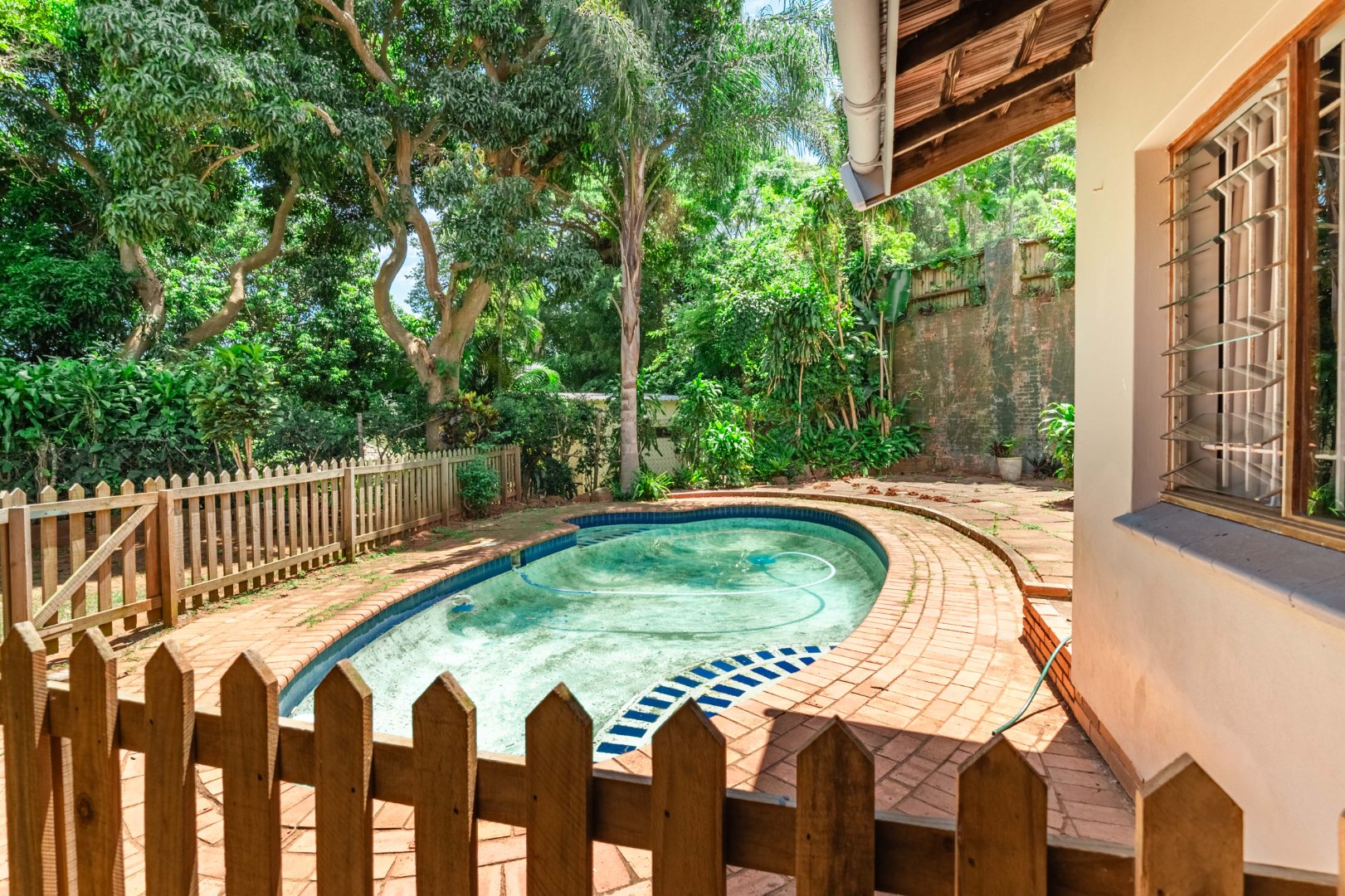 The outdoor space is equally inviting, with a pretty tropical garden and a lovely swimming pool creating a peaceful retreat for relaxation or entertaining. Surrounded by neighbouring homes in a setting that feels like a small community enclave — similar to a cul-de-sac but with through access — the property enjoys both privacy and a welcoming neighbourhood atmosphere.