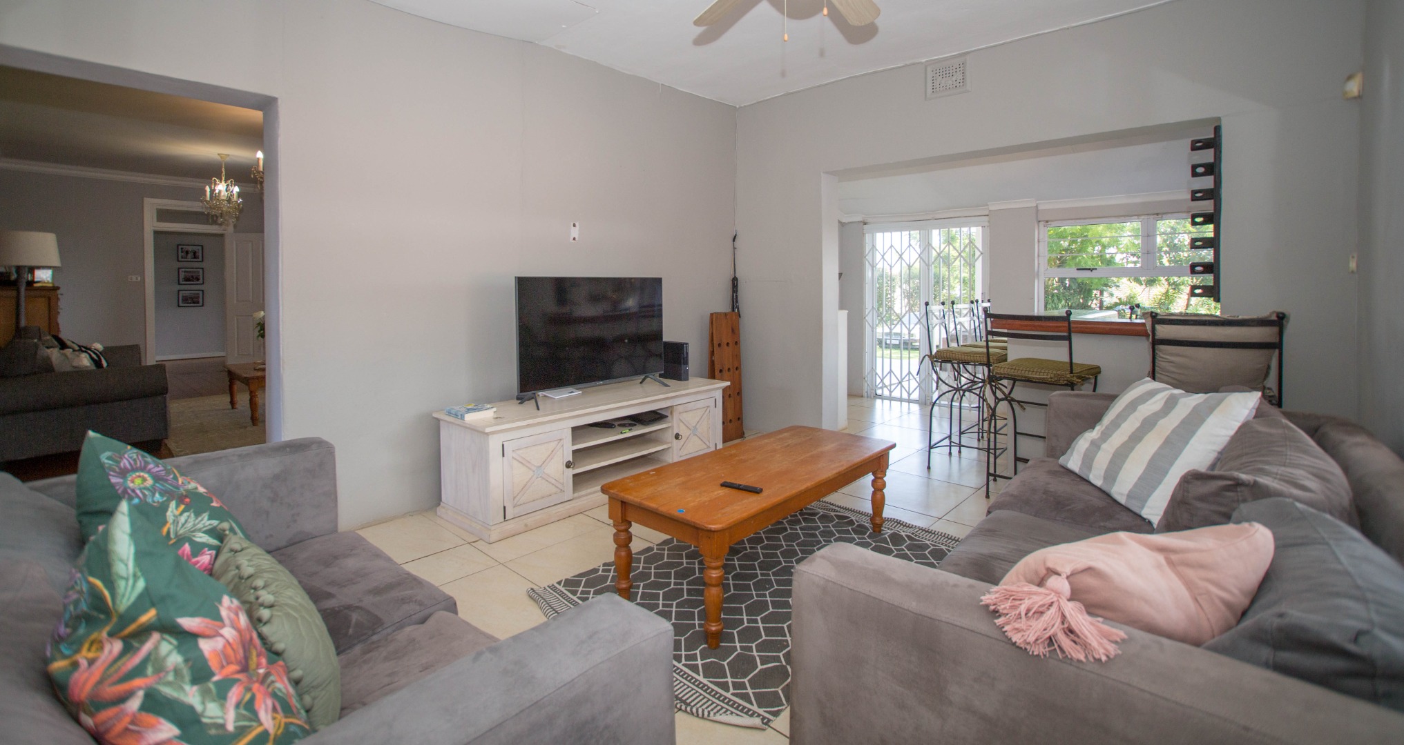 There are 3 reception rooms, bar area, and stack doors which open out onto a large undercover patio. The kitchen is spacious and has a built in tucked away laundry area and back door which opens onto the pool area. Bonus of a 1 bedroom flatlet with outdoor area.