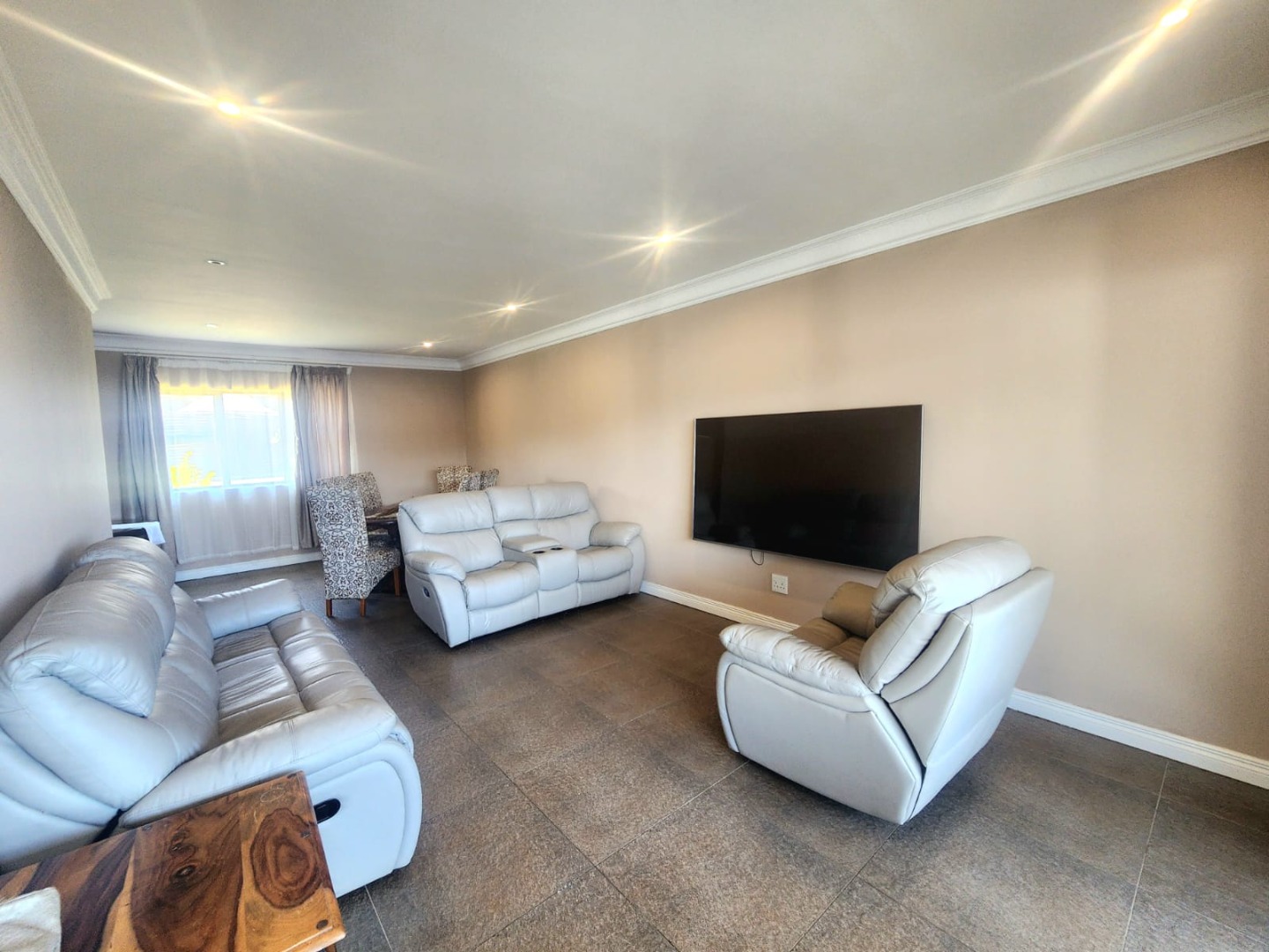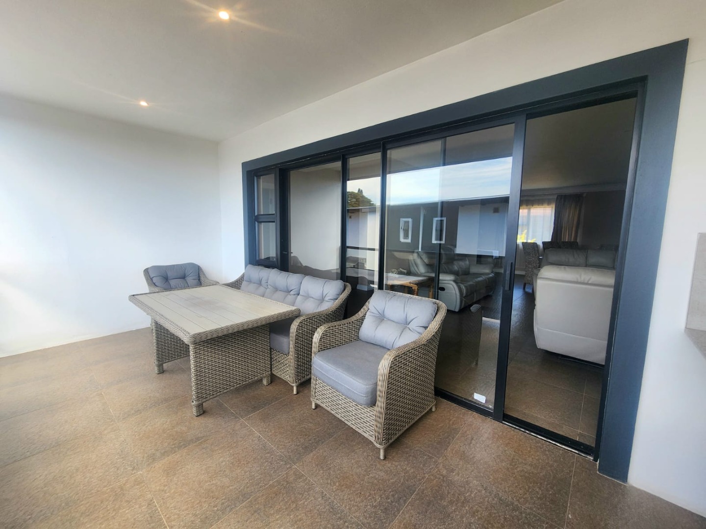 Dining and lounge area leads onto spacious balcony with sea views.