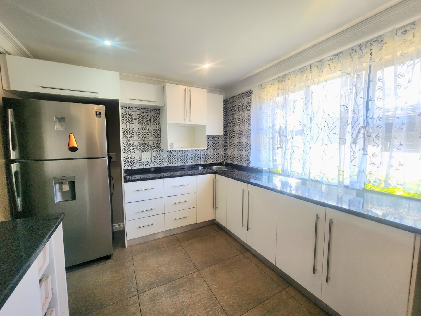 Three spacious bedrooms with en suites, the house is tiled throughout, it has a small garden and a kitchen and laundromat.