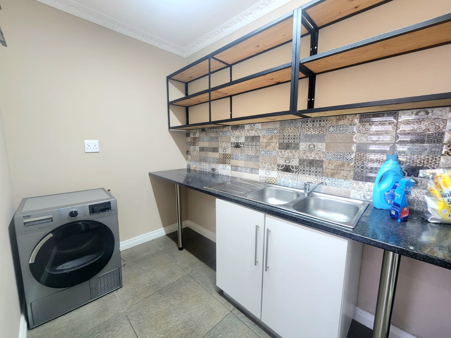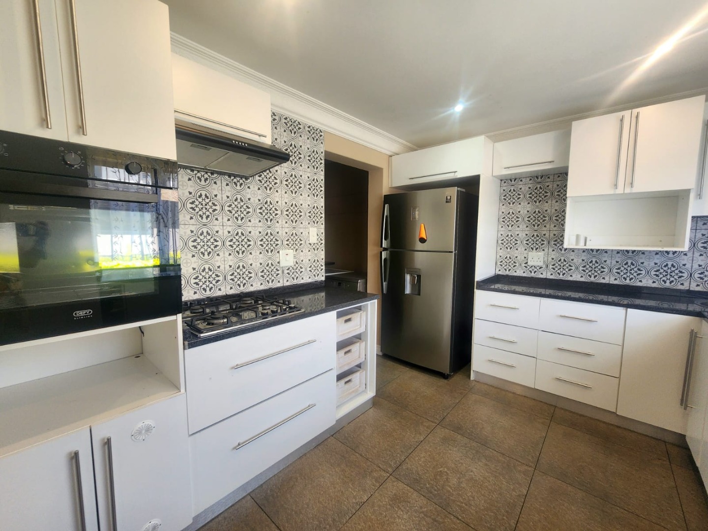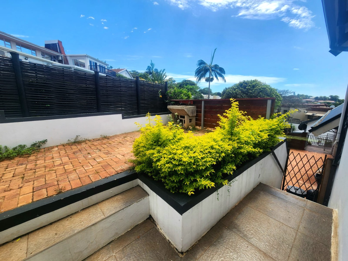 Three spacious bedrooms with en suites, the house is tiled throughout, it has a small garden and a kitchen and laundromat.