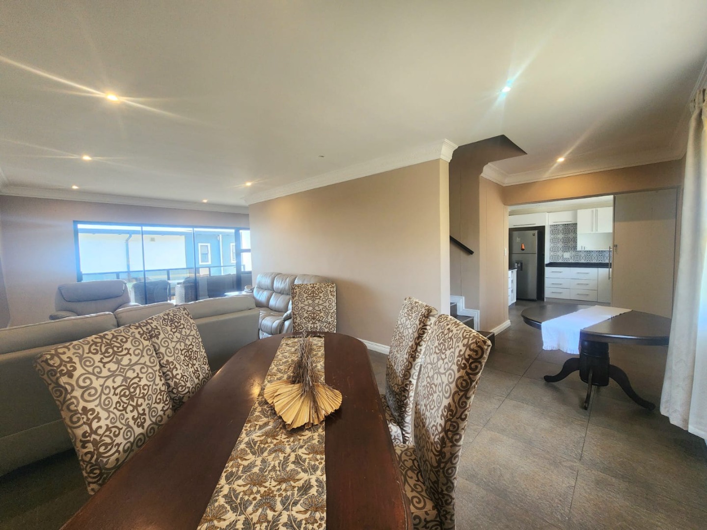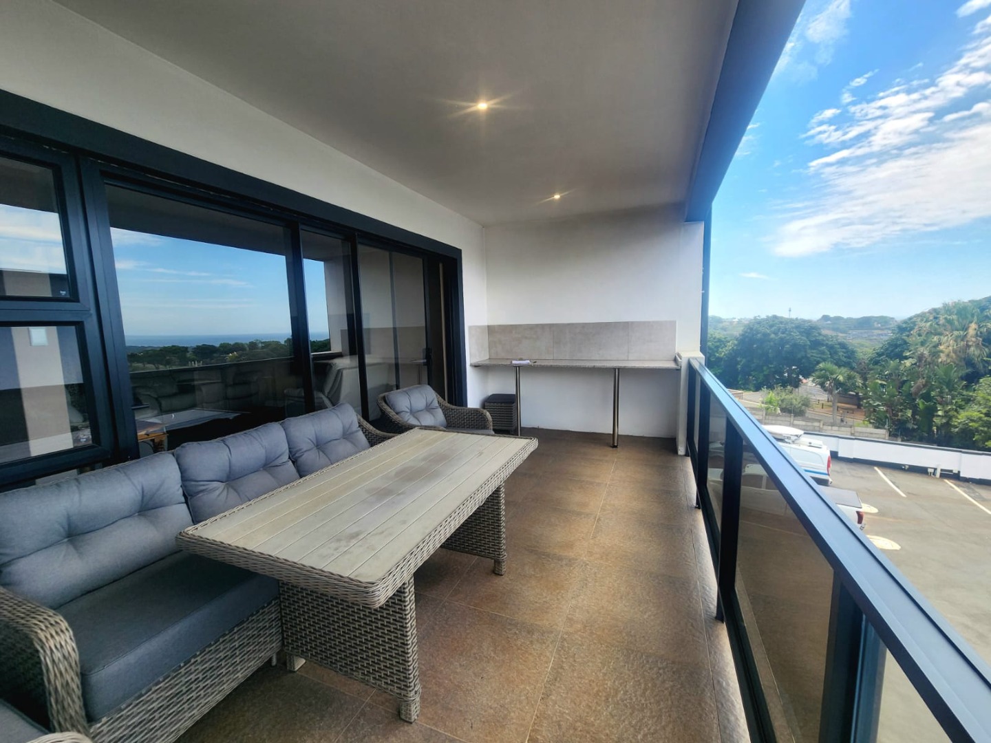 Dining and lounge area leads onto spacious balcony with sea views.