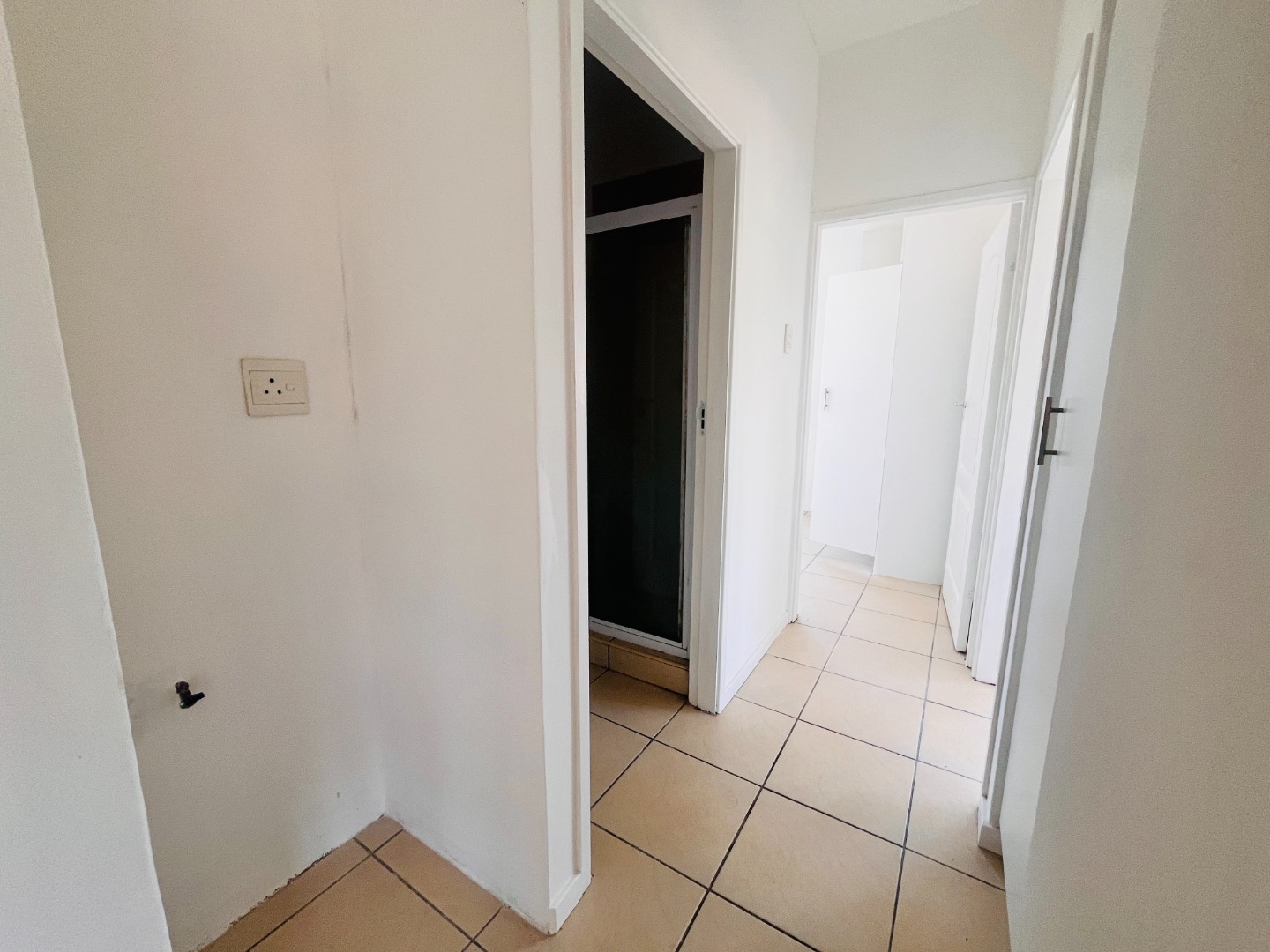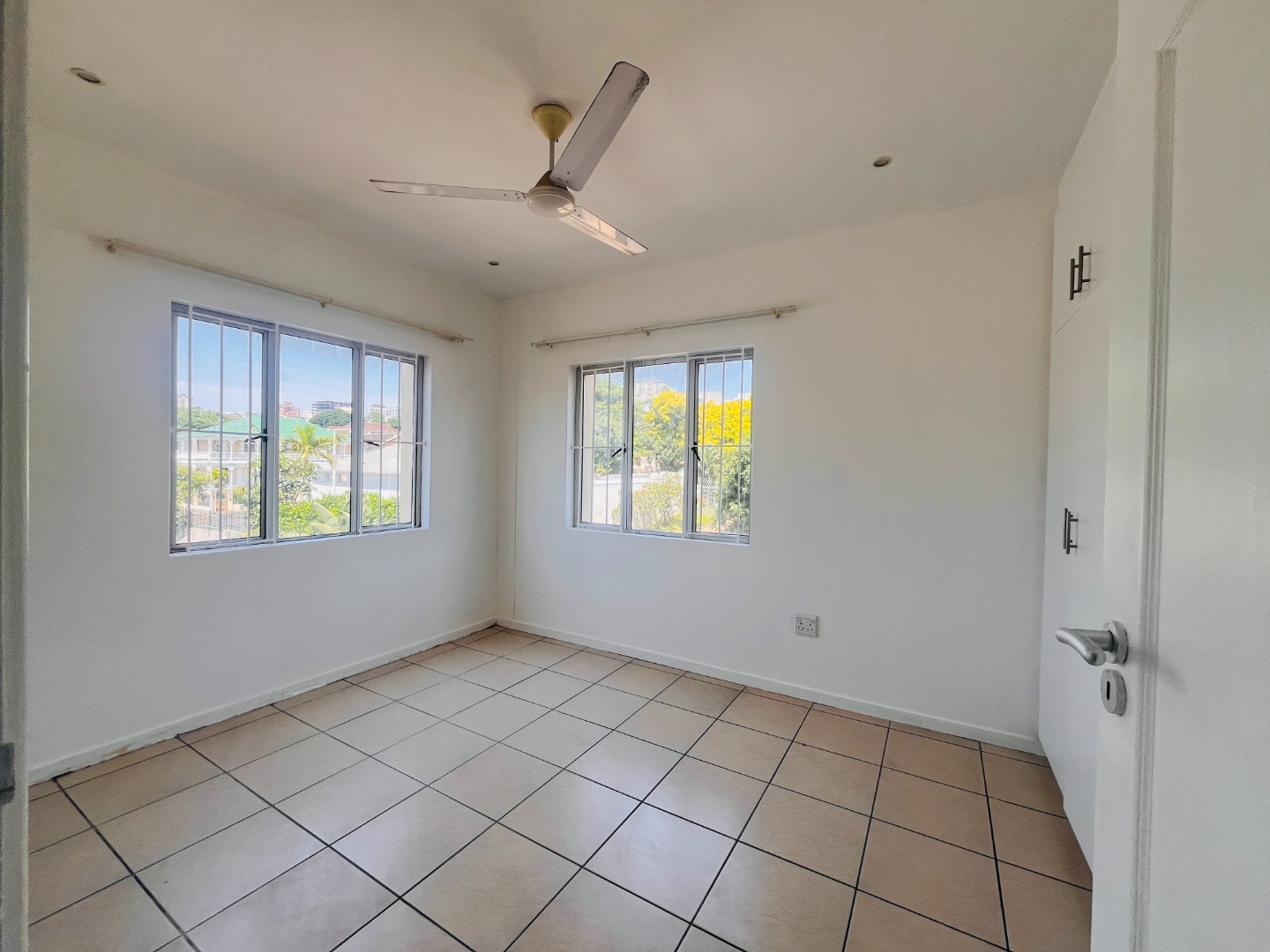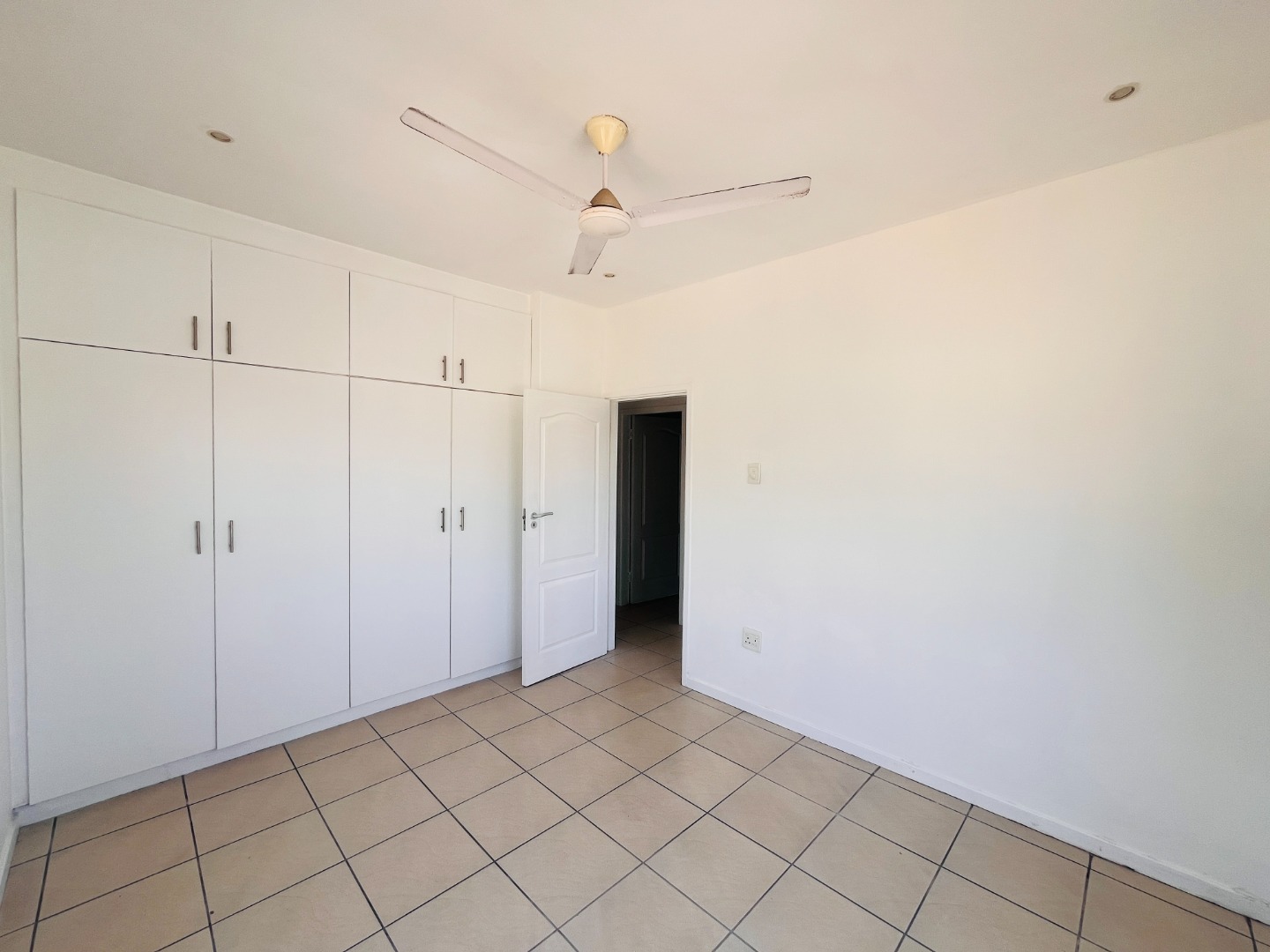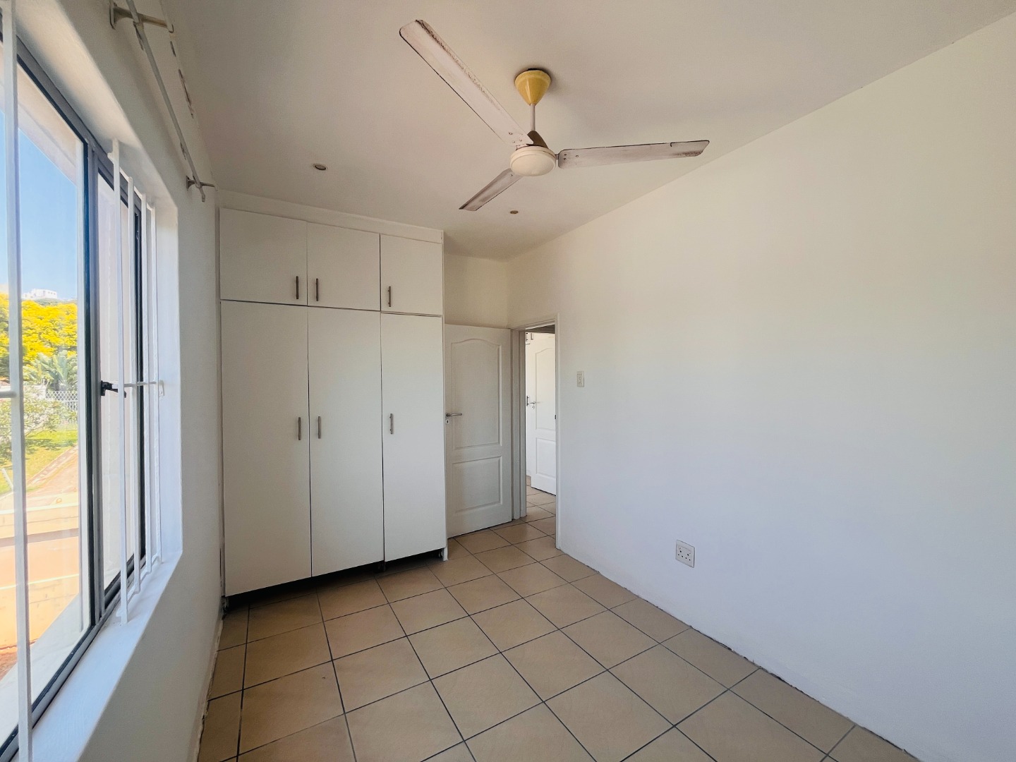 Two Tiled Bedrooms with Built-in-Cupboards and Ceiling Fans. Kitchen has ample Storage Cupboards, Granite Tops and Plumbing for a Washing Machine. Open-plan Lounge and Dining Area.