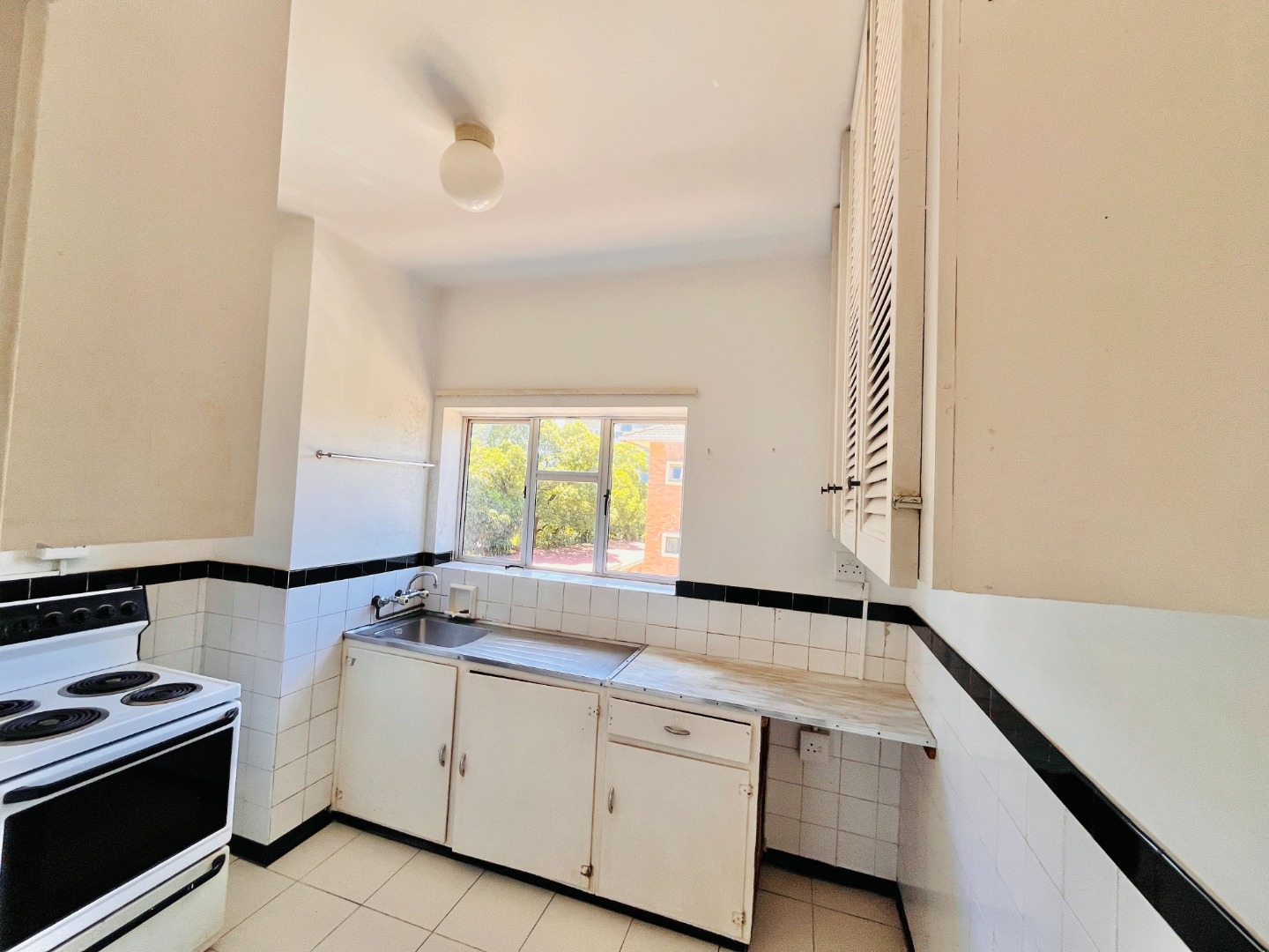 Upon entry, a generous entrance hall with elegant parquet flooring creates a welcoming first impression. This versatile area can easily function as a dedicated home office or study, adding valuable flexibility to the layout. The entrance seamlessly connects to the well-proportioned kitchen, lounge, bedroom, and bathroom. The kitchen is thoughtfully fitted with cupboards and benefits from large windows that ensure ample natural light and excellent airflow. Aluminium windows fitted throughout the apartment enhance both durability and brightness.