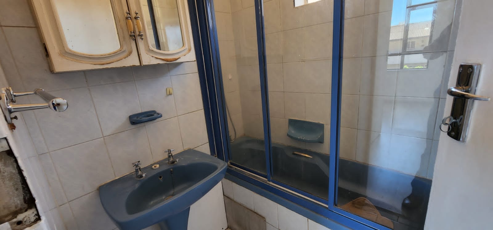 The bathroom has a bath with a shower inside , secure undercover parking.