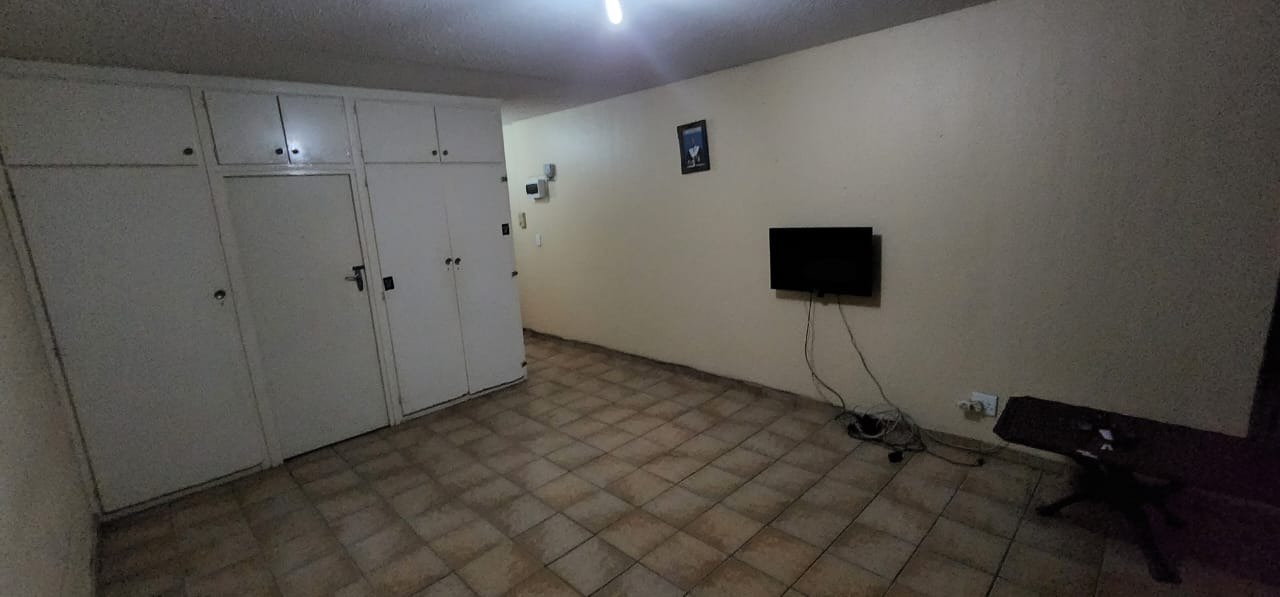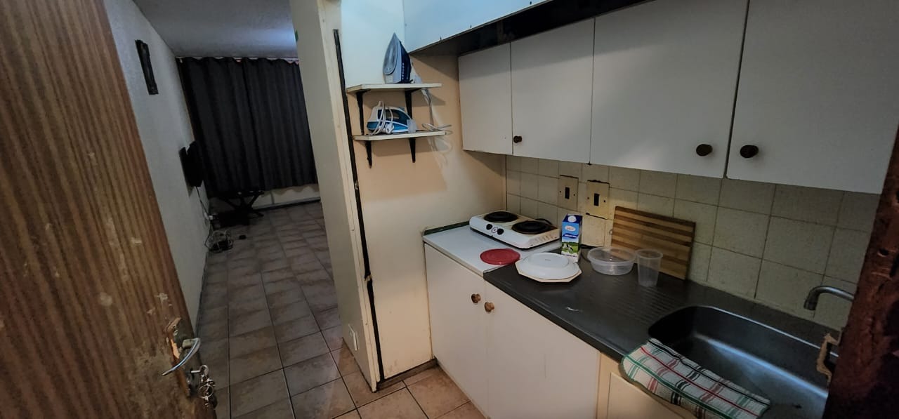 This is a compact 30m2 bachelor flat, with kitchen, bathroom and living/ sleeping area.