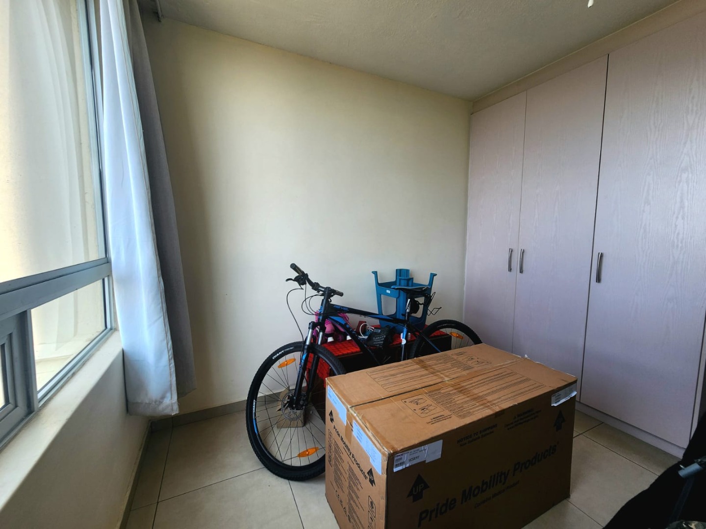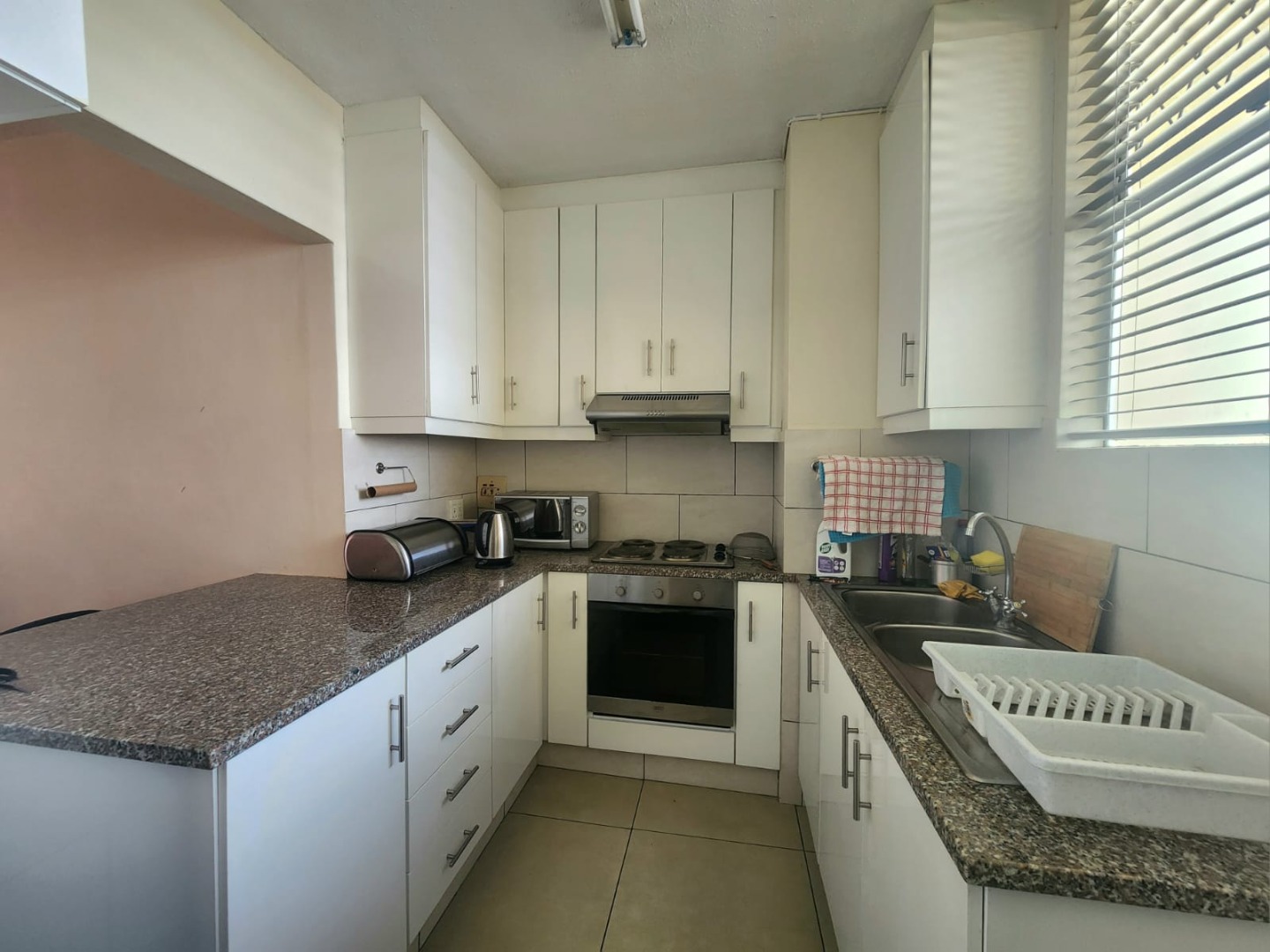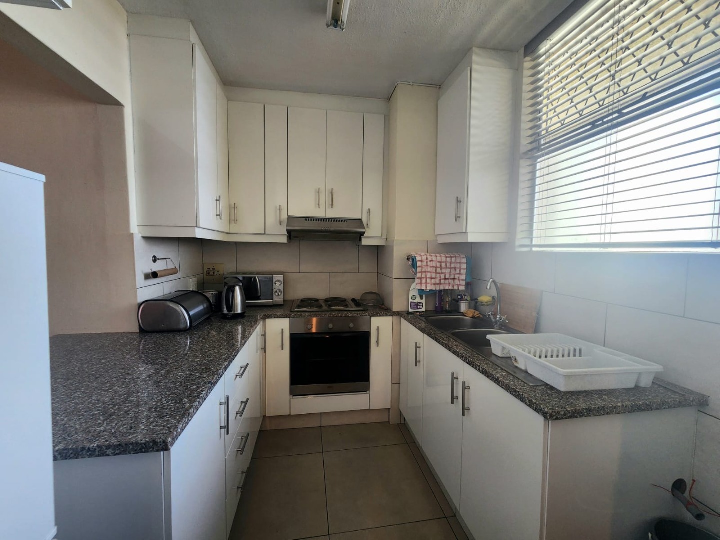 Both bedrooms come with built-in cupboards, providing ample storage space. The kitchen is well-equipped with plenty of cupboards, an under-counter oven, hob, and extractor fan. The entire apartment is tiled throughout for easy maintenance and a clean, modern feel.